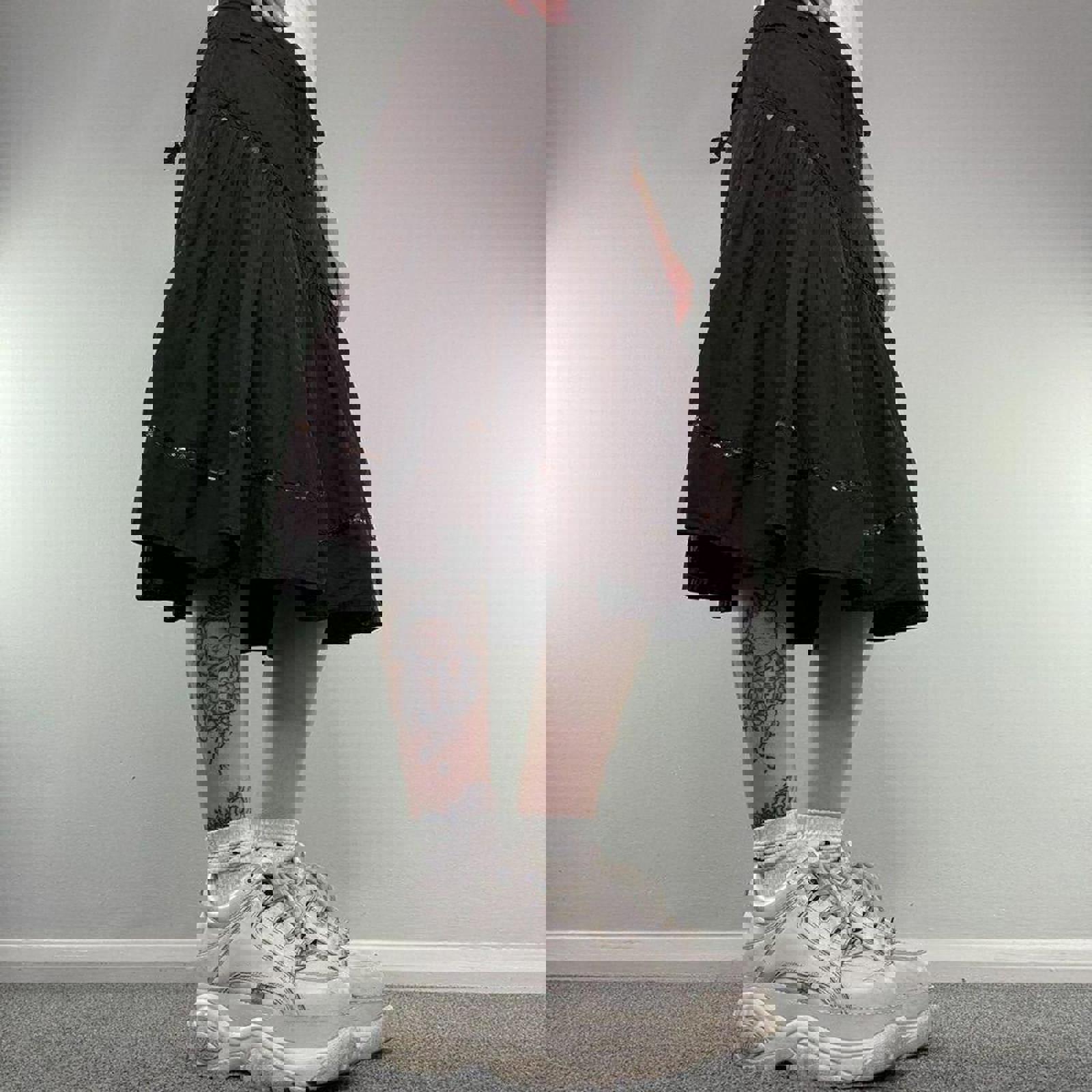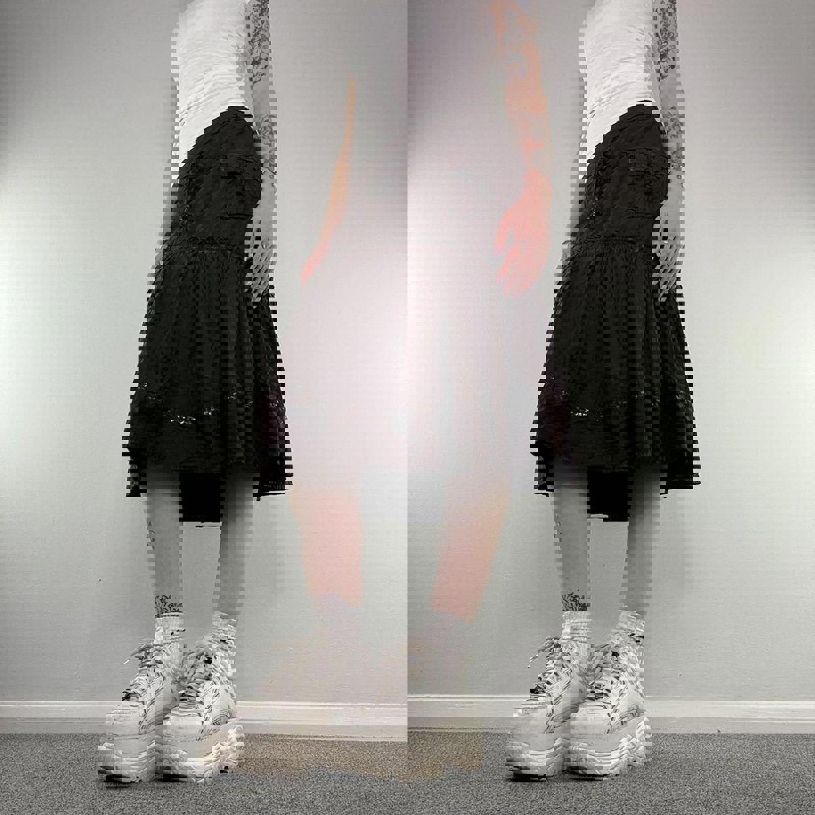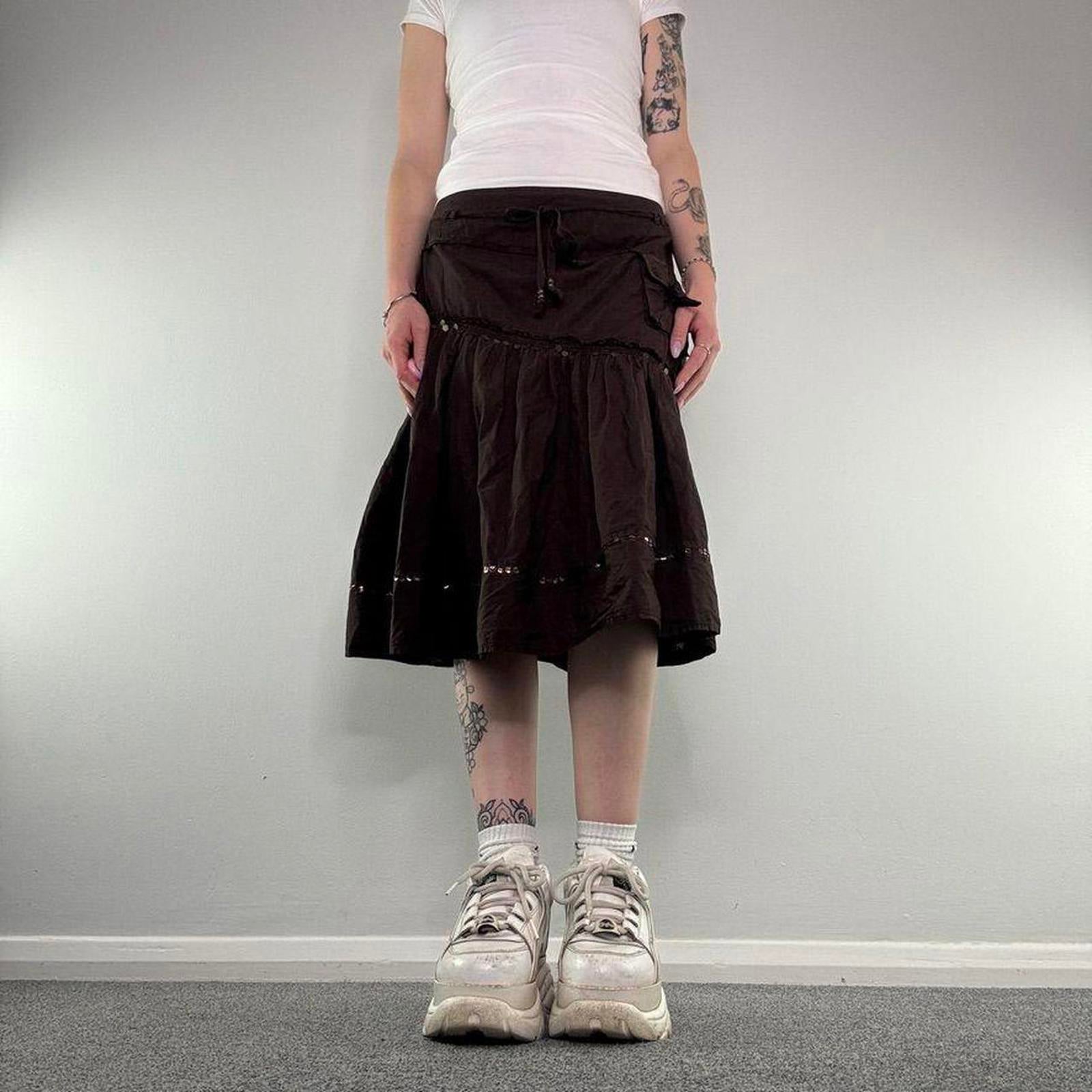 Y2K vintage asymmetrical cargo sequin midi skirt a line floaty embellished bow