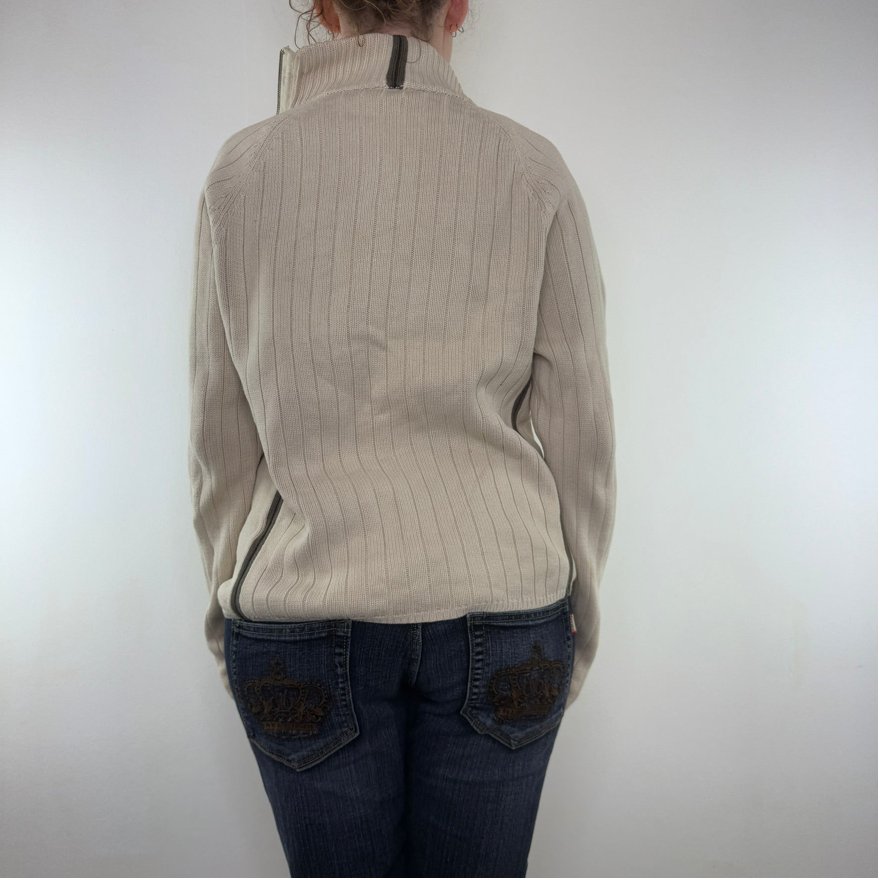 Cream chunky knit with khaki side stripe, high neck, stripe, archive utility style, pull over