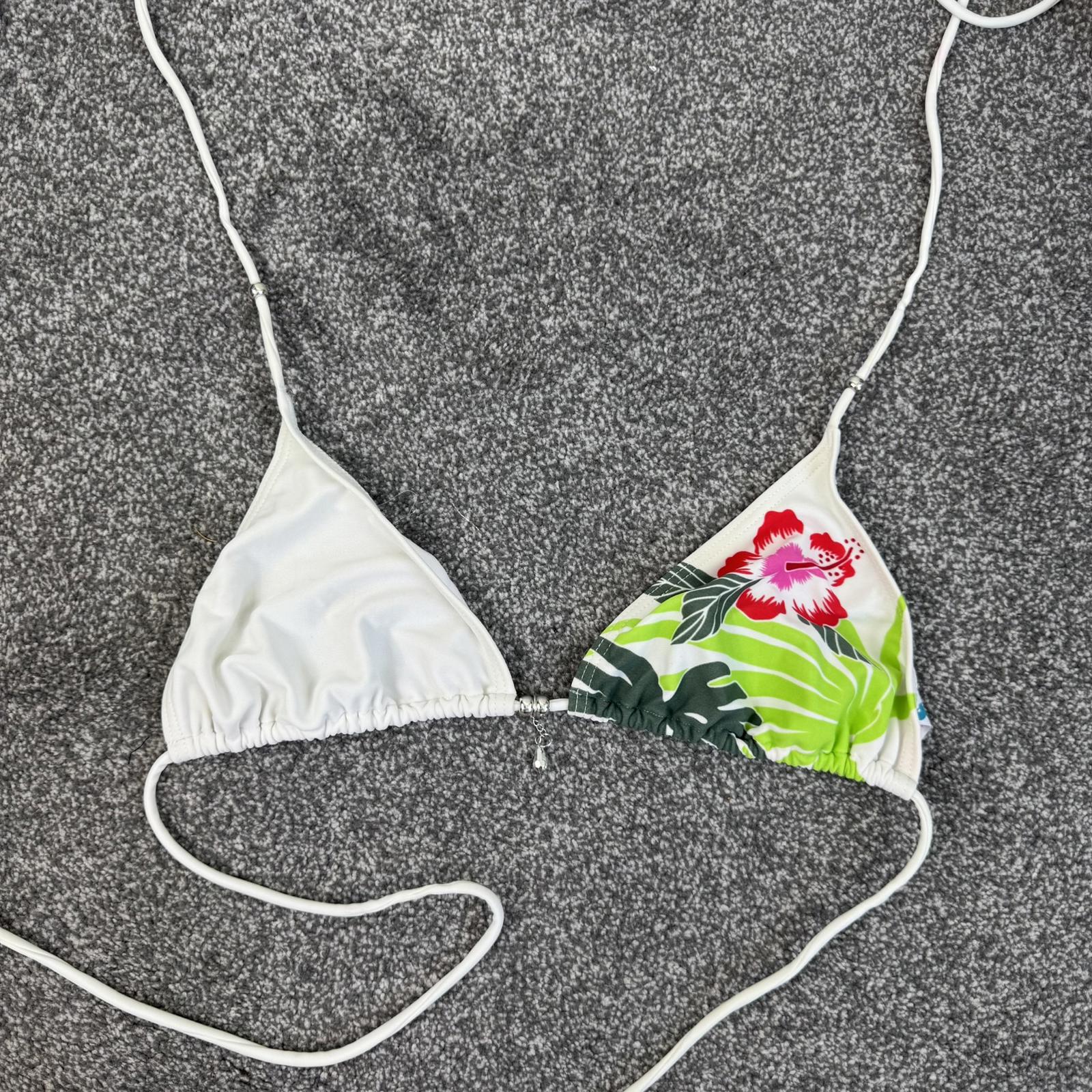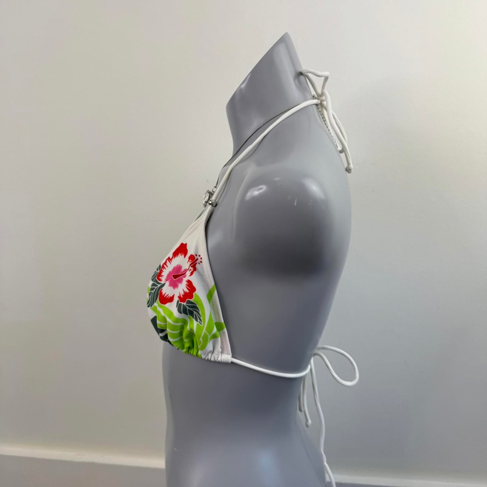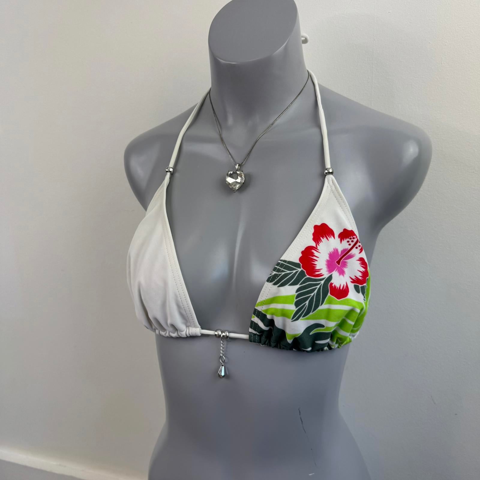 Y2K vintage Bay halter neck floral hibiscus bikini top beaded charm no padding