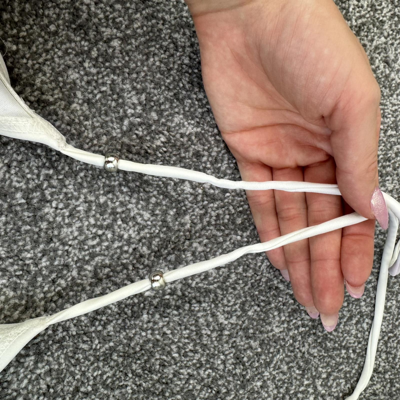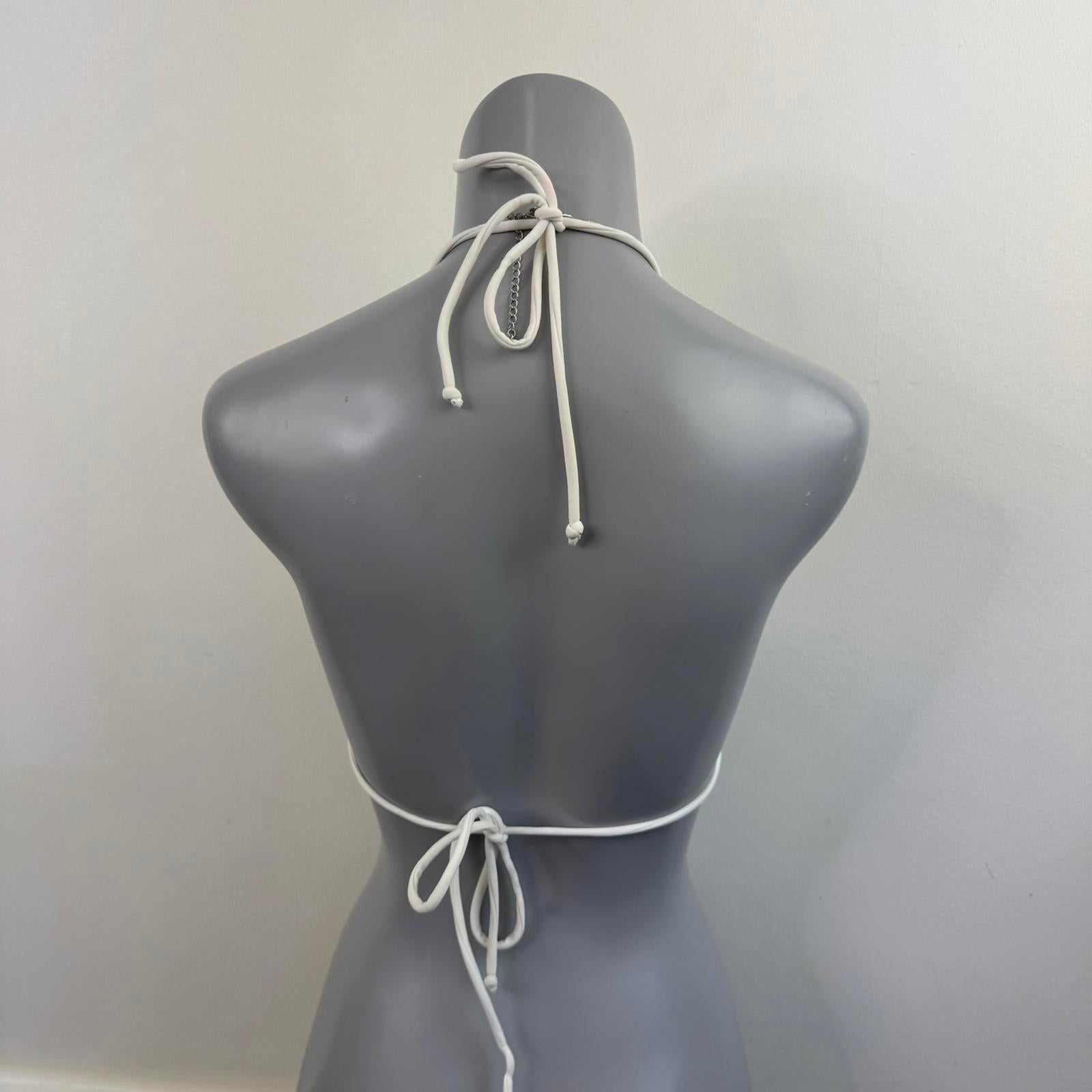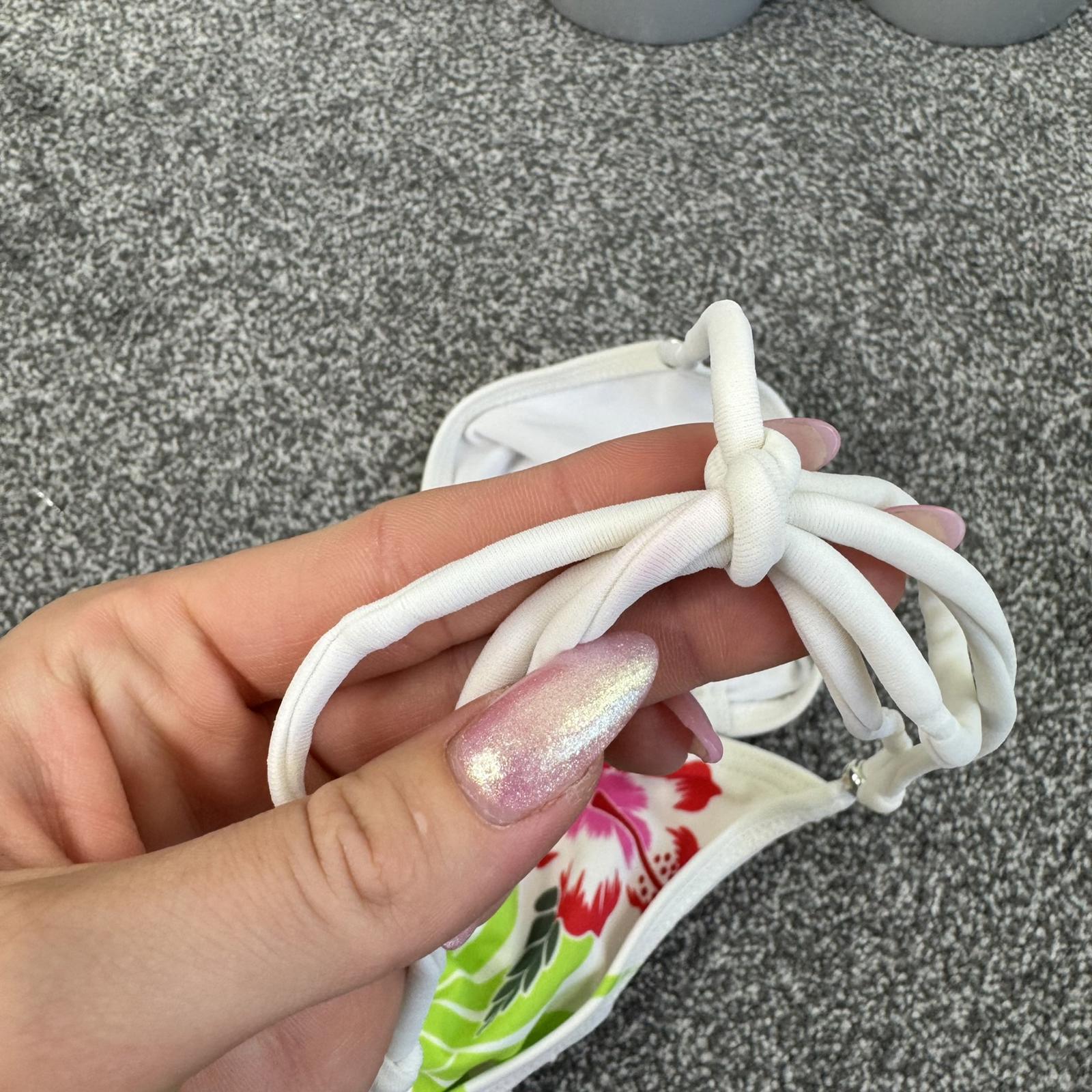 Y2K vintage Bay halter neck floral hibiscus bikini top beaded charm no padding