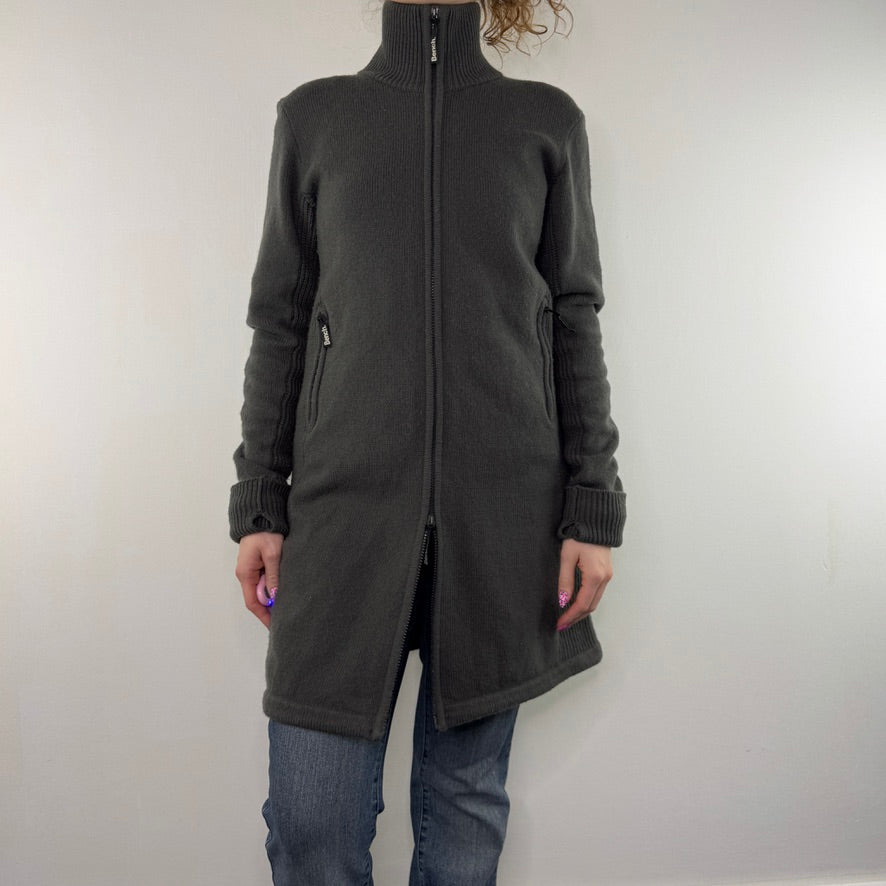 Y2K vintage Bench knit long length zip up fitted cardigan
