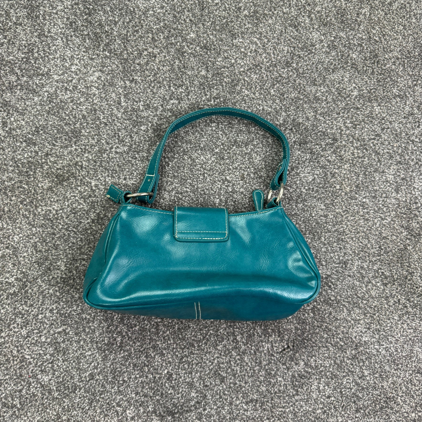 Y2K vintage blue faux leather buckle o ring mini shoulder bag