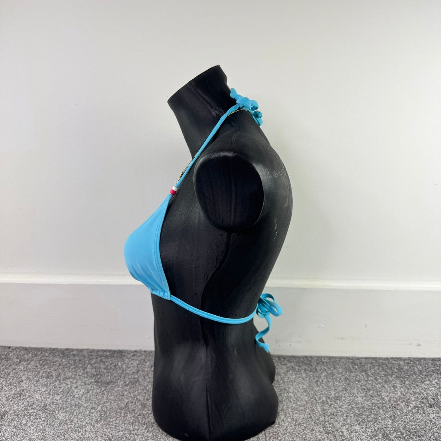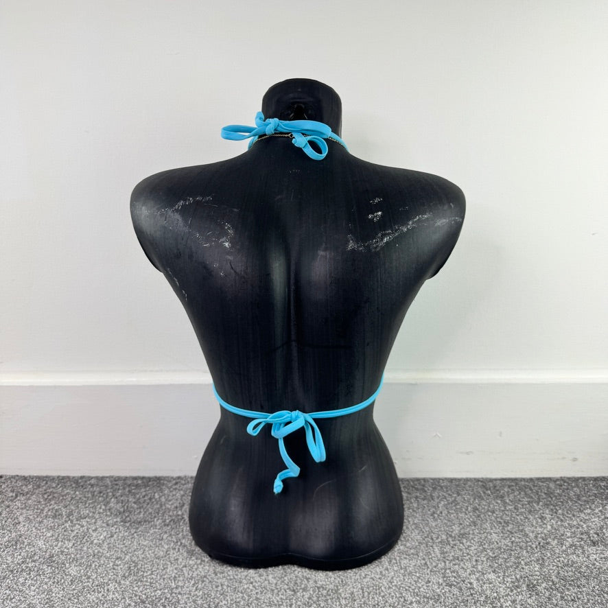 Pink and white beads, tie bow halter neck, light blue, non padded
