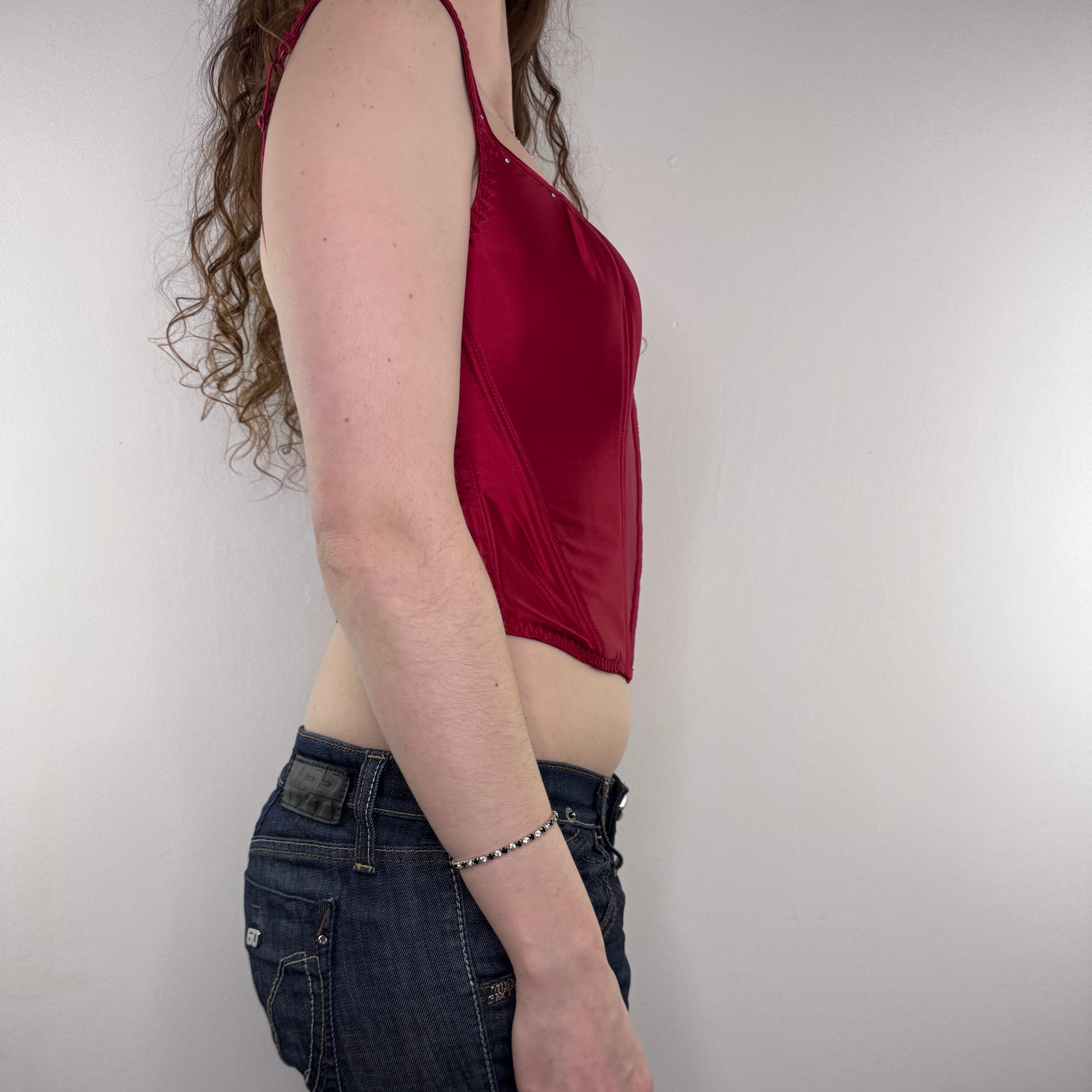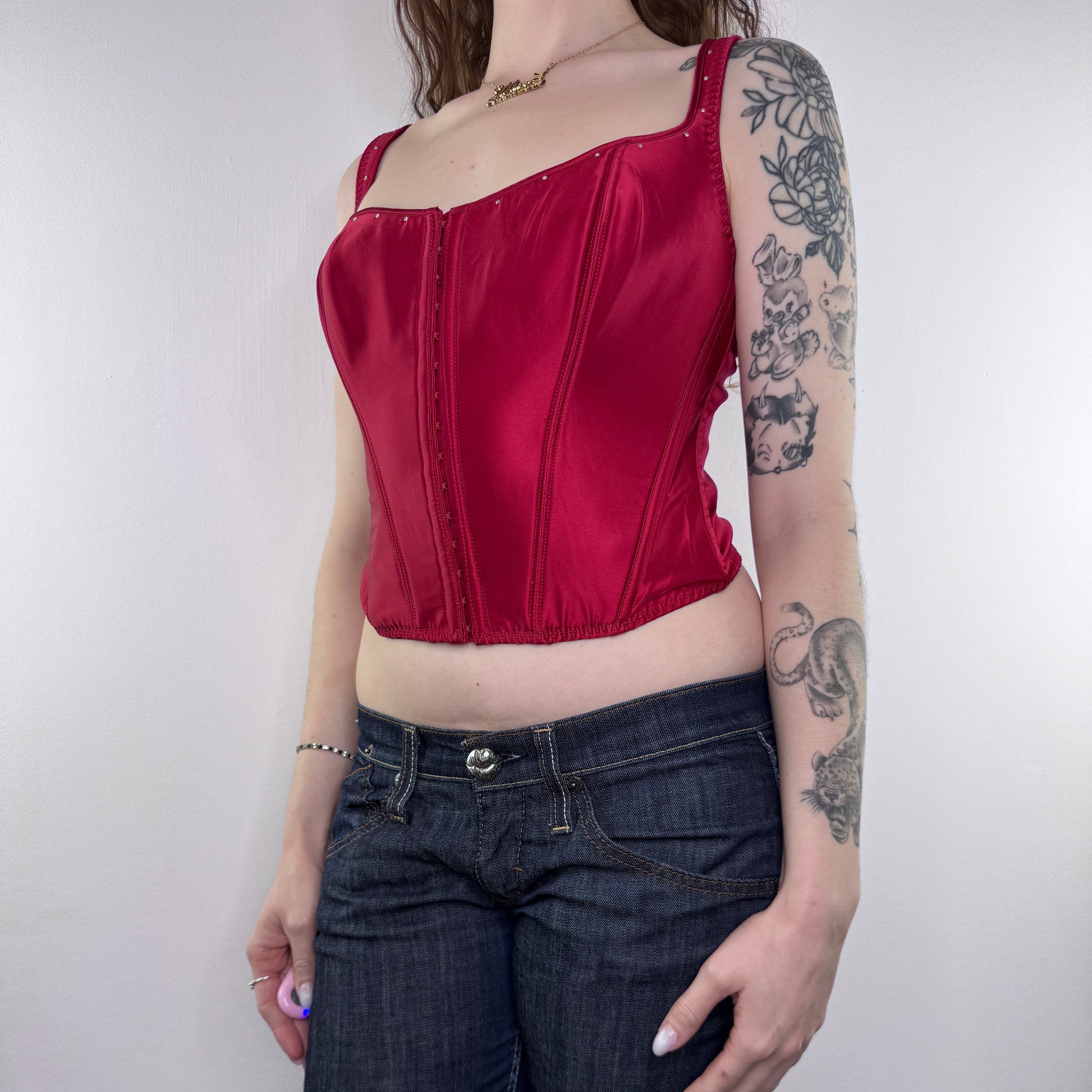 Y2K vintage boned rhinestone satin bustier top