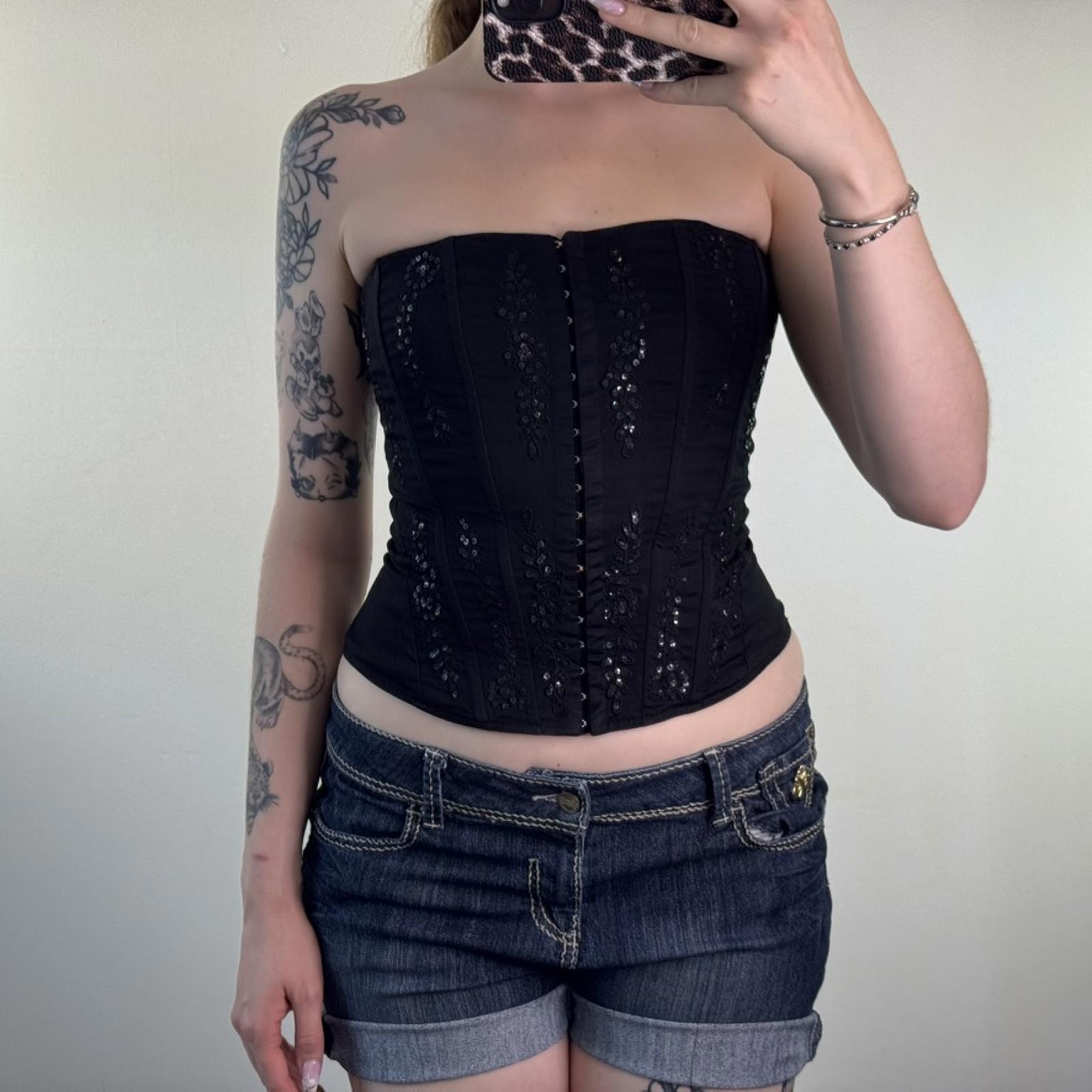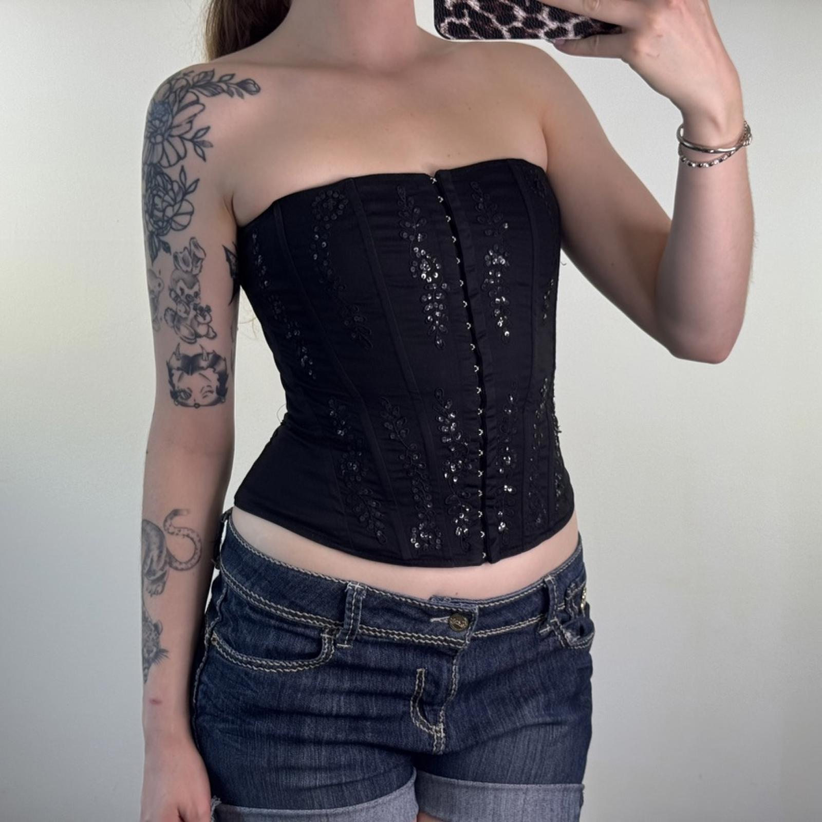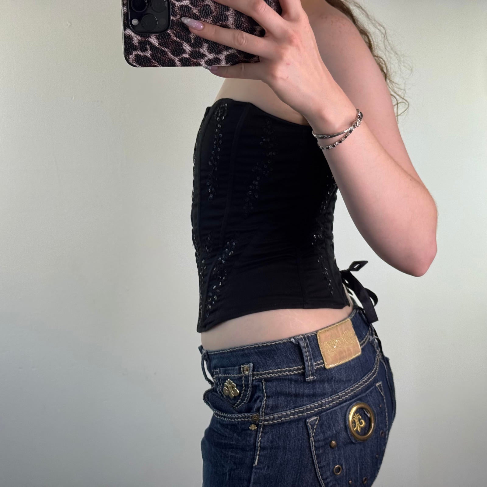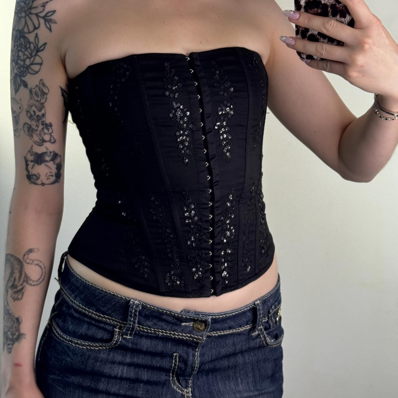 Y2K vintage boned strapless sequin top embellished hook and eye structured