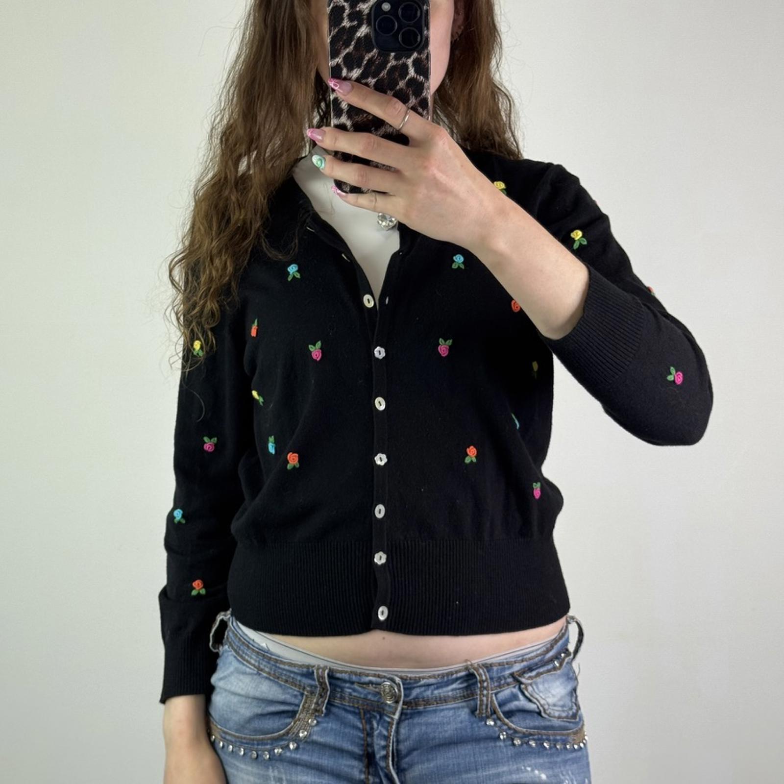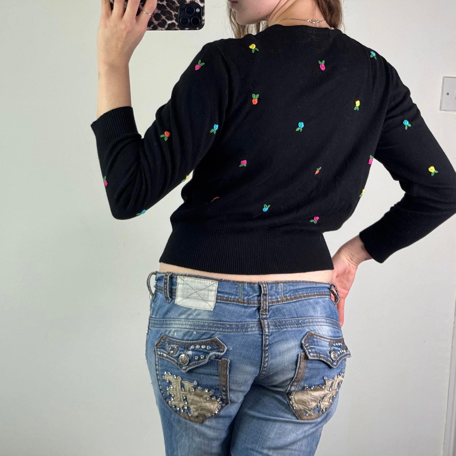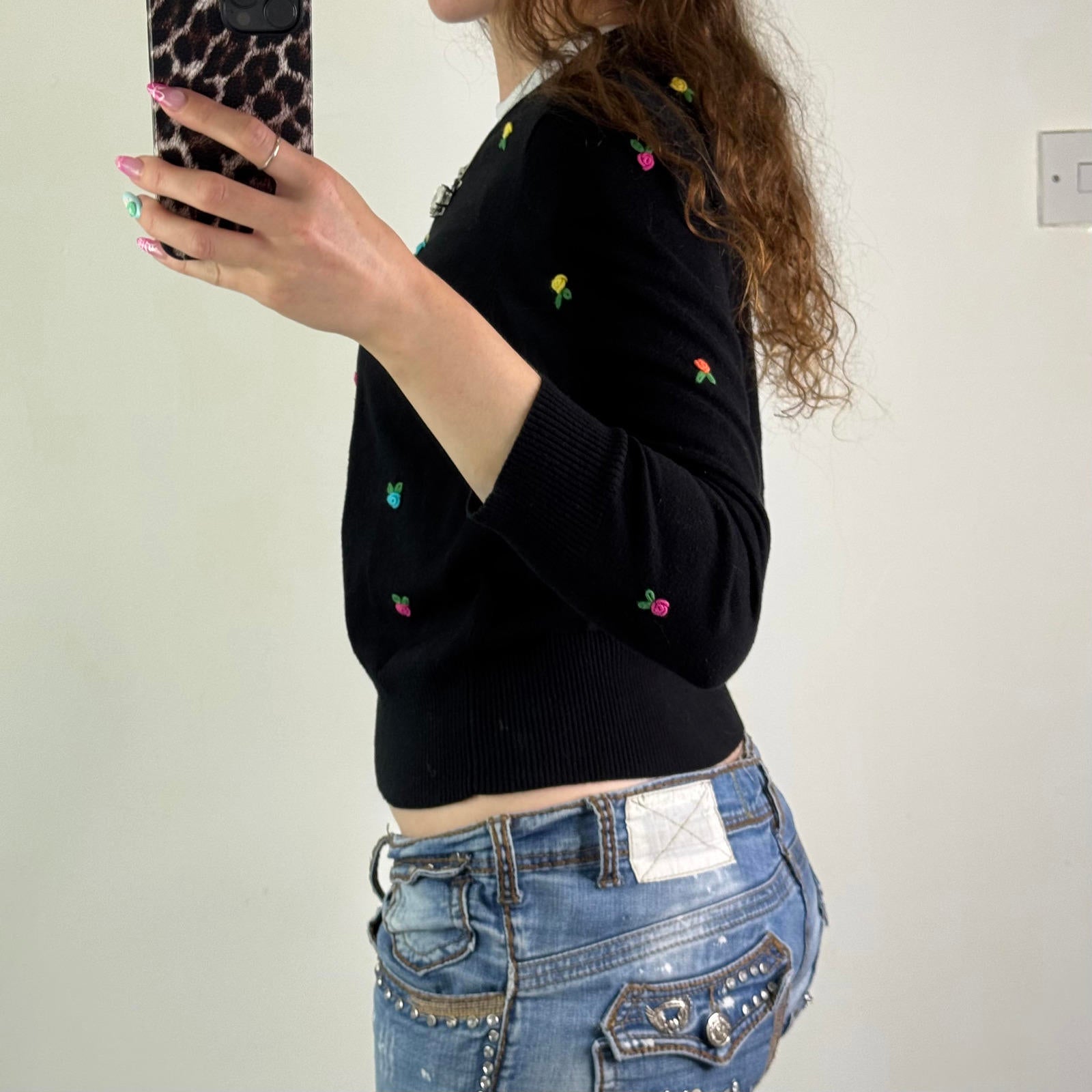 Y2K vintage button up knit floral rose 3D embroidered long sleeve cardigan