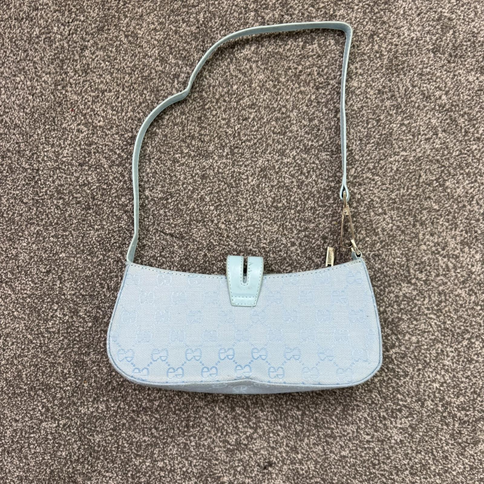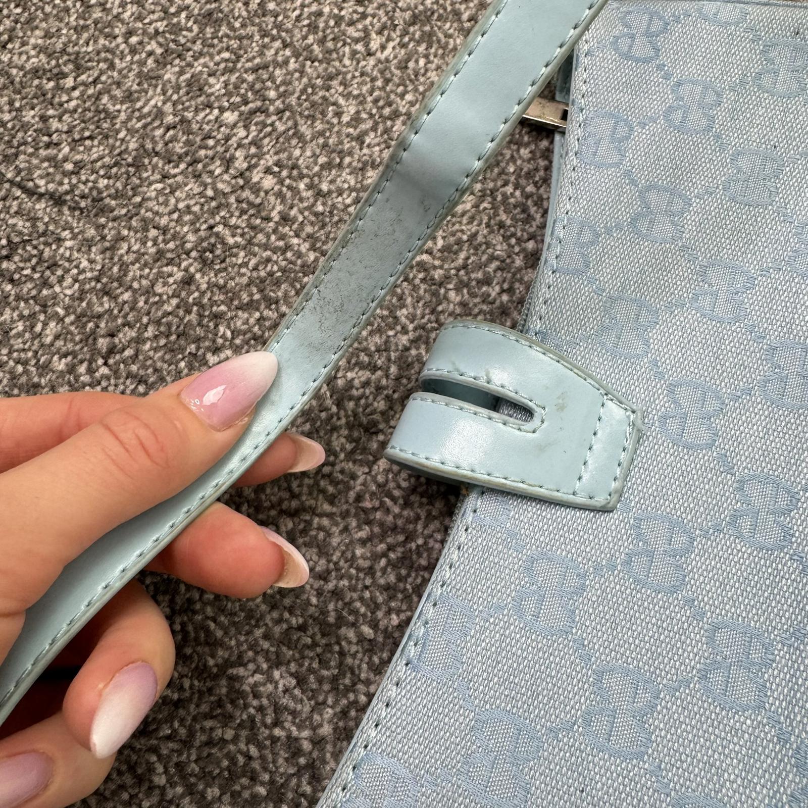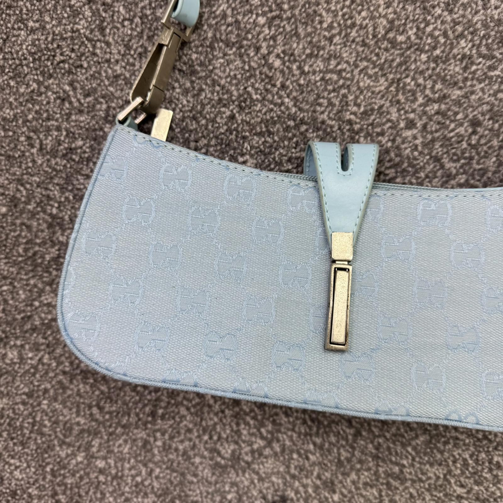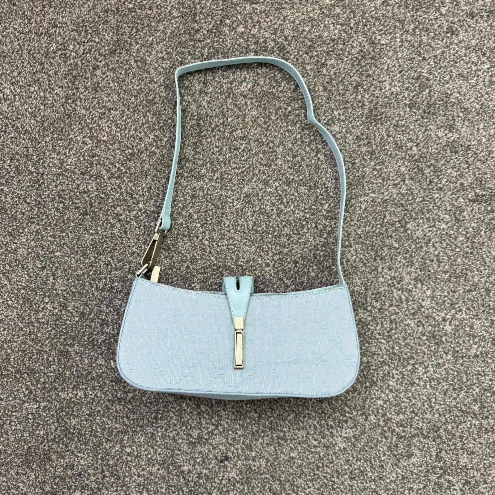 Y2K vintage canvas mini shoulder bag baby blue baguette silver