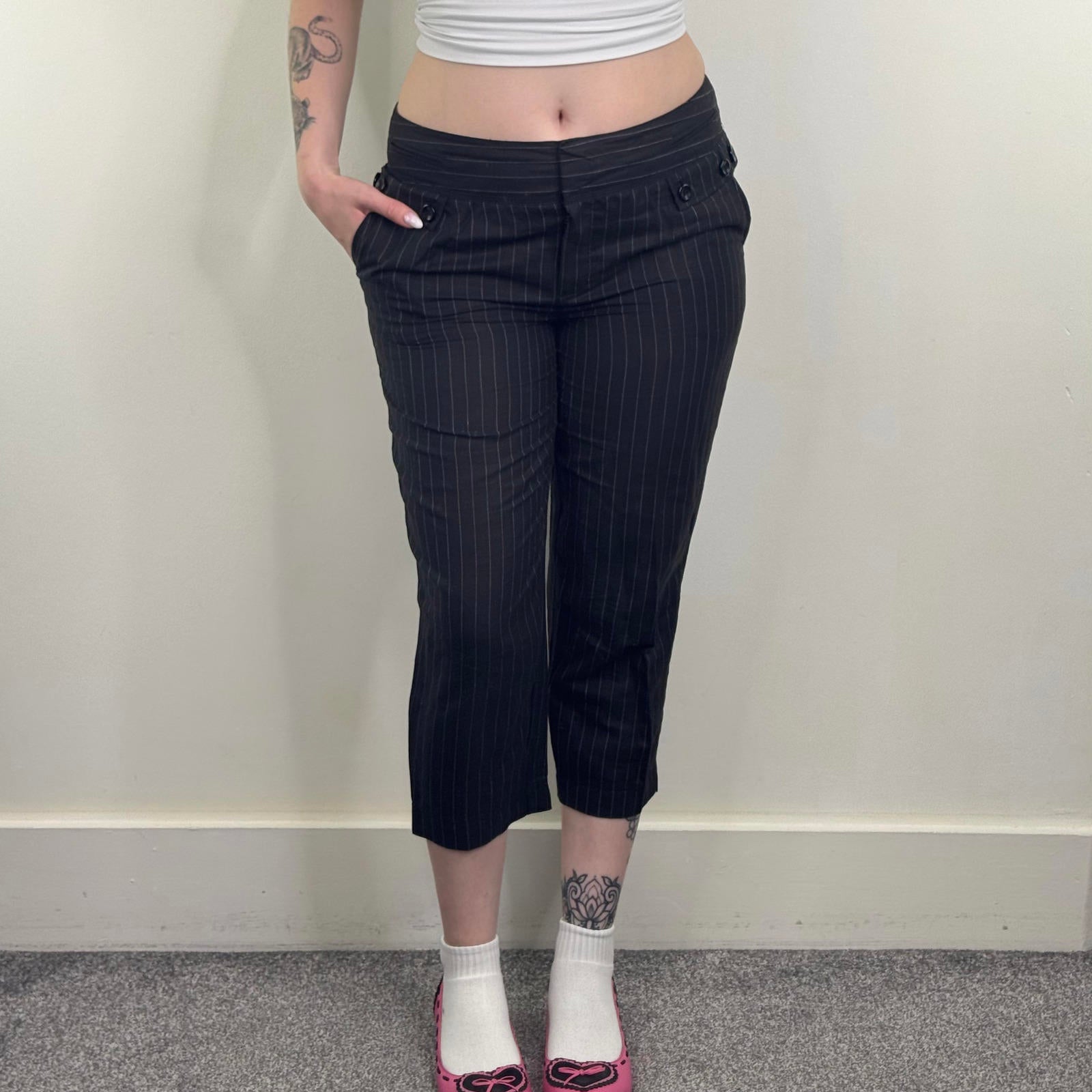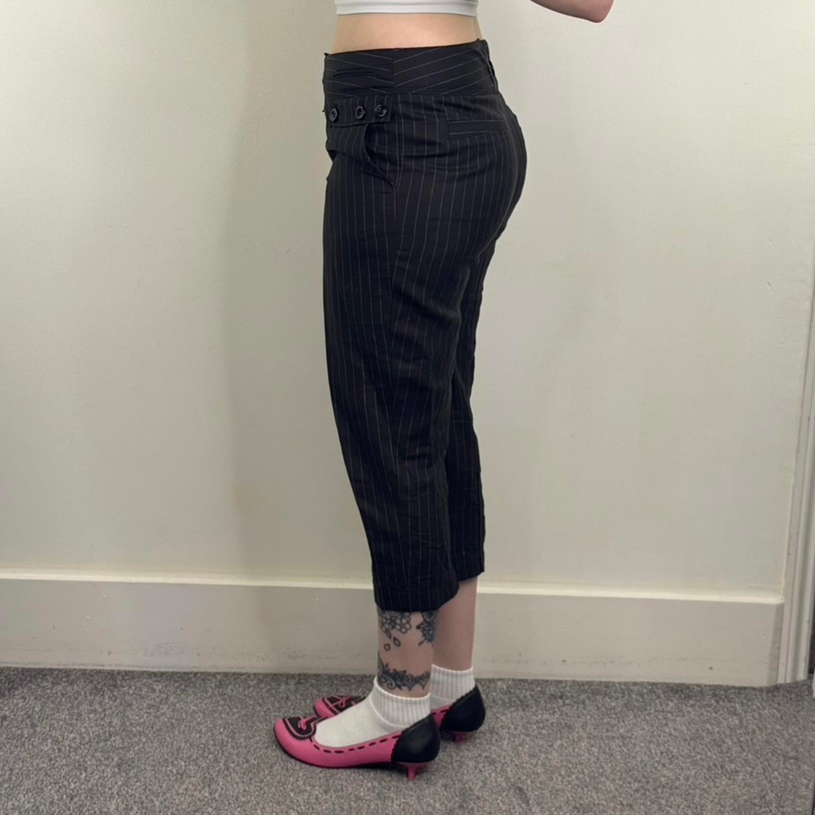 Y2K vintage capri pinstripe trousers linen blend mid rise cropped buttons office