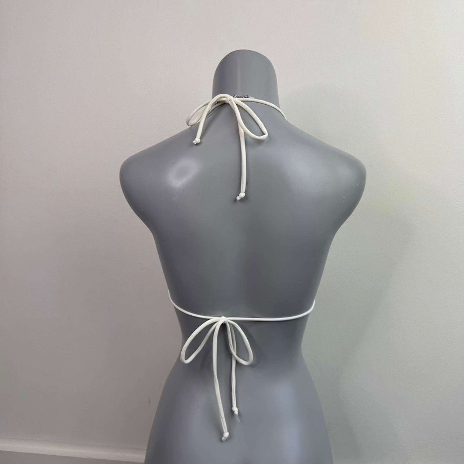 Y2K vintage coquette halter neck frill bow bikini top floral embroidery