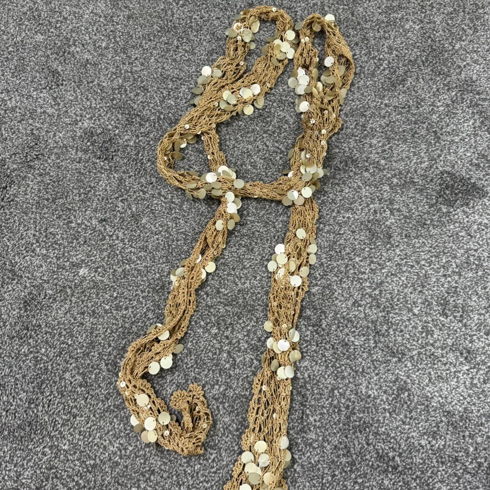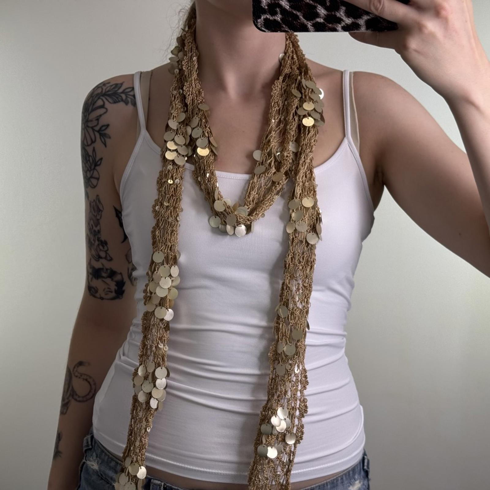 Y2K vintage crochet skinny scarf sequin gold knit thin