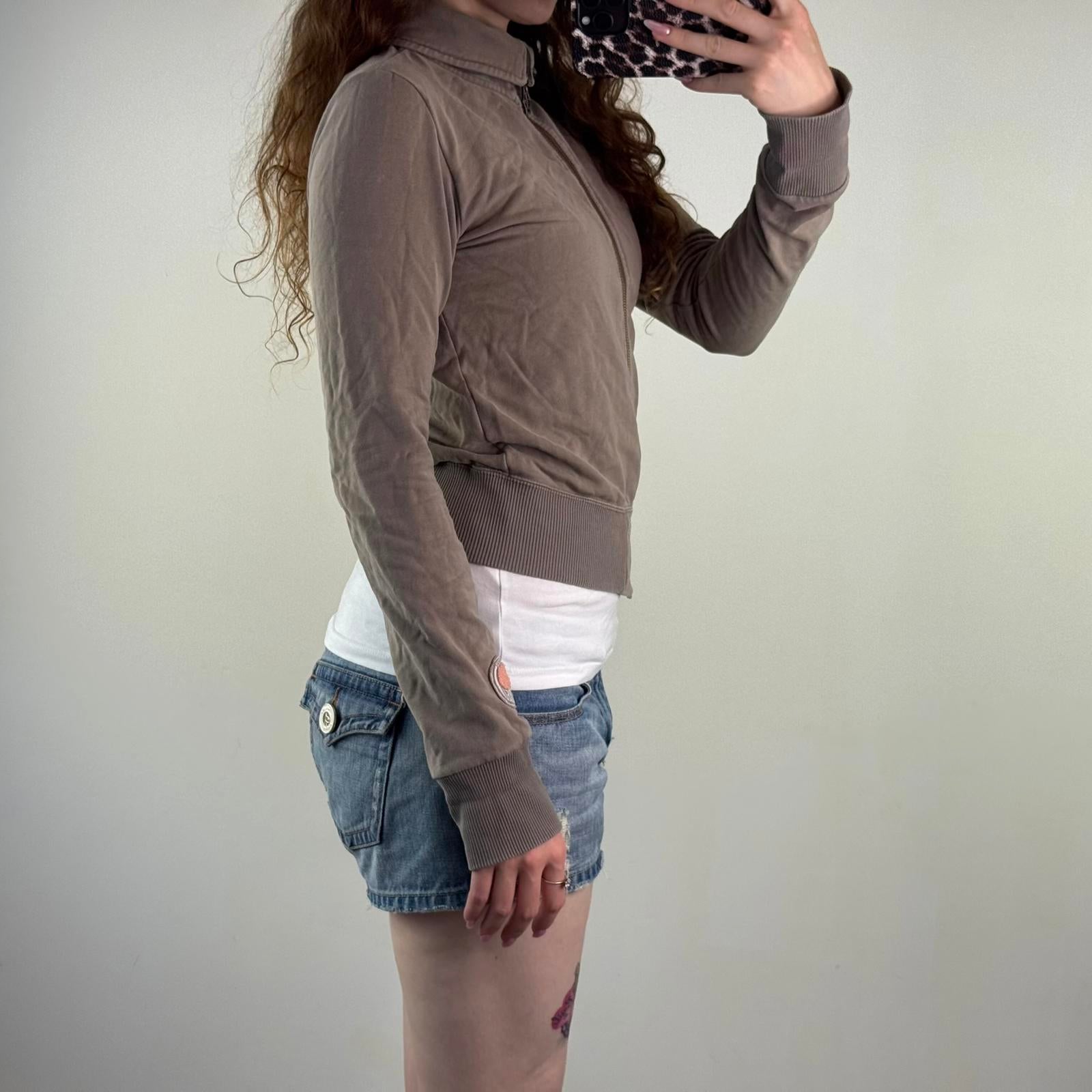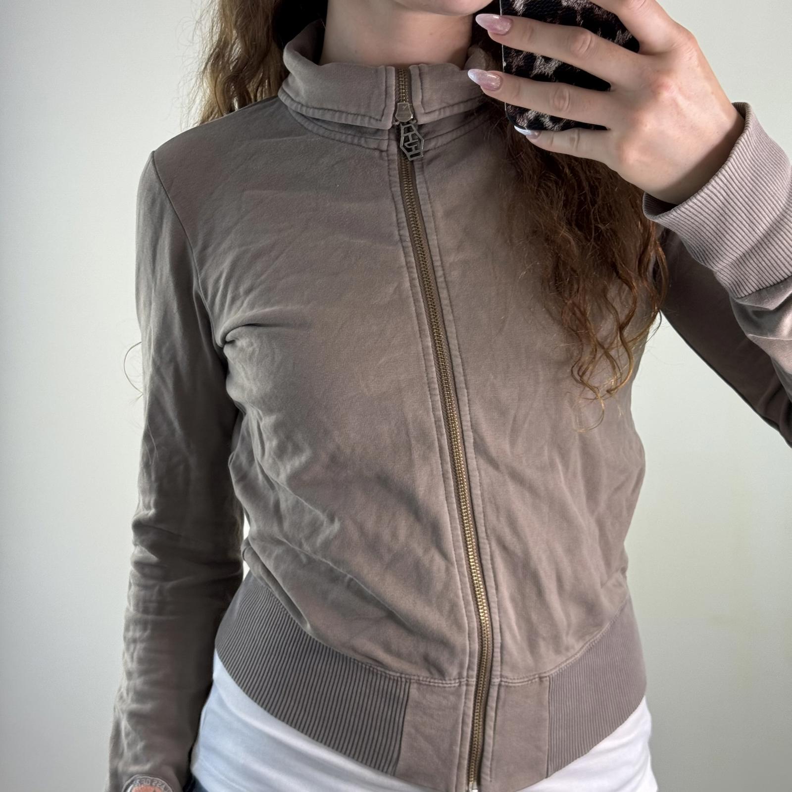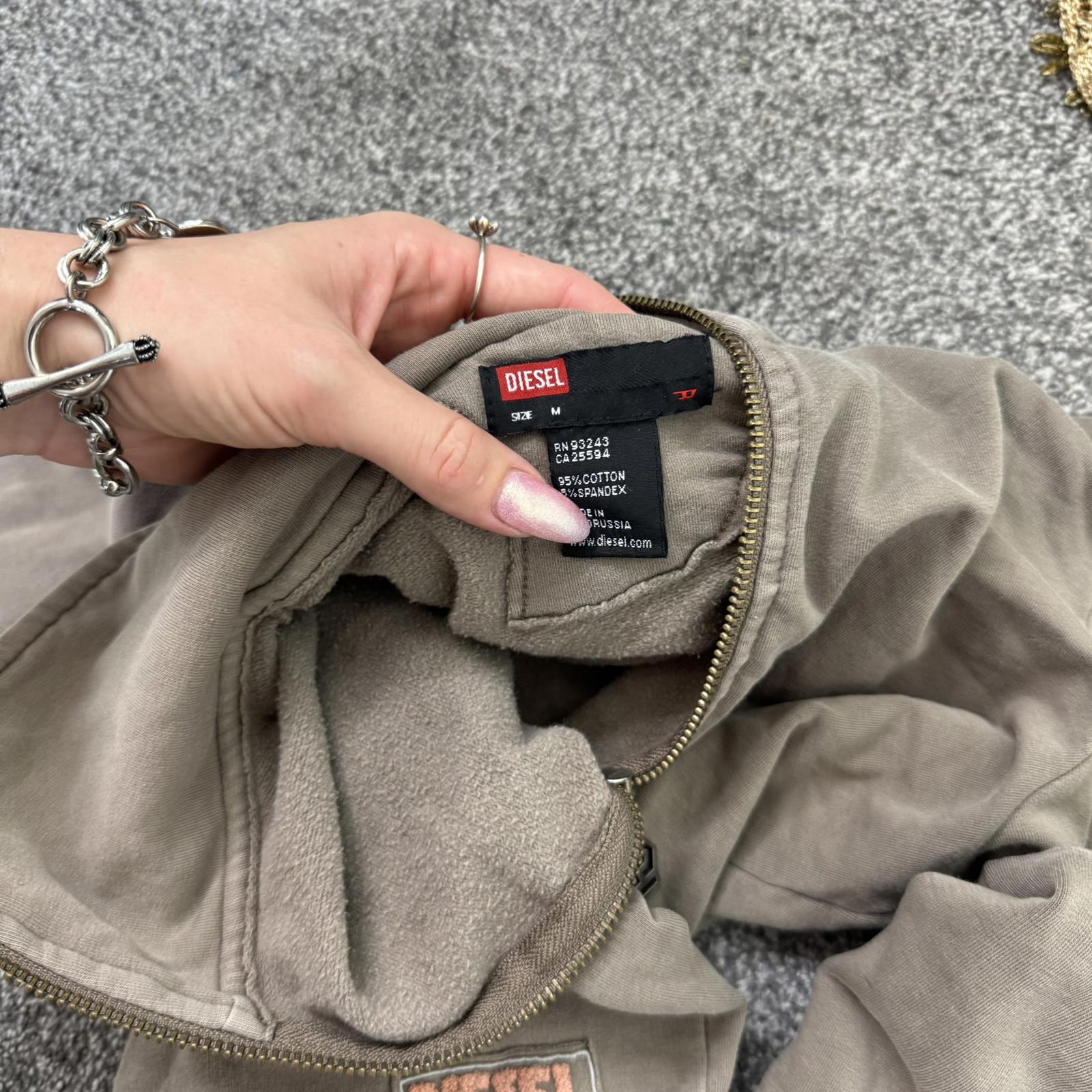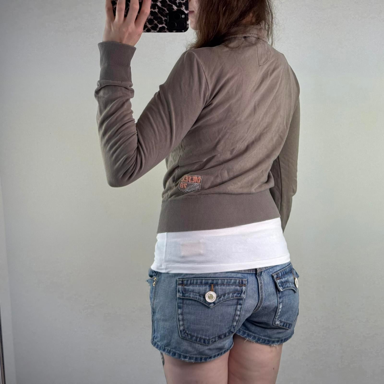 Y2K vintage Diesel zip up jumper light brown cropped elastic waistband cuffs