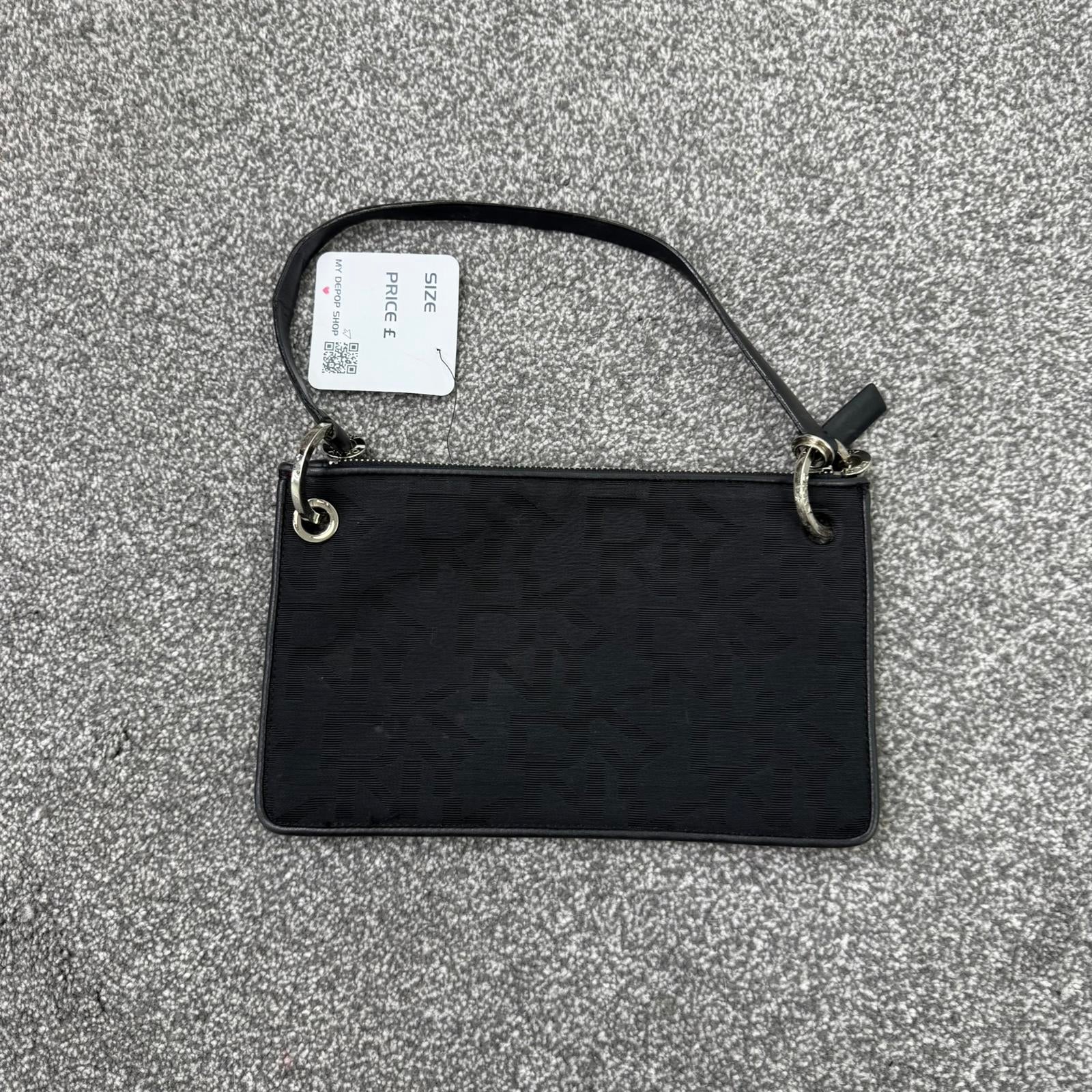 Y2K vintage DKNY mini small canvas shoulder bag black silver zipper closure
