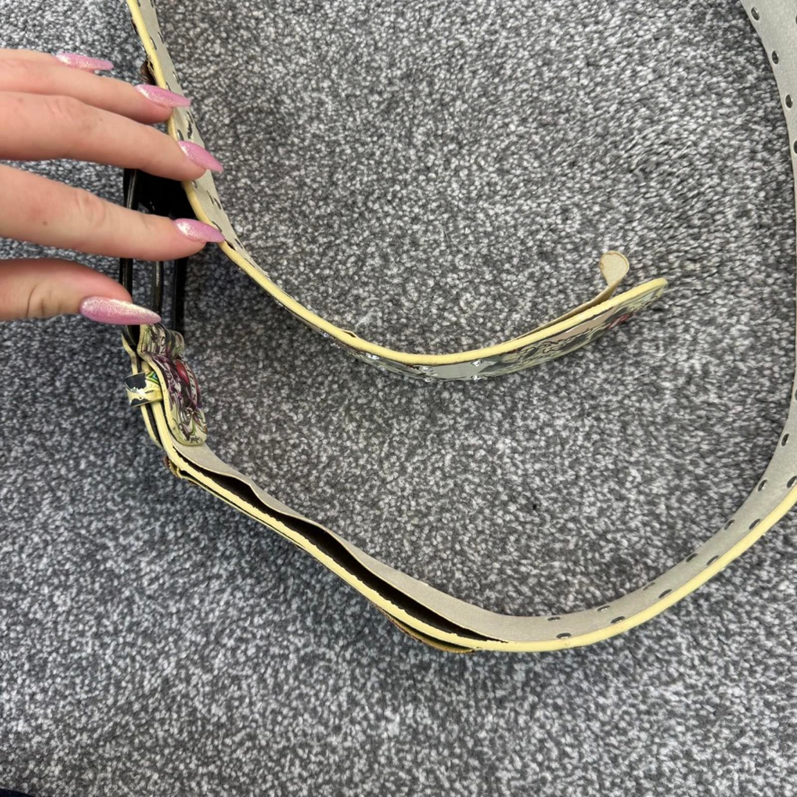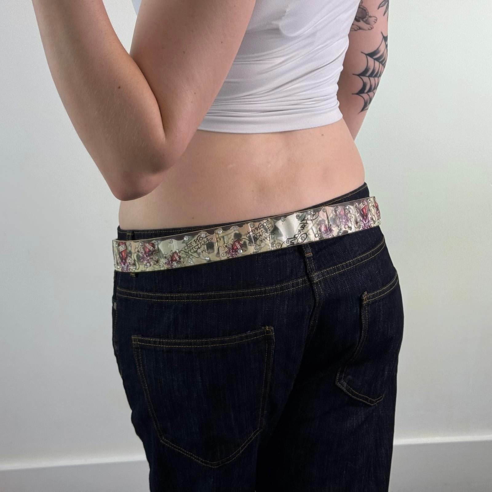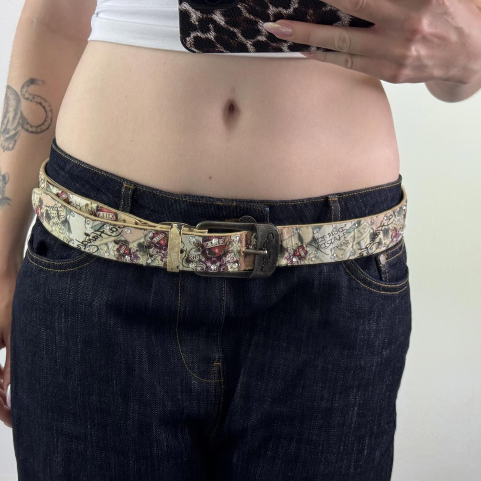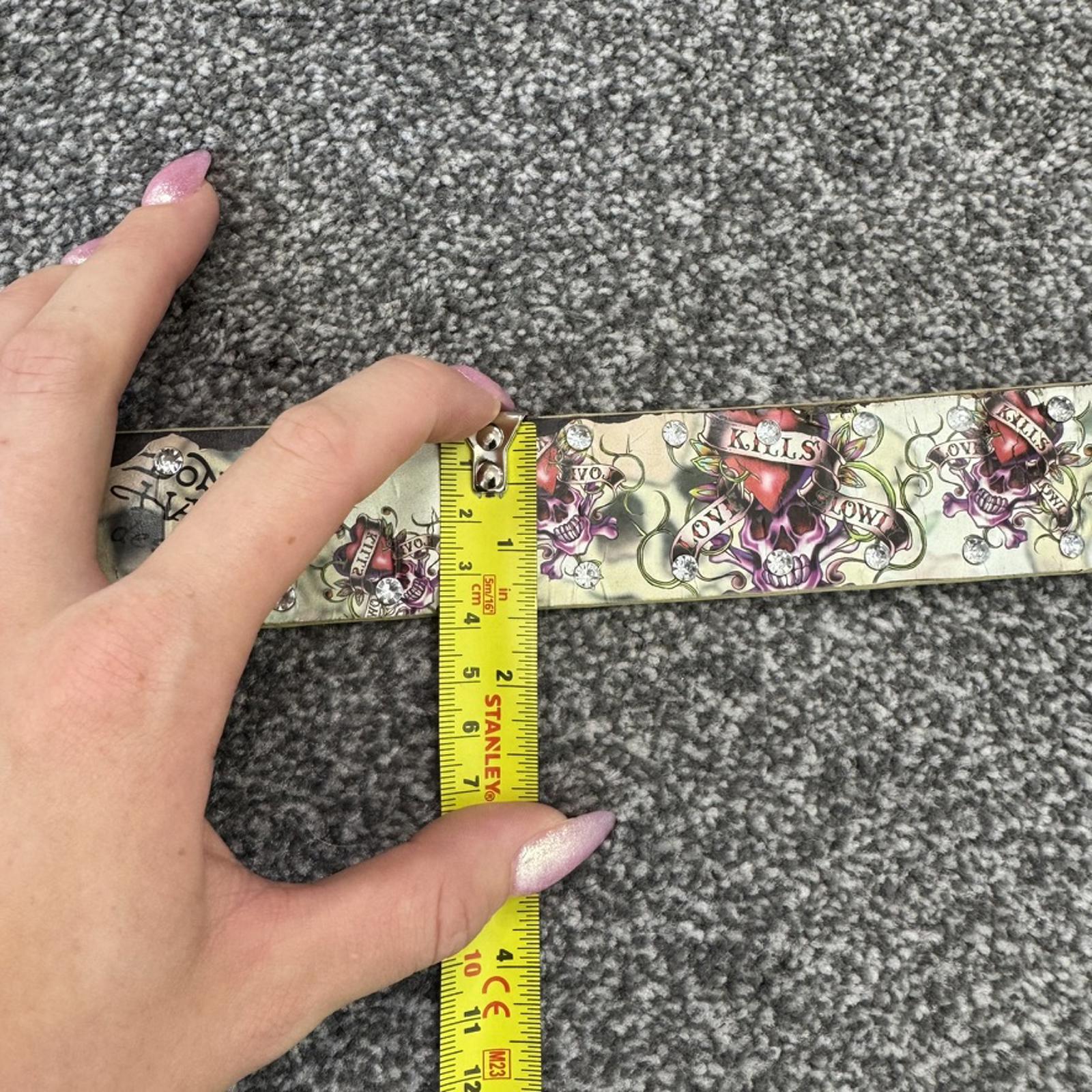 Y2K vintage Ed Hardy faux leather rhinestone belt silver buckle skull heart