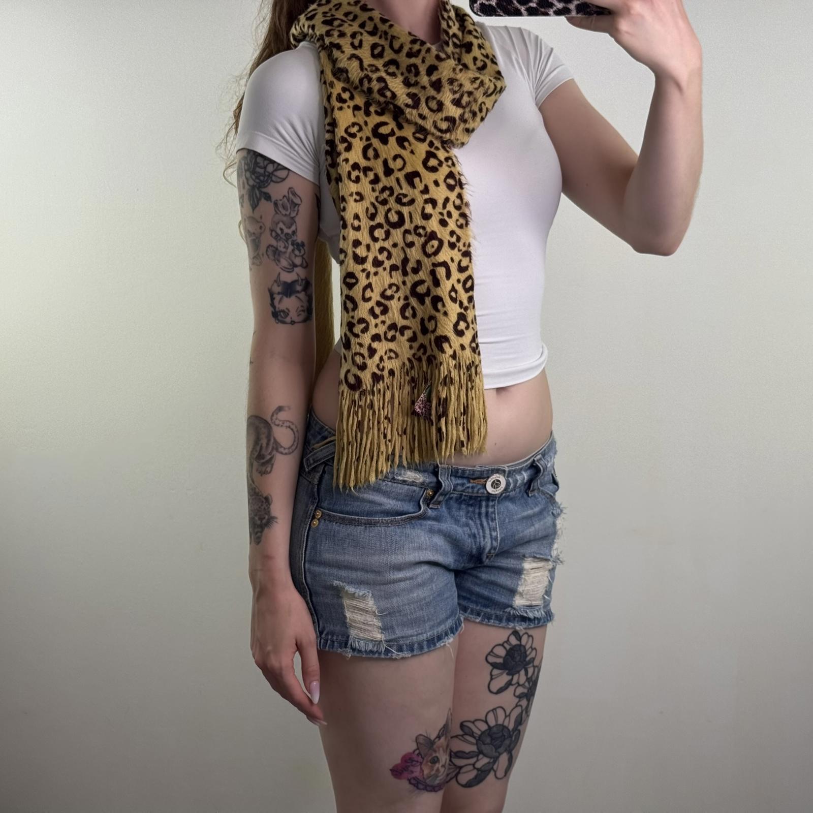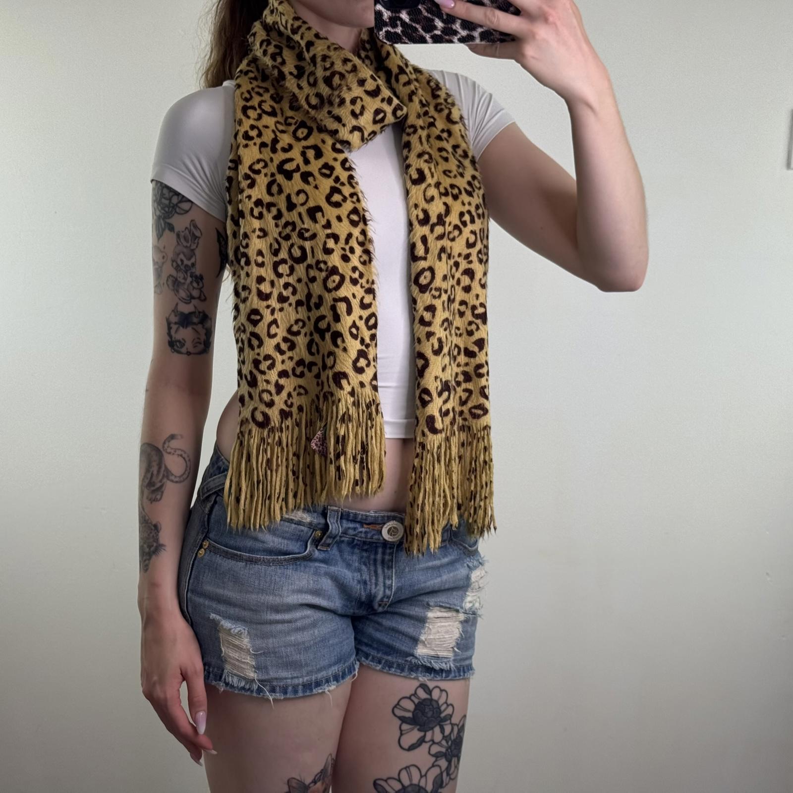 Y2K vintage Evie leopard print fluffy scarf beige brown pattern