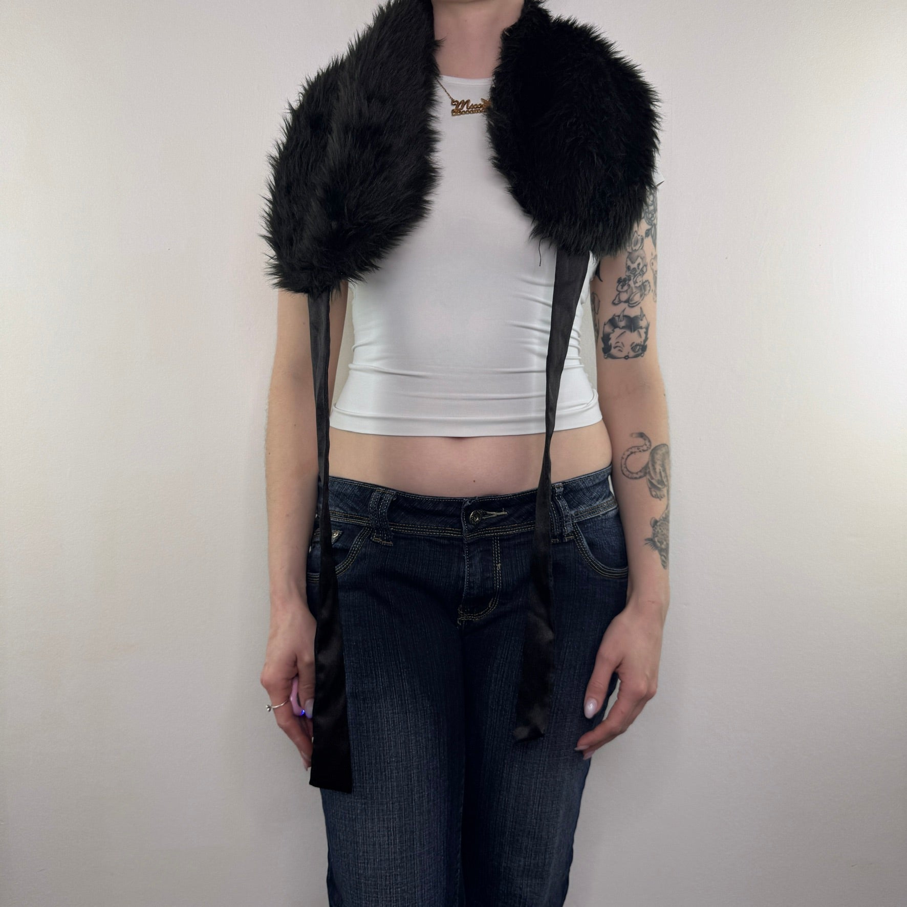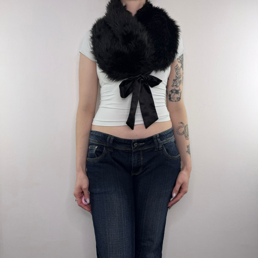 Y2K vintage faux fur shawl cape