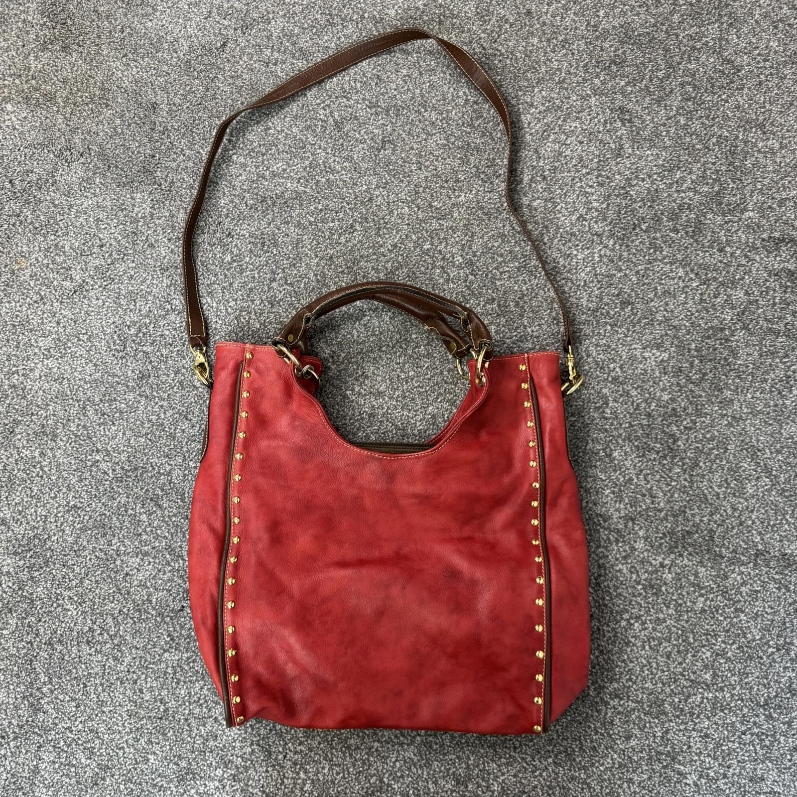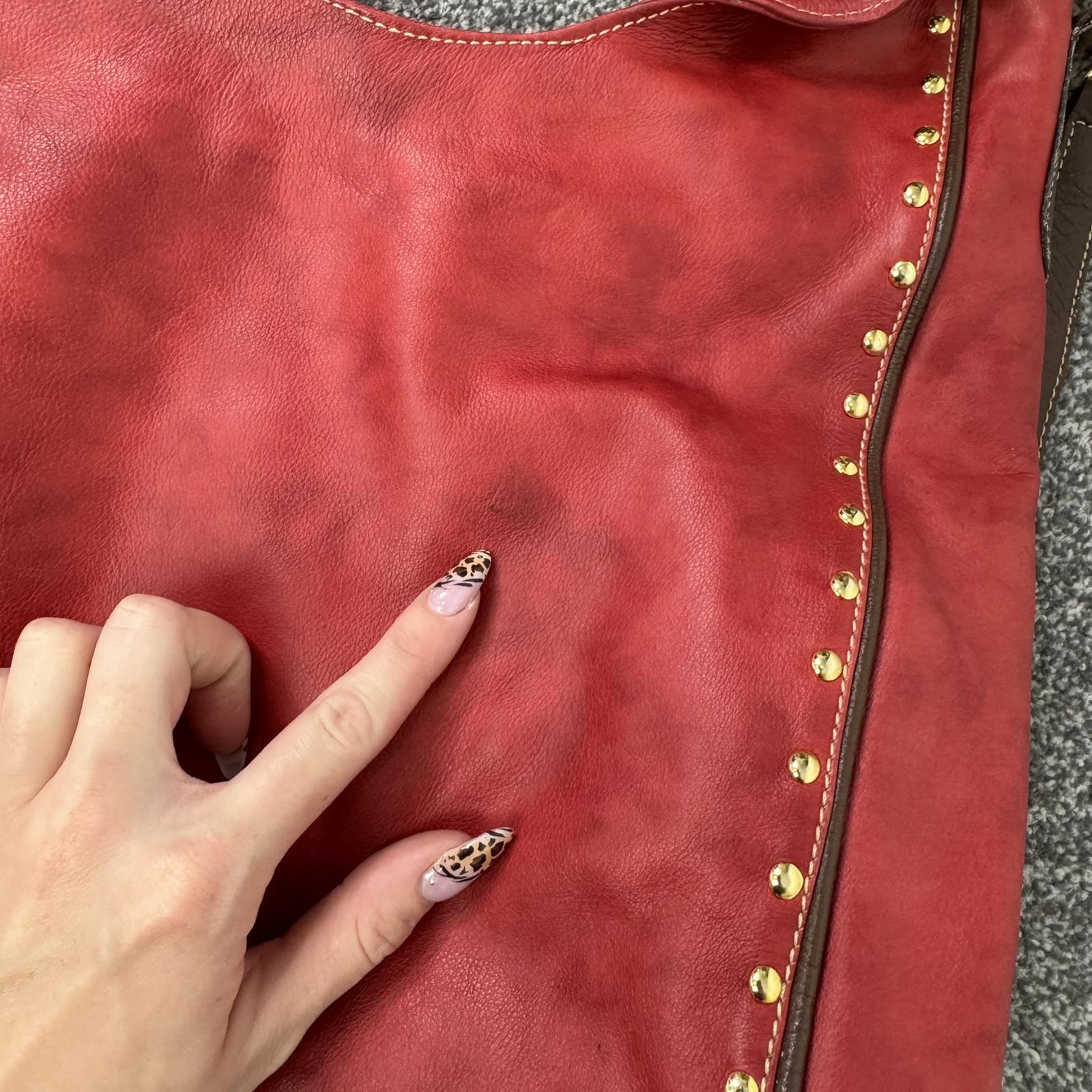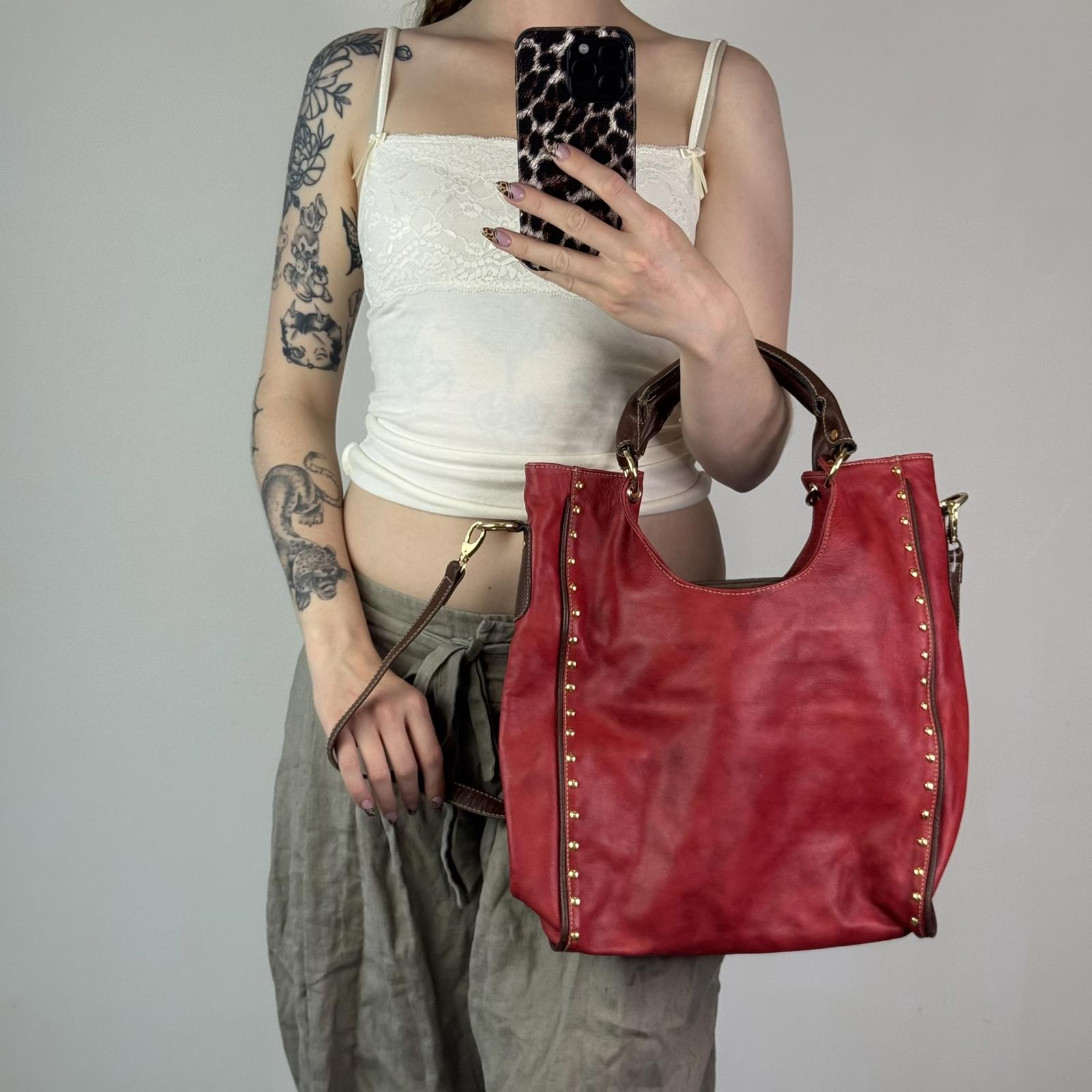 Y2K vintage faux leather studded red handbag crossbody strap brown red medium