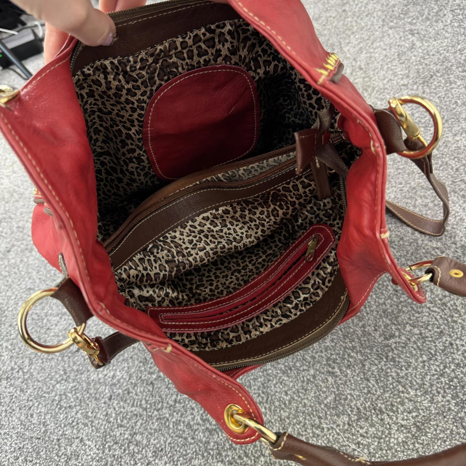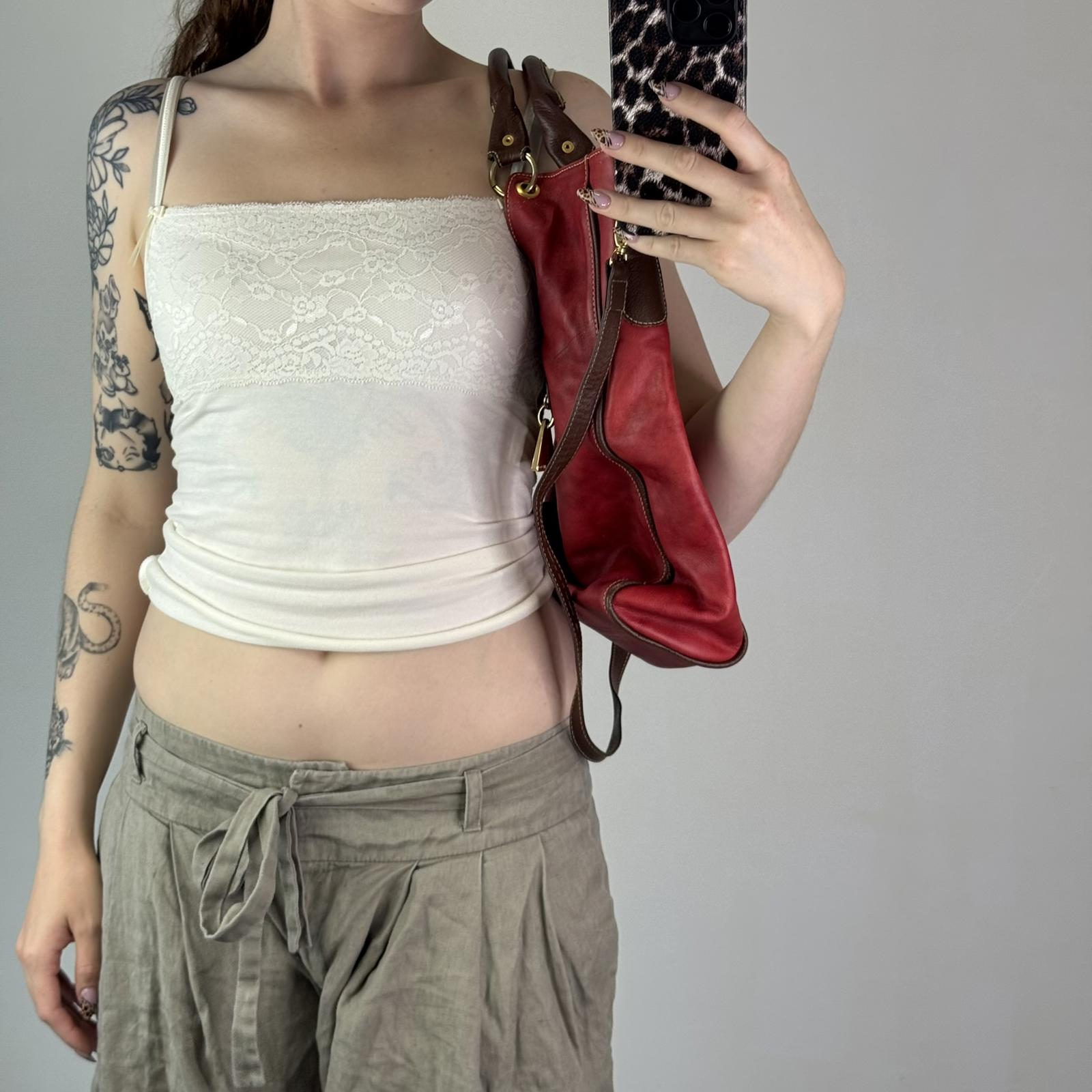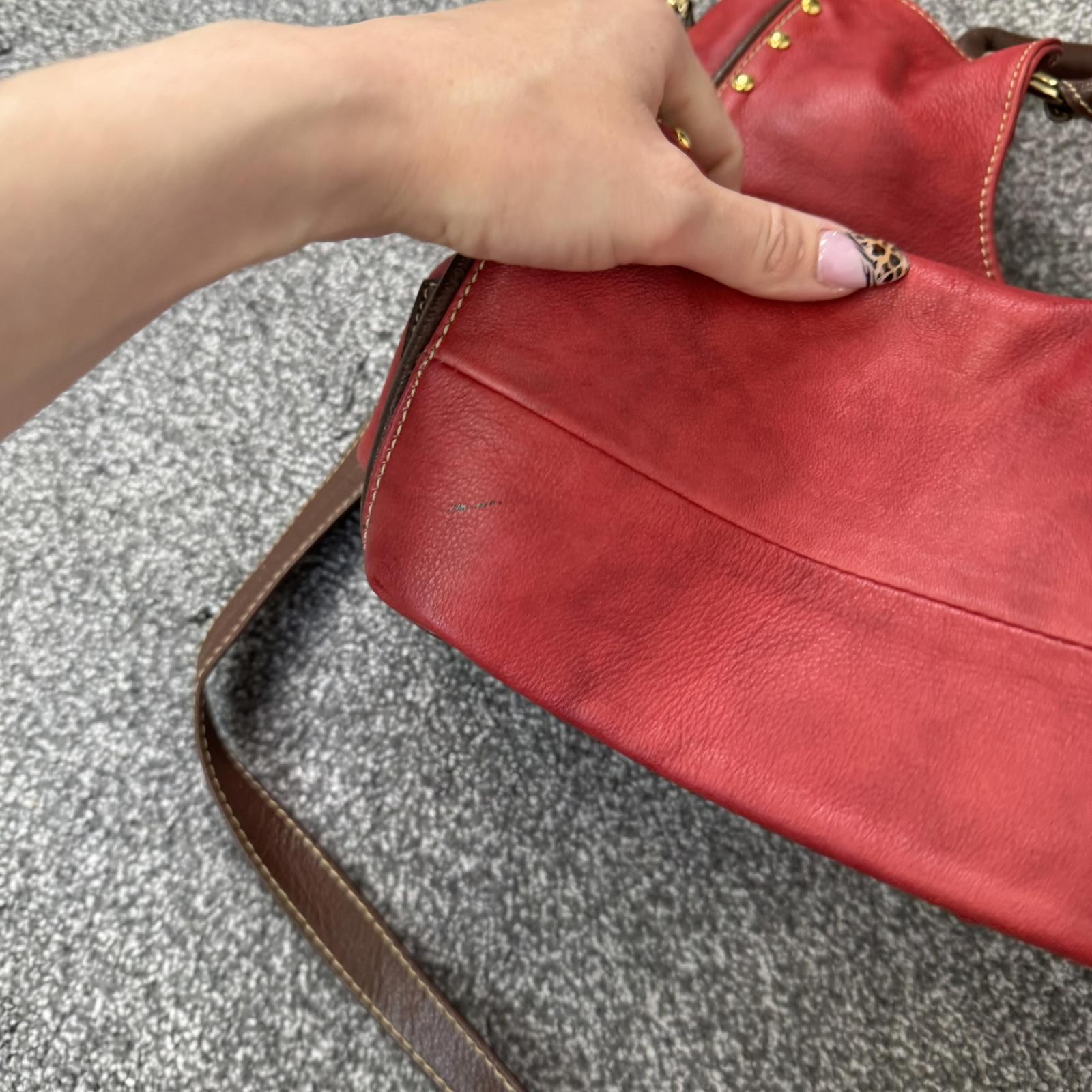 Y2K vintage faux leather studded red handbag crossbody strap brown red medium