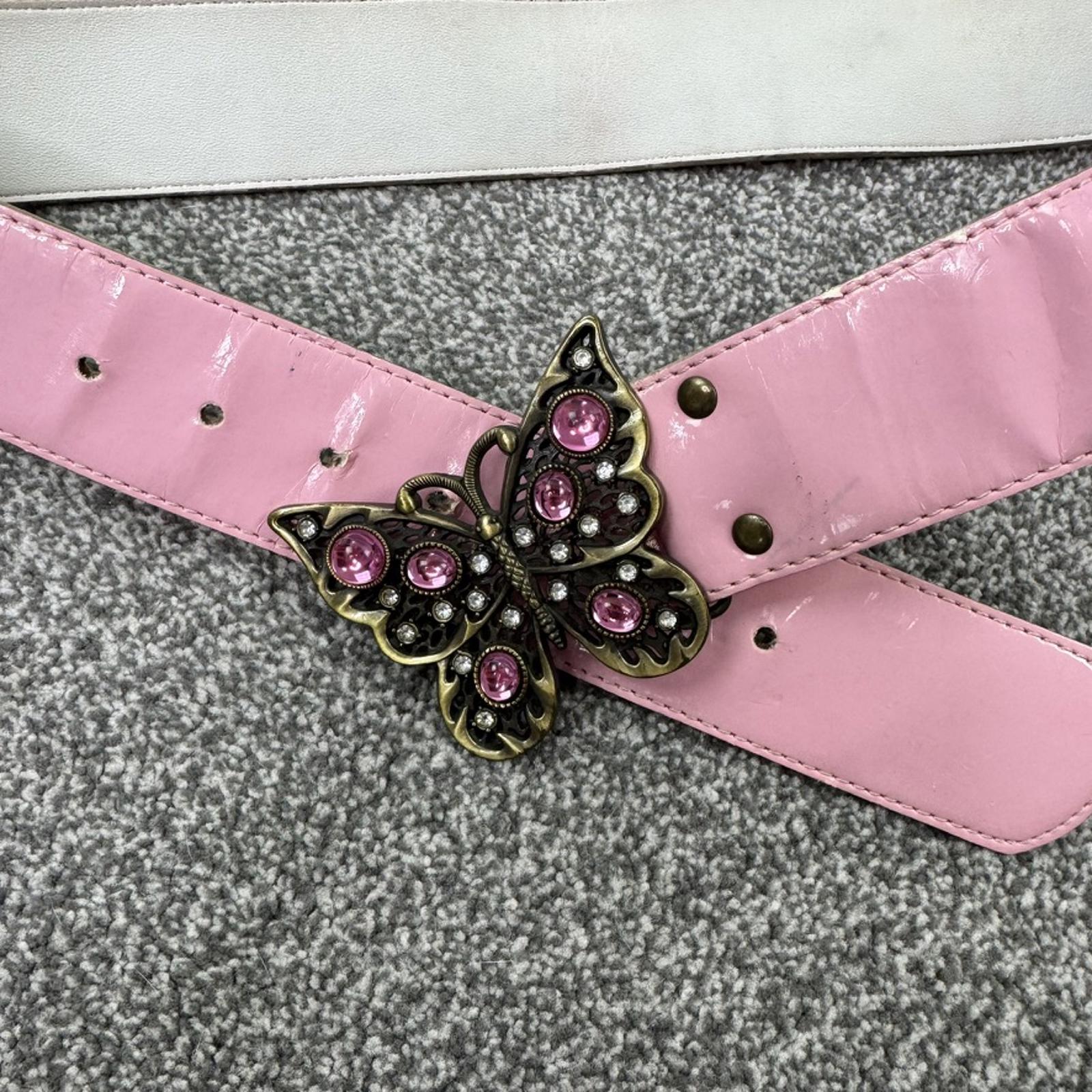 Y2K vintage faux patent leather butterfly belt rhinestone baby pink shiny