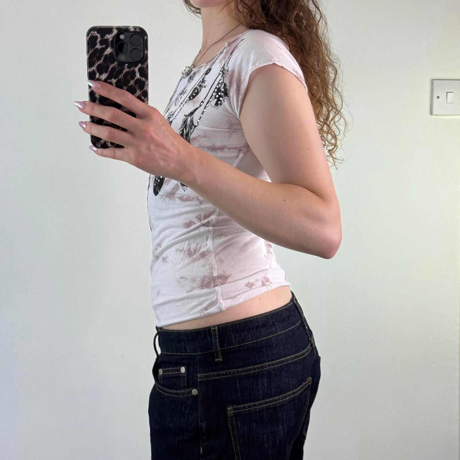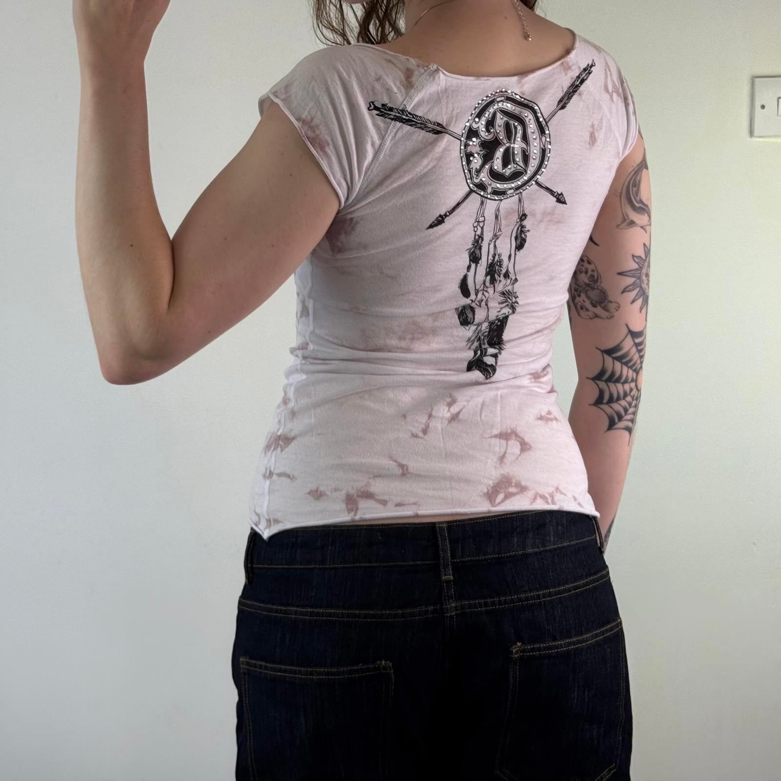 Y2K vintage feather rhinestone tie dye open neck top off the shoulder 2010s