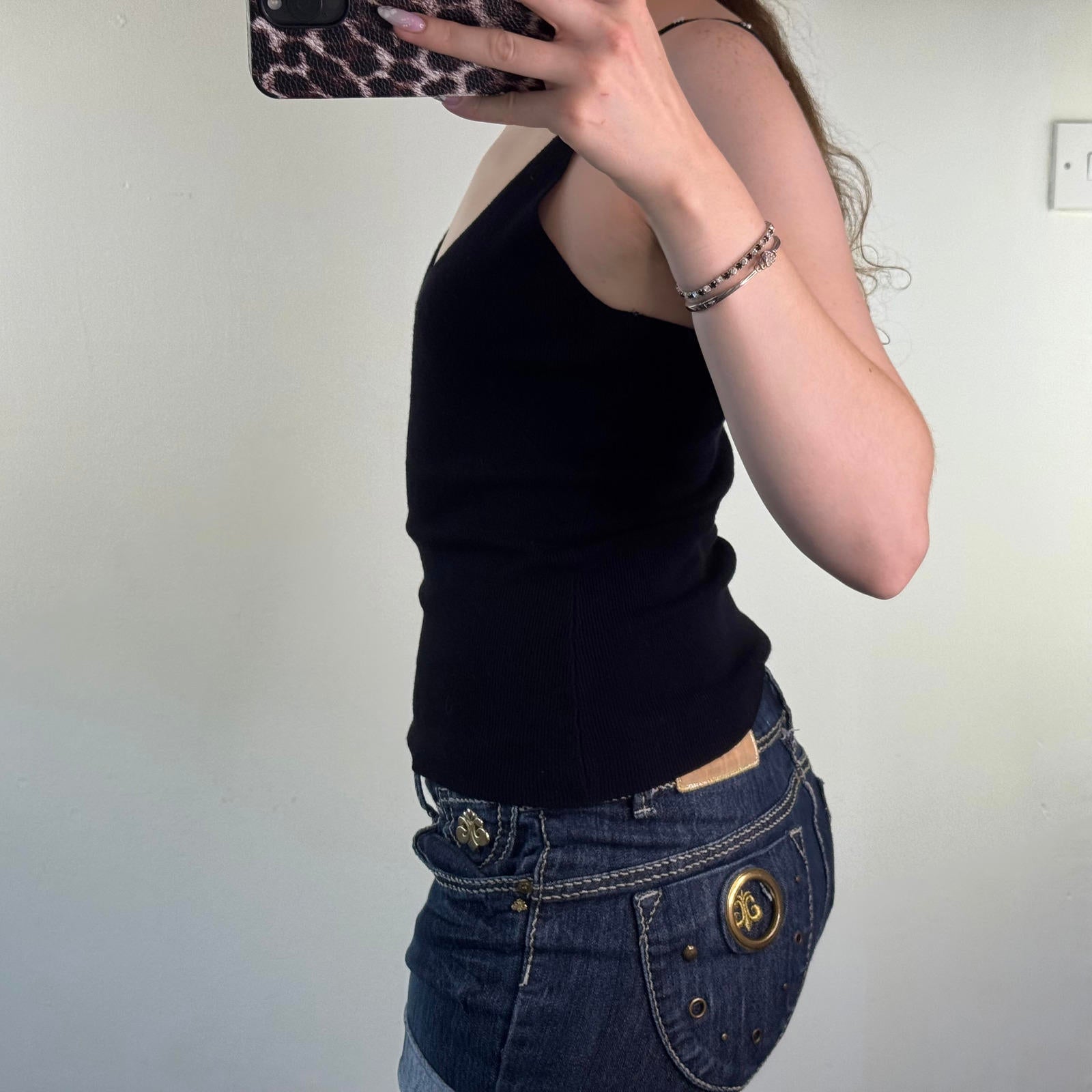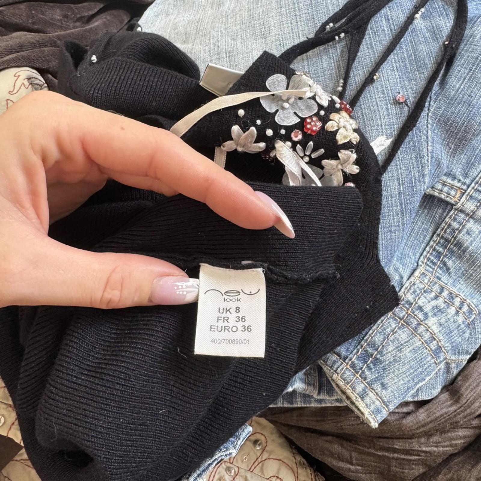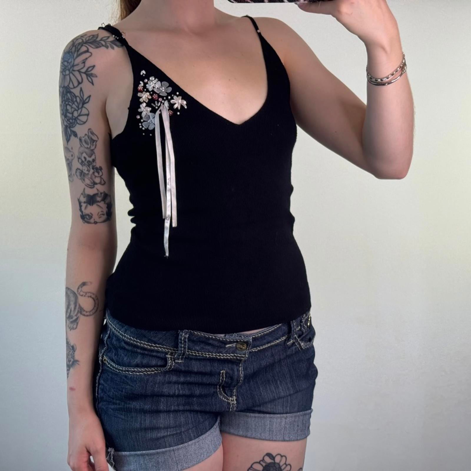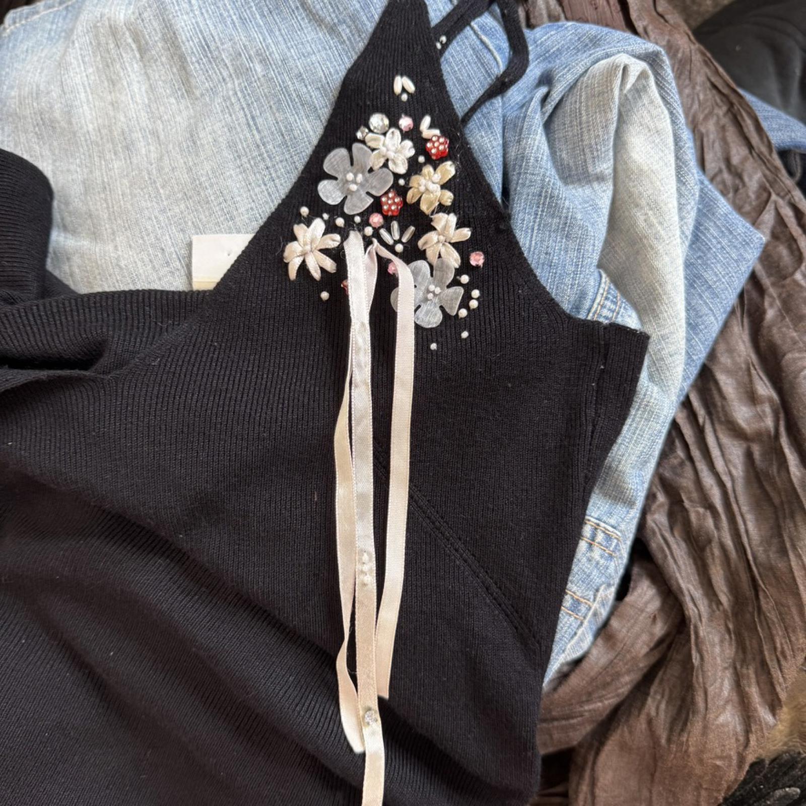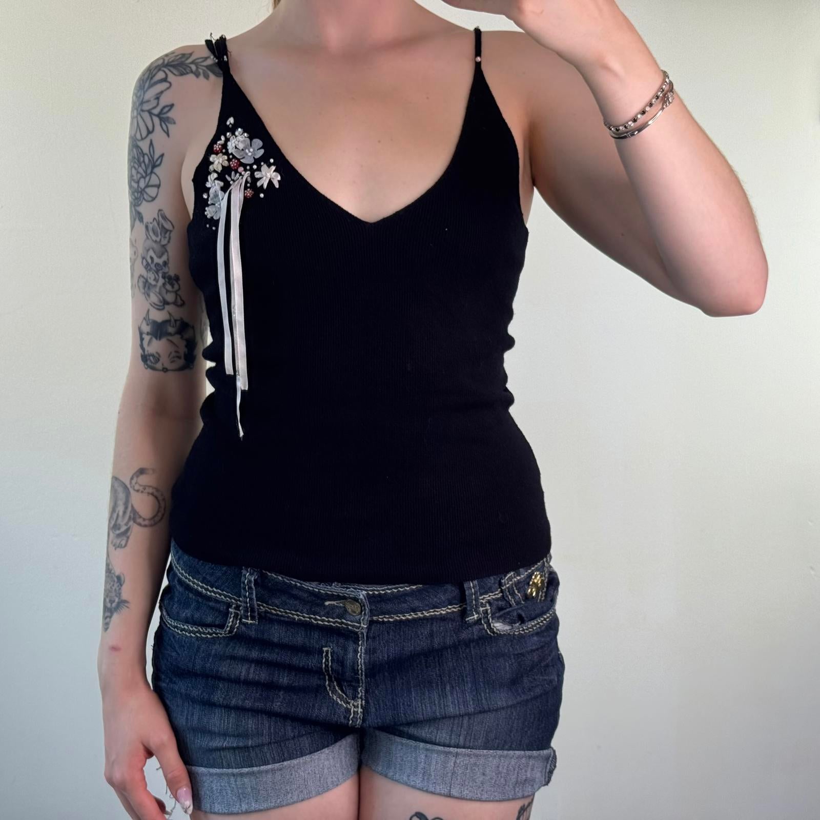 Y2K vintage fine knit cami top strappy rhinestones embellished flowers beaded