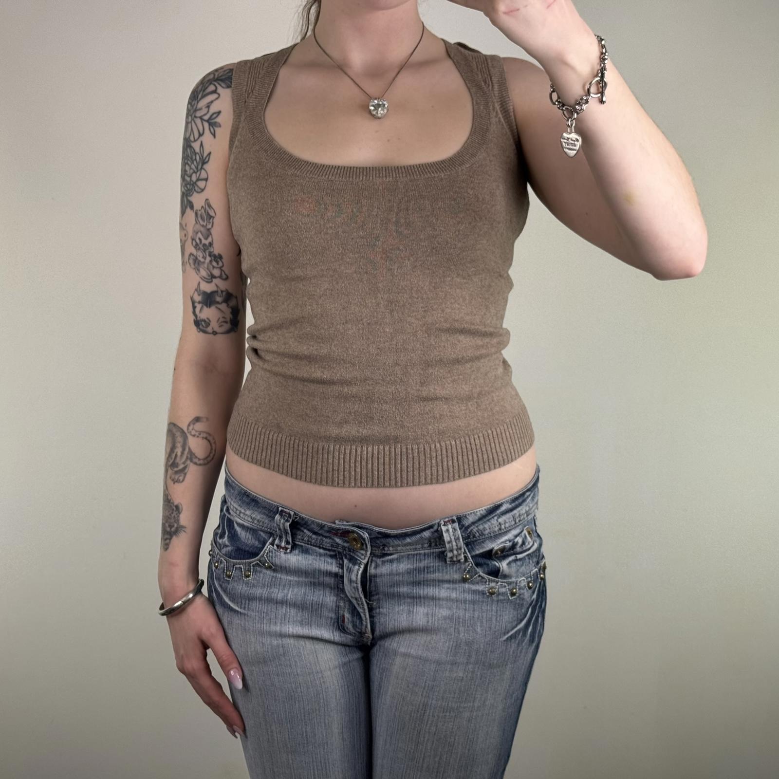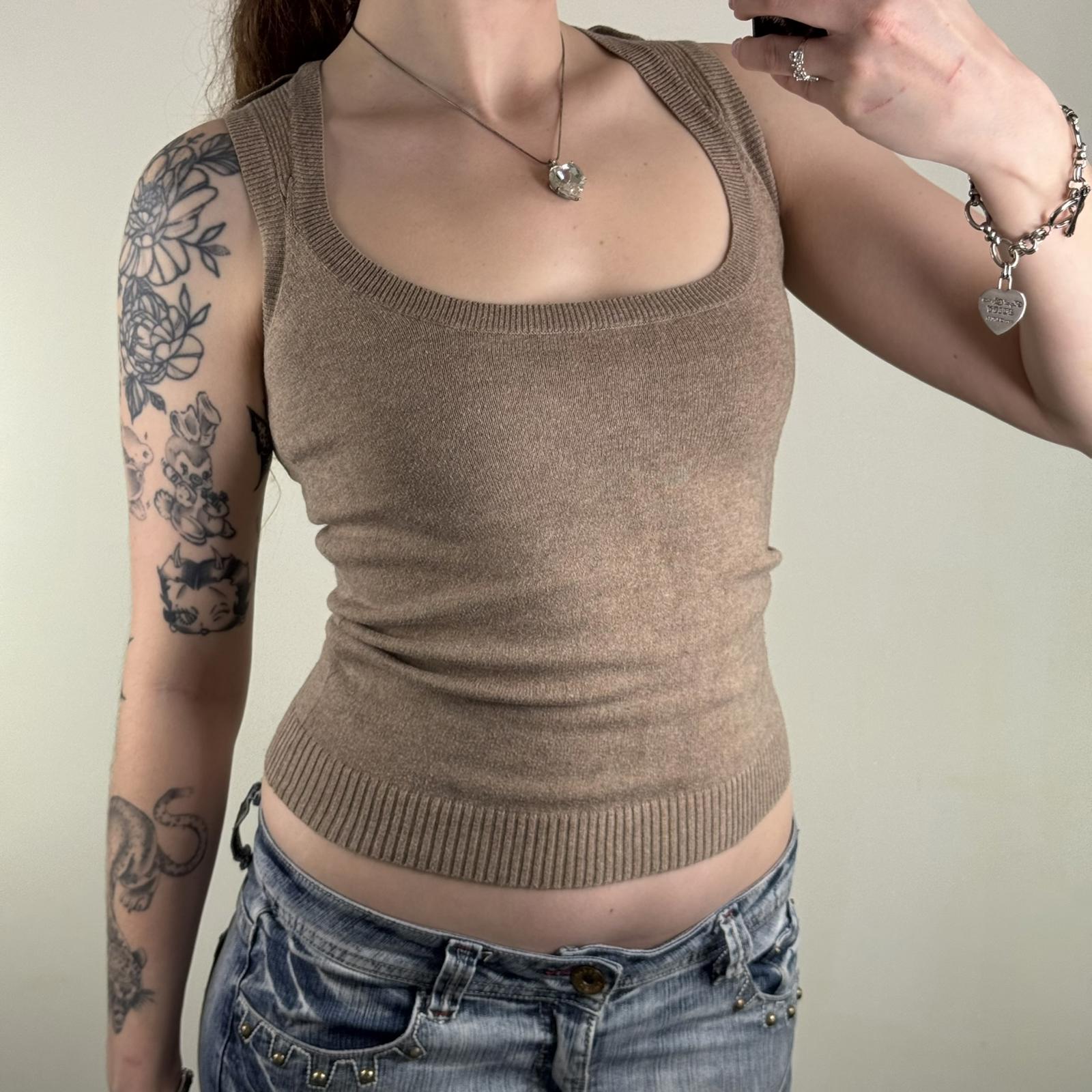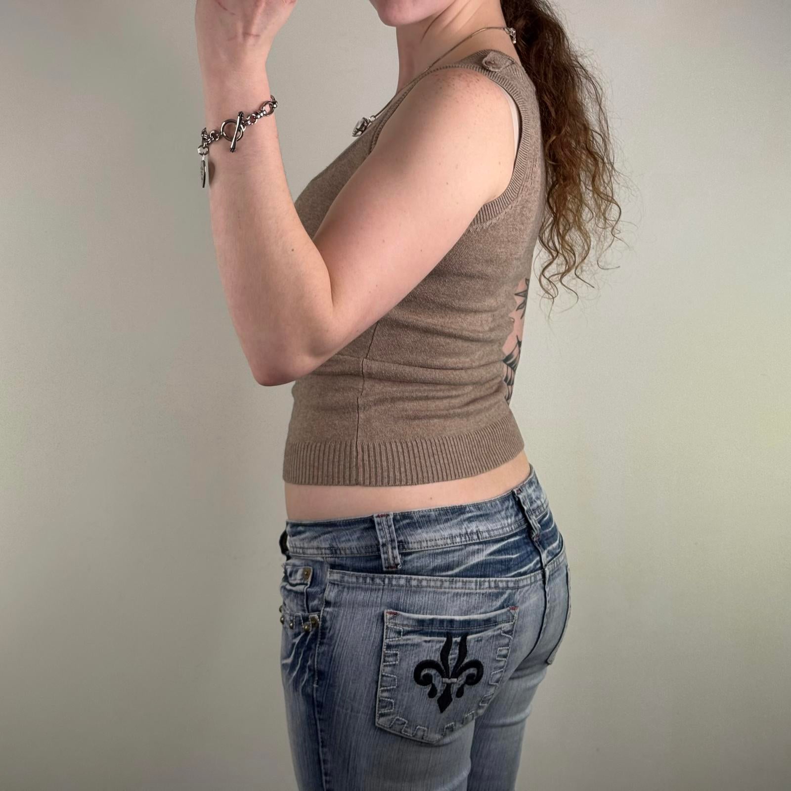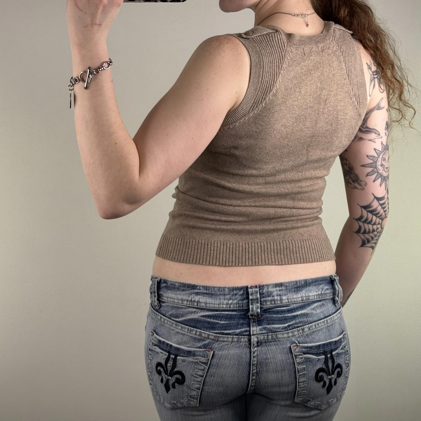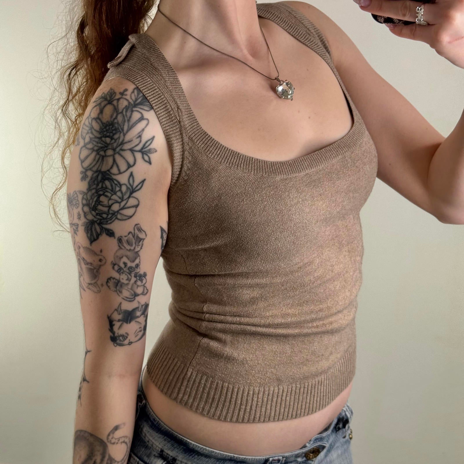 Y2K vintage fine knit stretchy fitted top deep round neckline sleeveless buttons