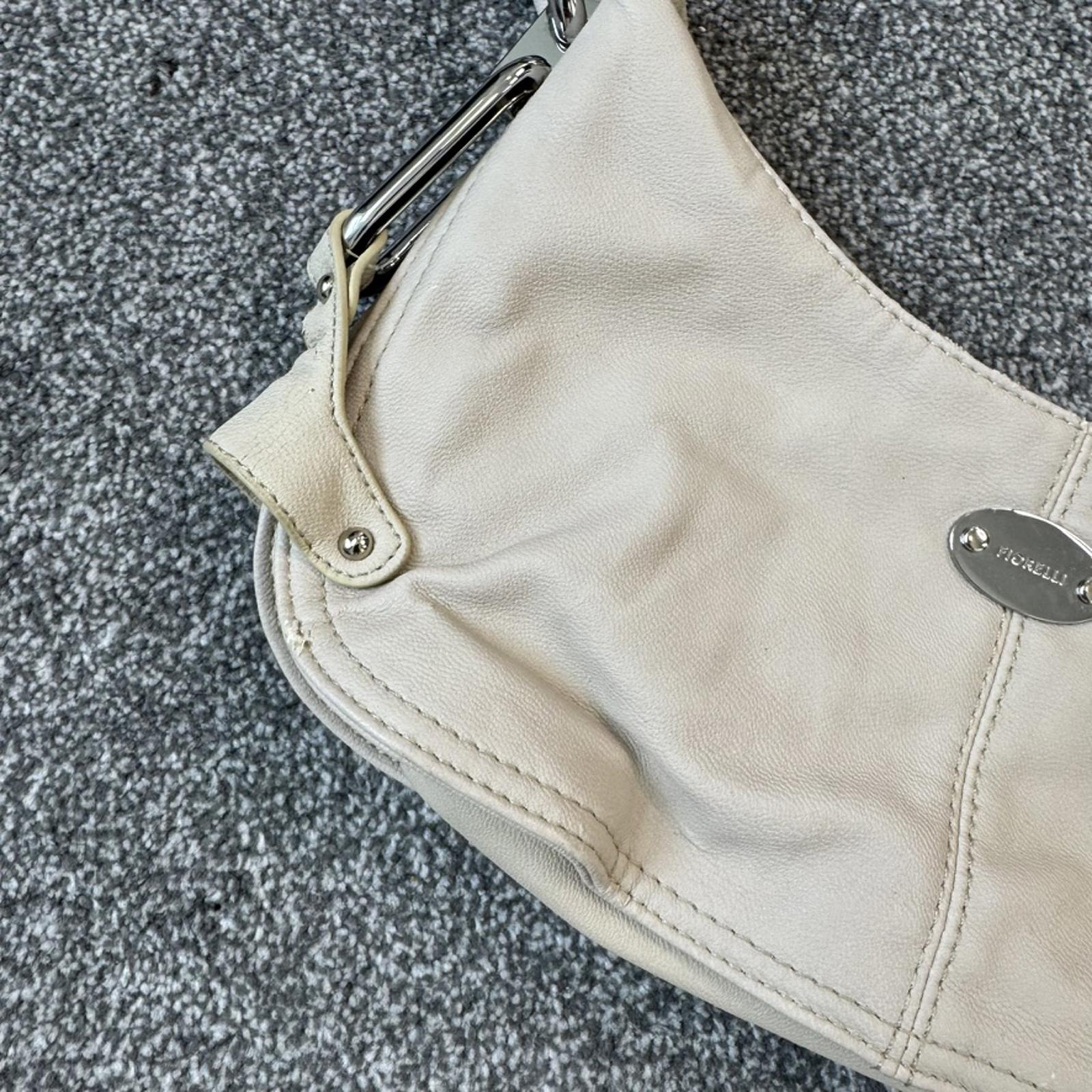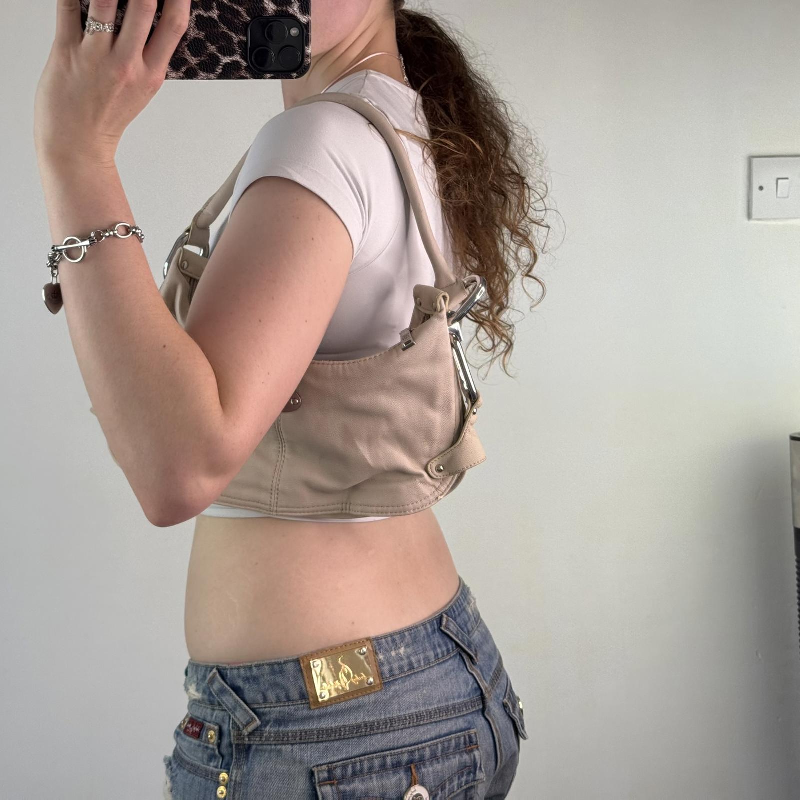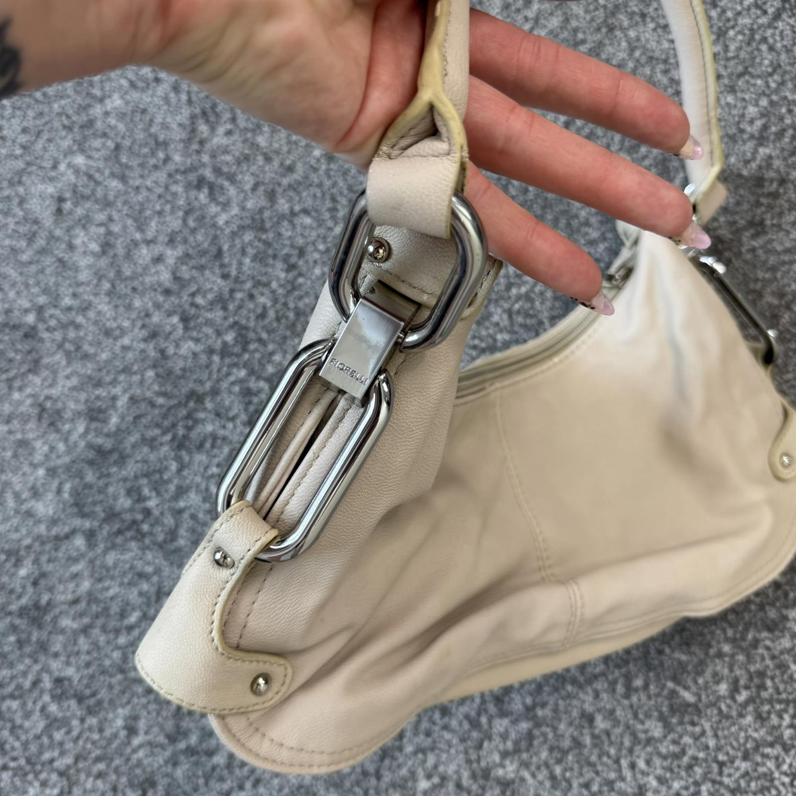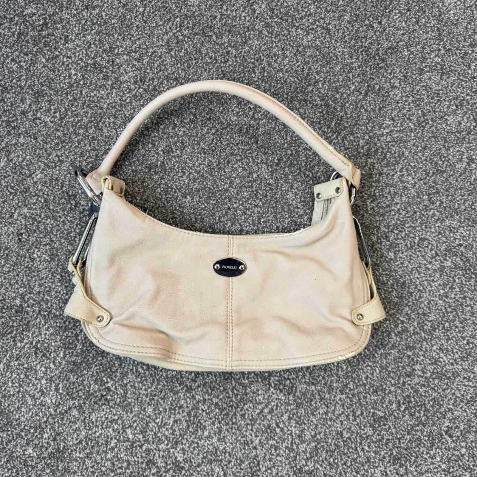 Y2K vintage Fiorelli faux leather mini shoulder bag buckle studded cream silver