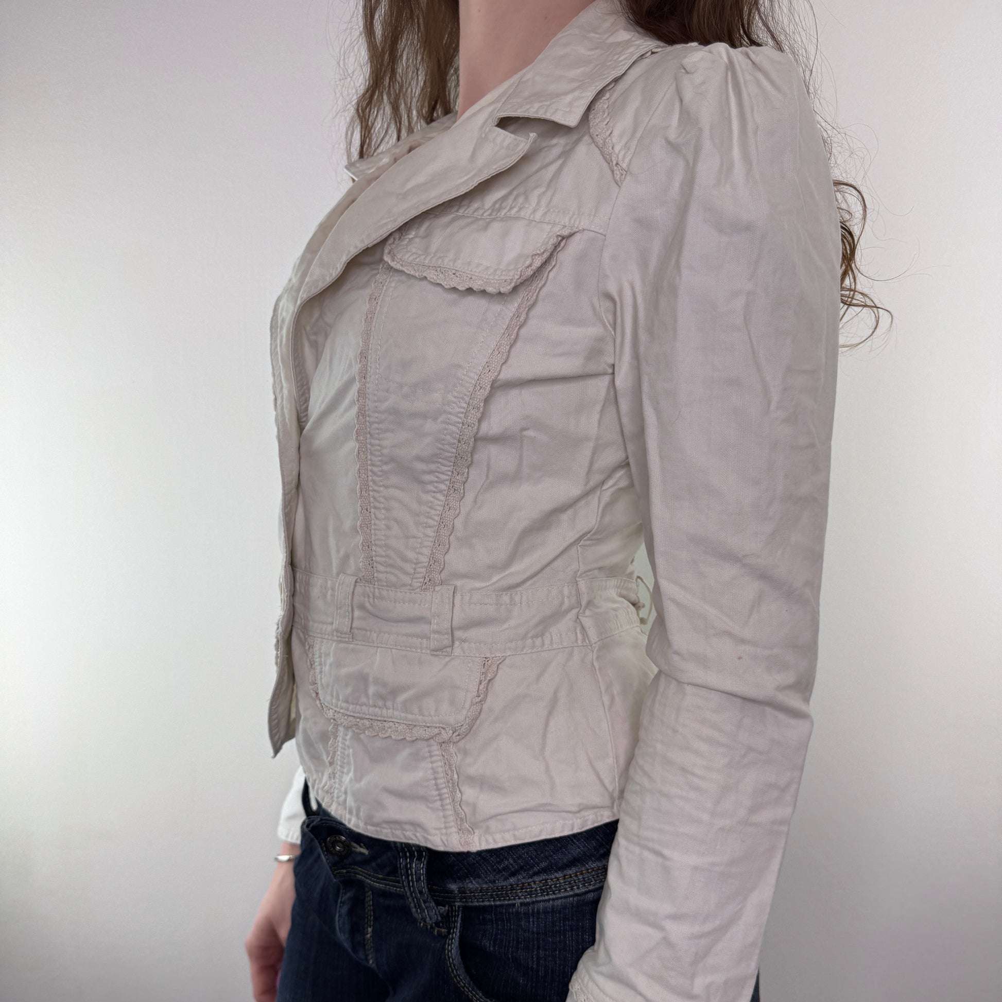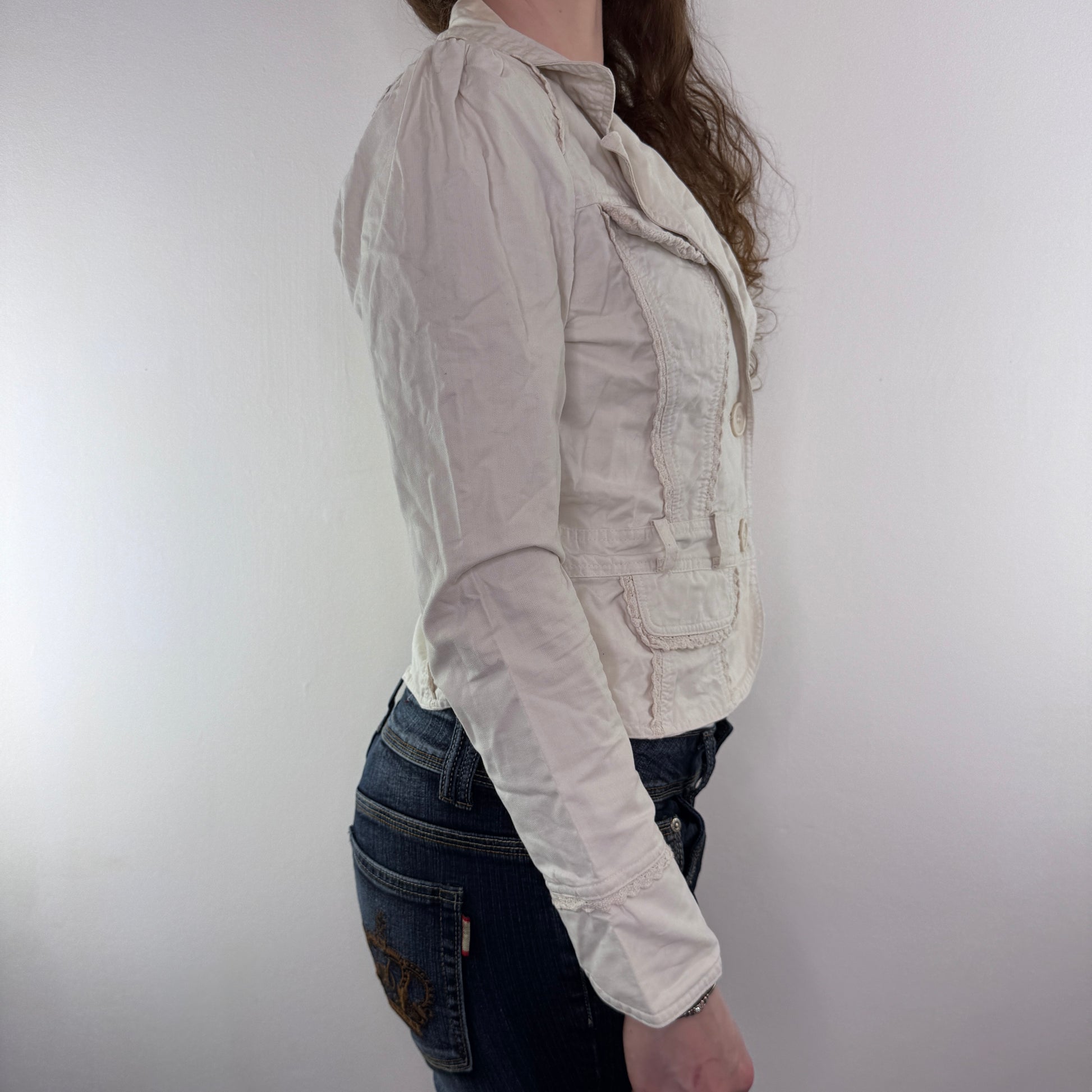 Y2K vintage fitted denim blazer frill knit trims button up jacket