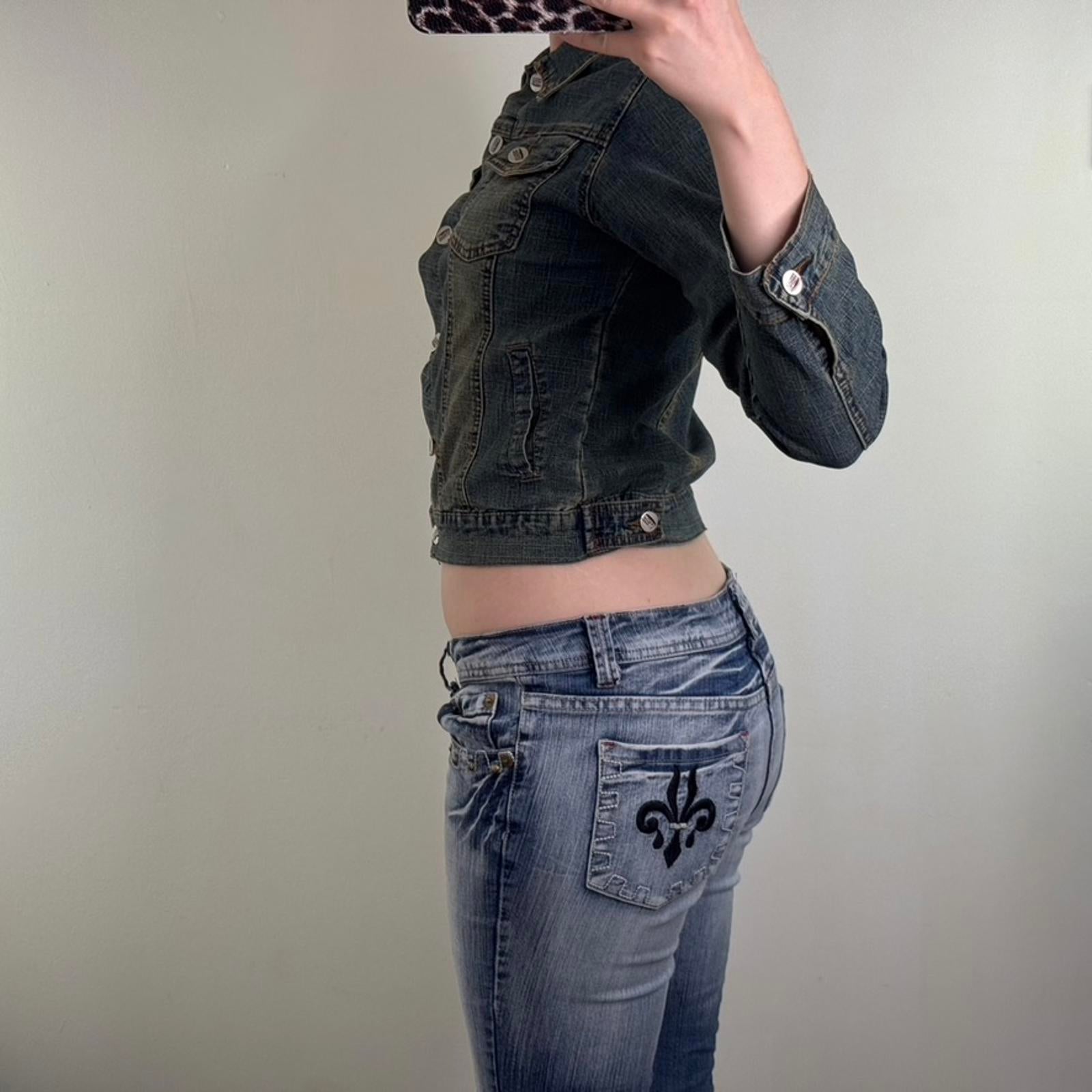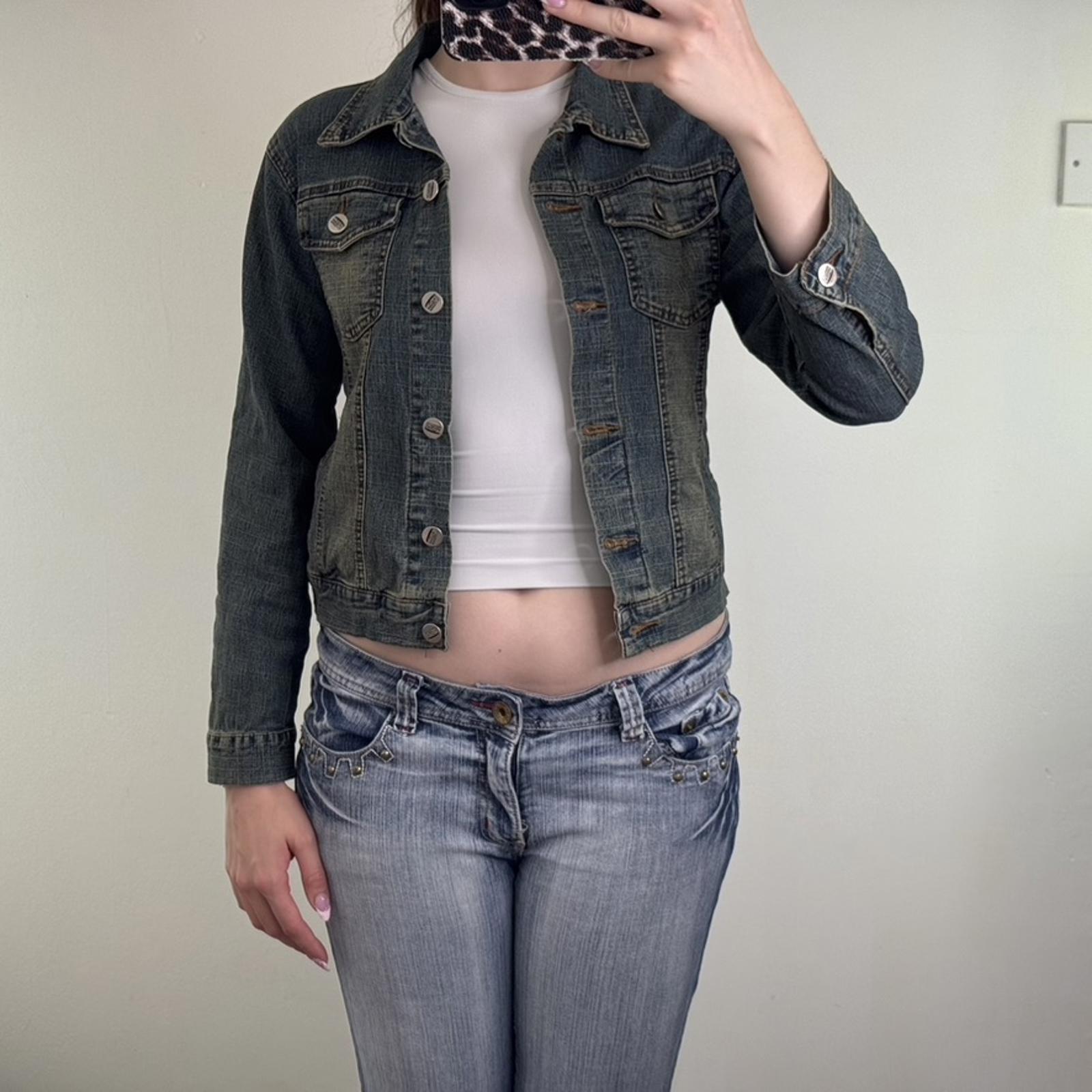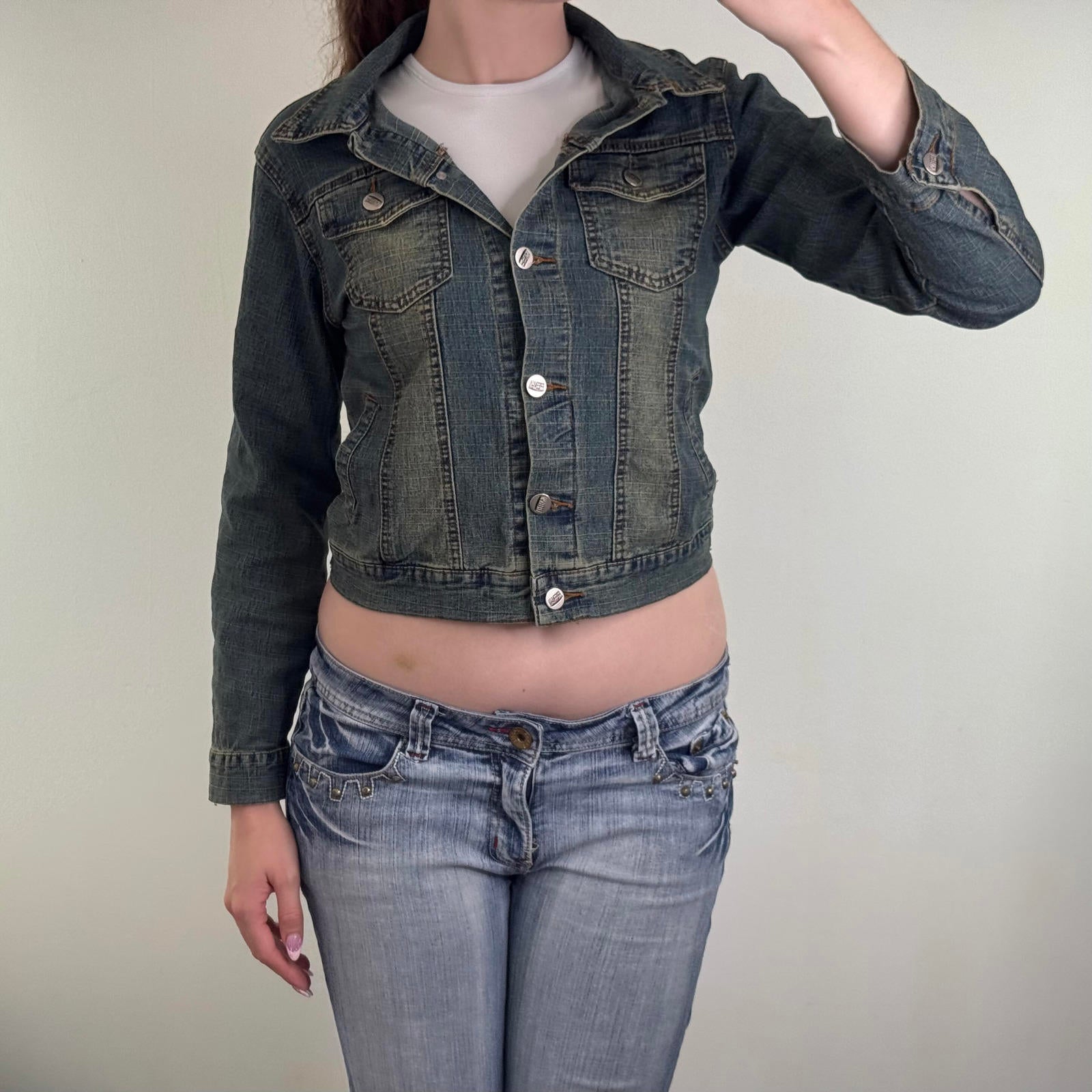 Y2K vintage fitted faded denim button up jacket dirty wash archive slight crop