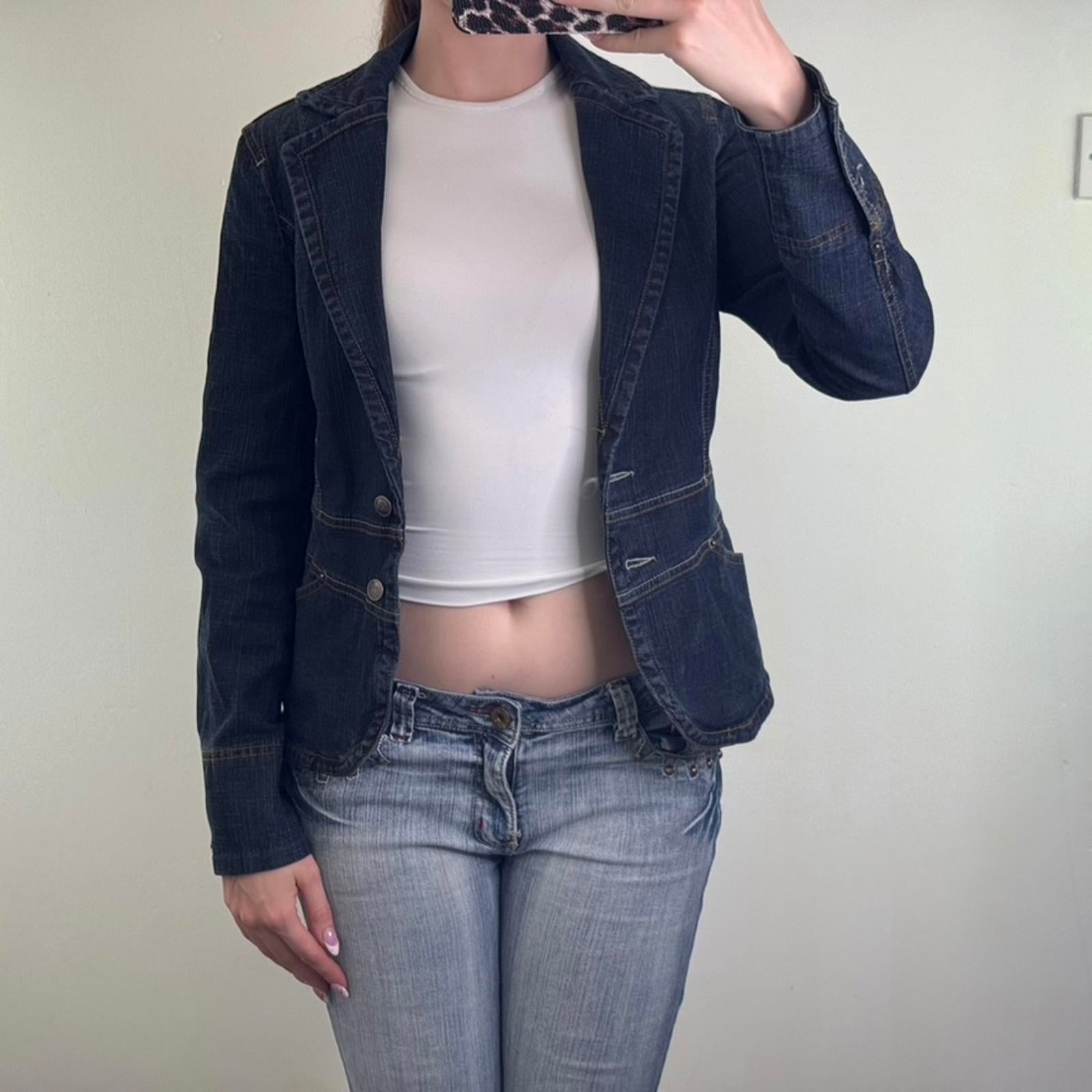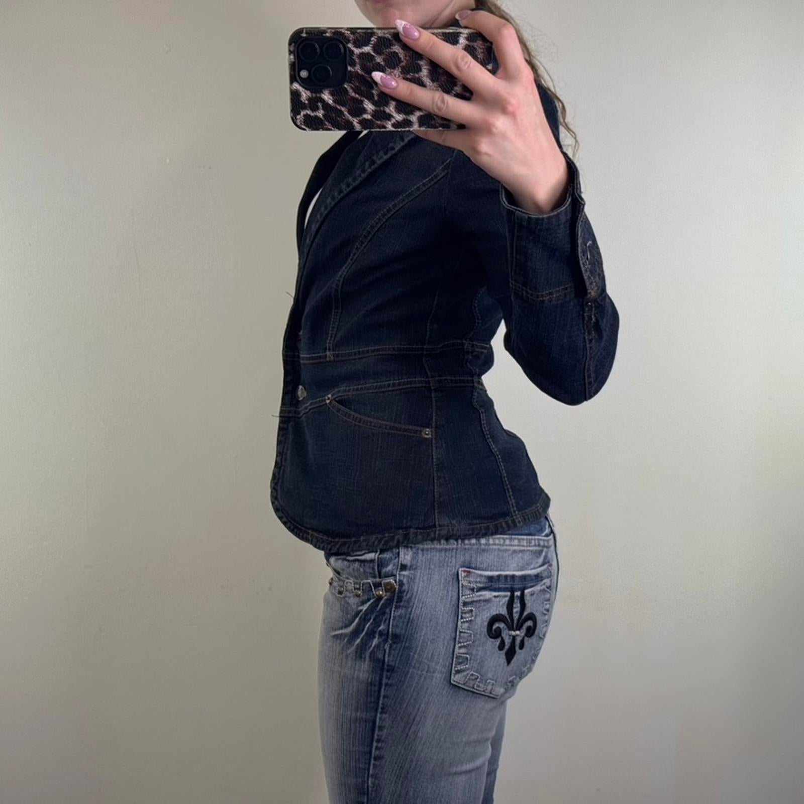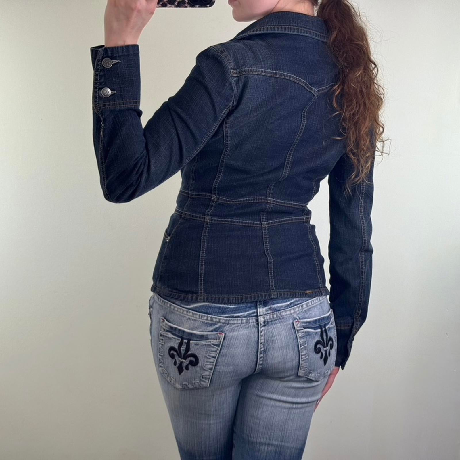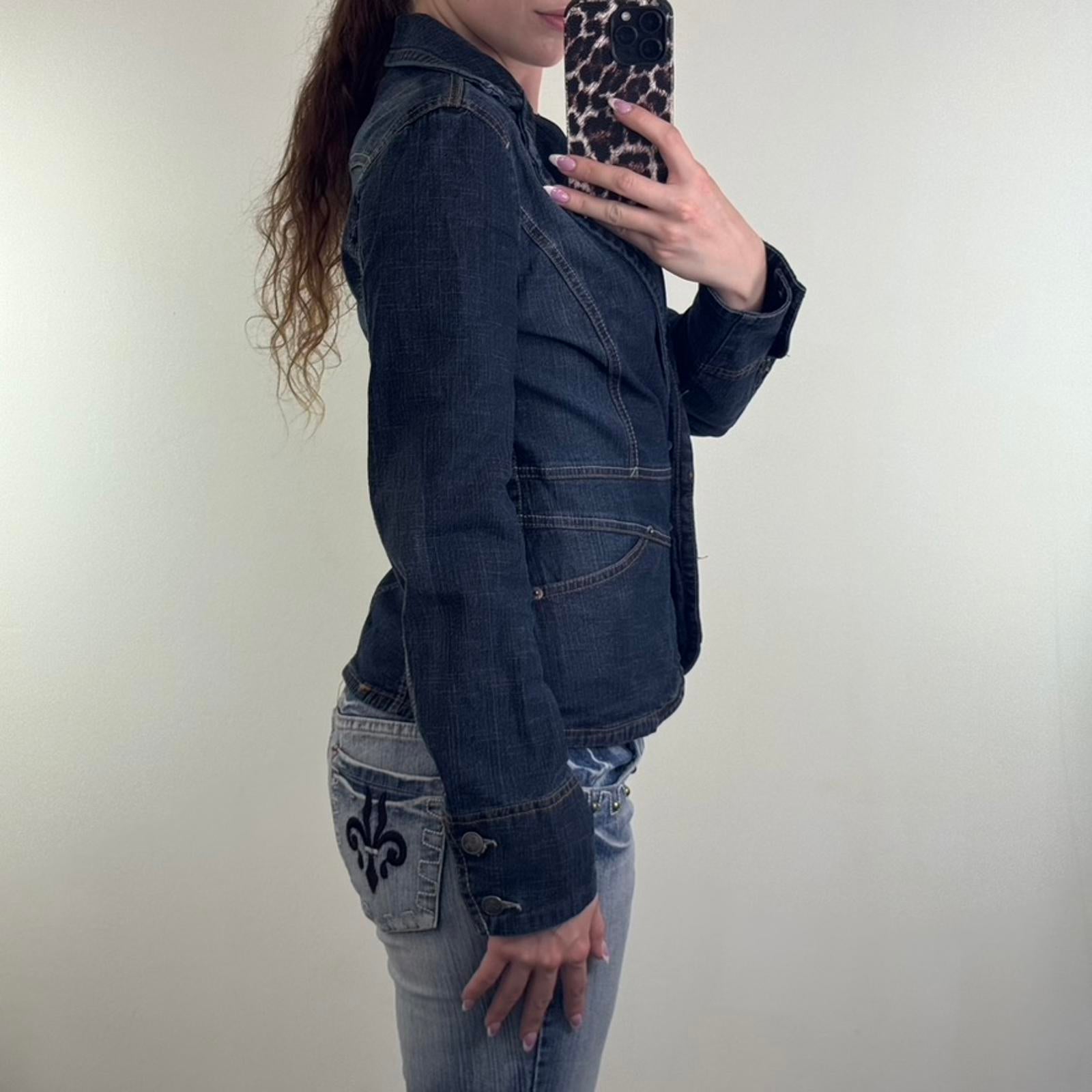 Y2K vintage fitted stretchy denim jacket button up faded wash buttons blazer