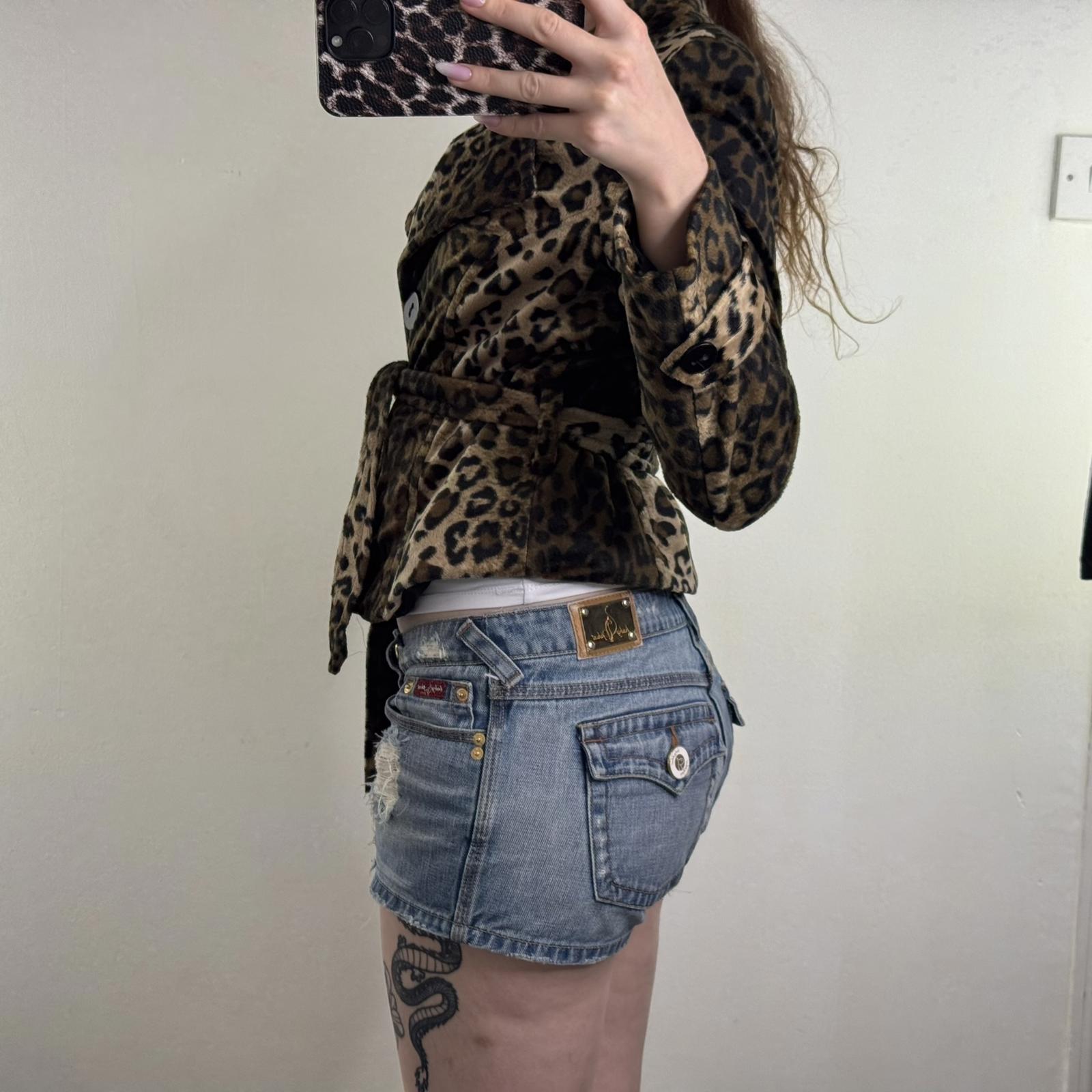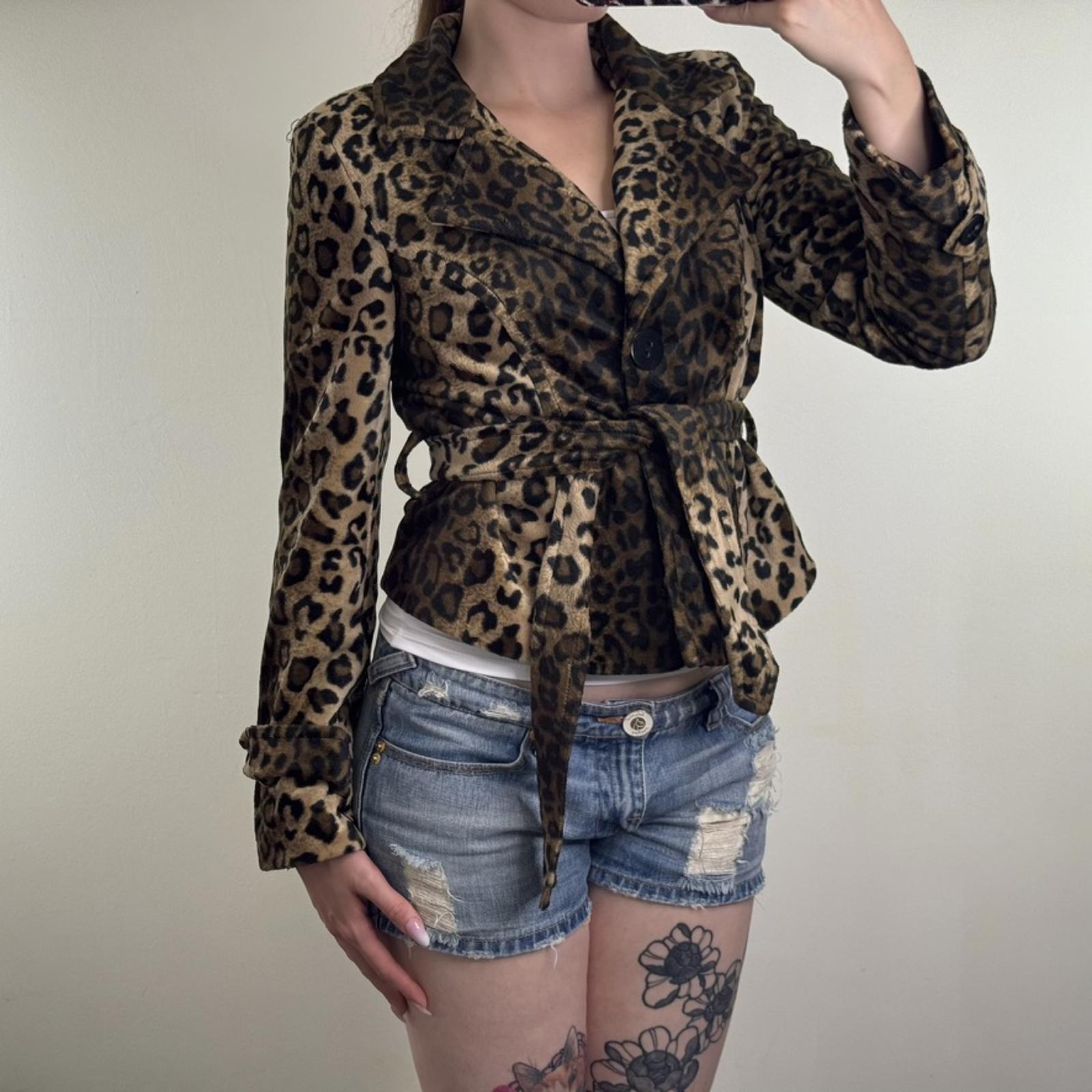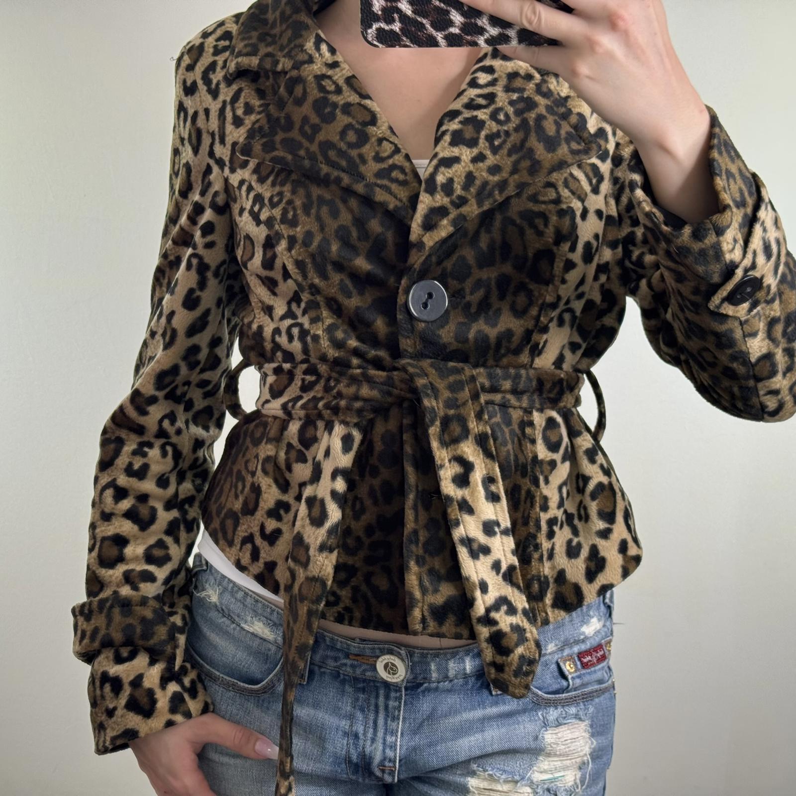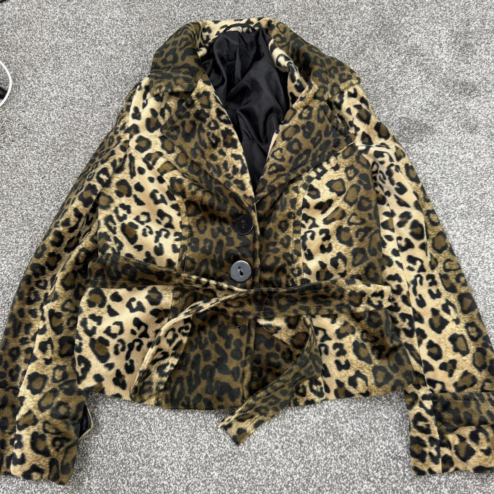 Y2K vintage fuzzy leopard print short jacket with belt flattering lightweight