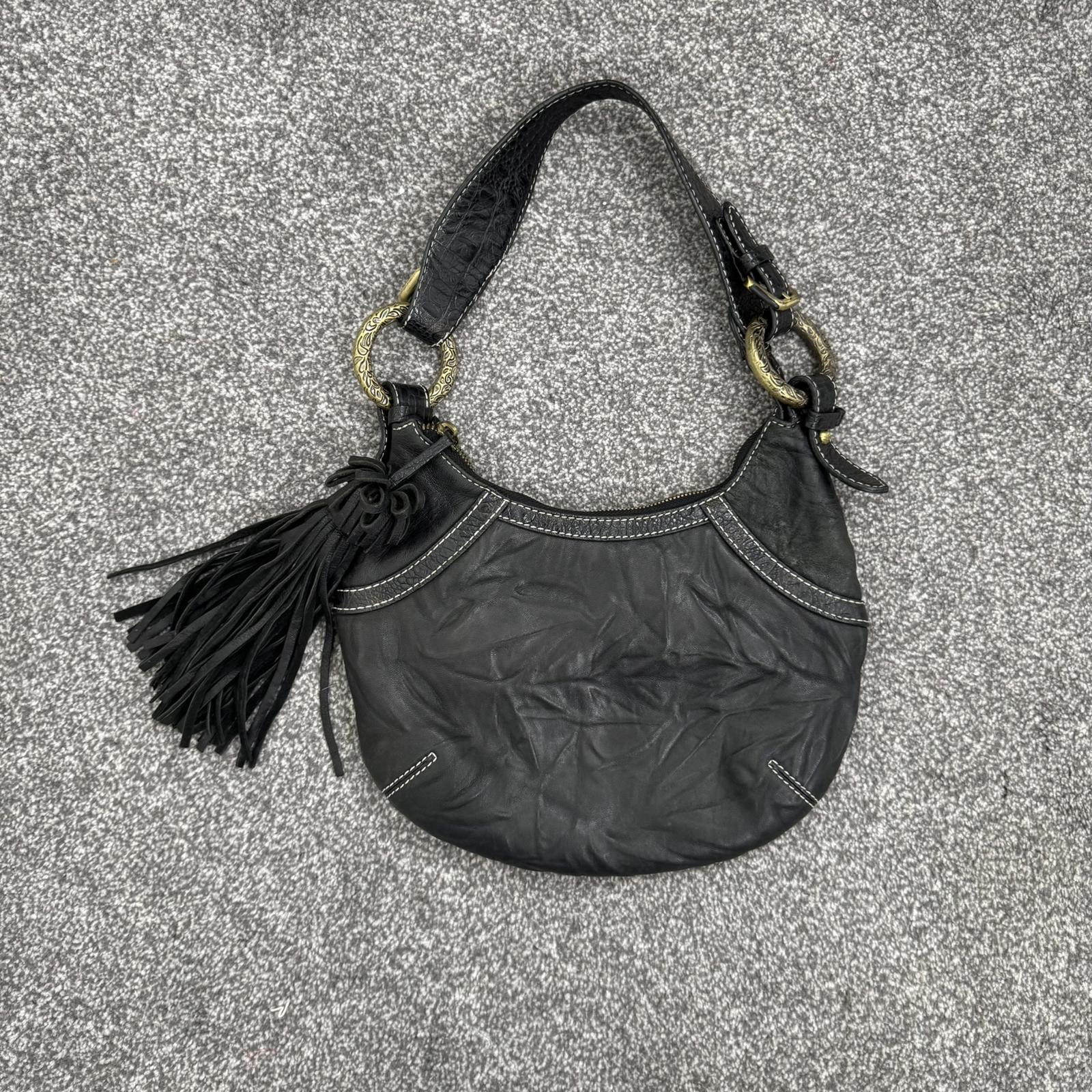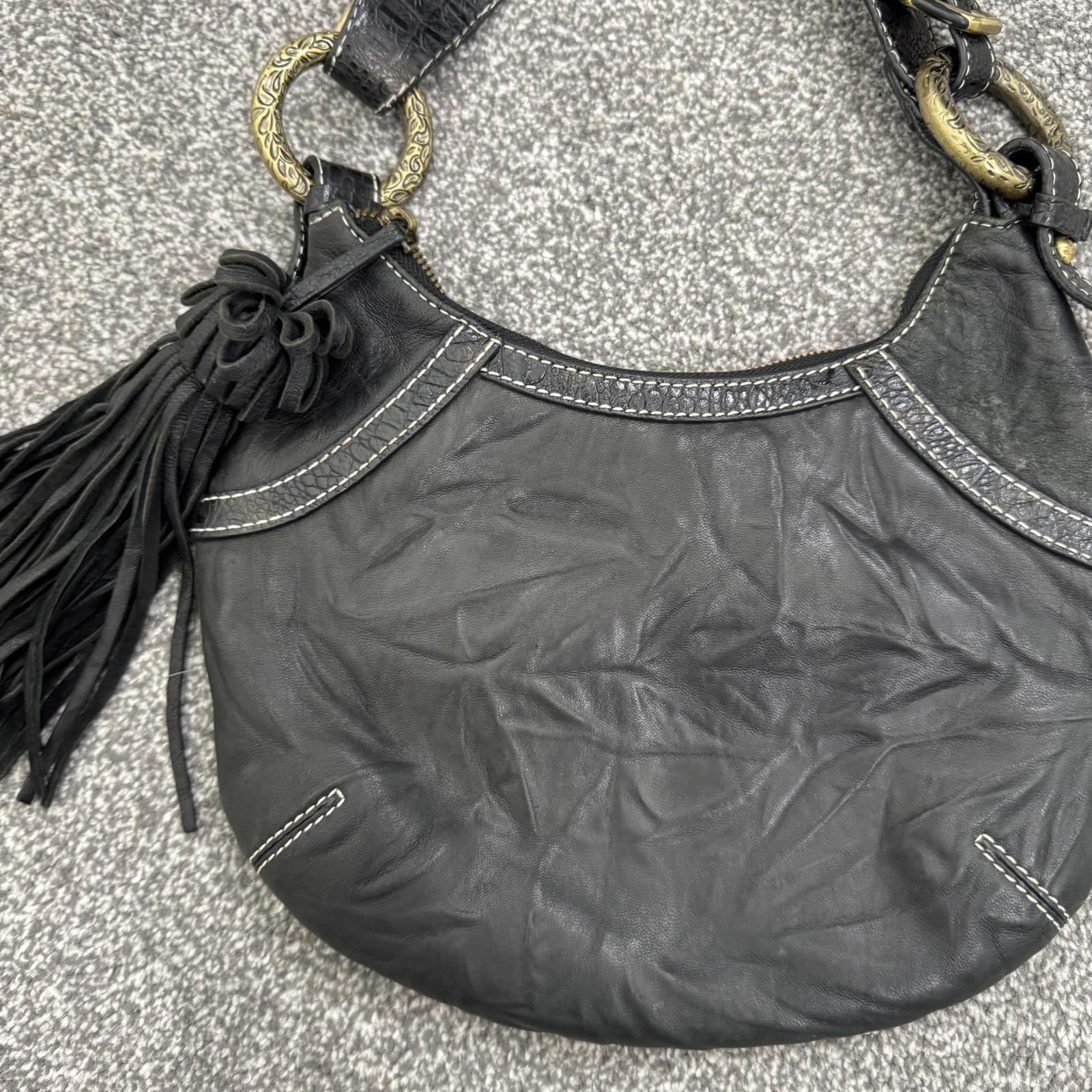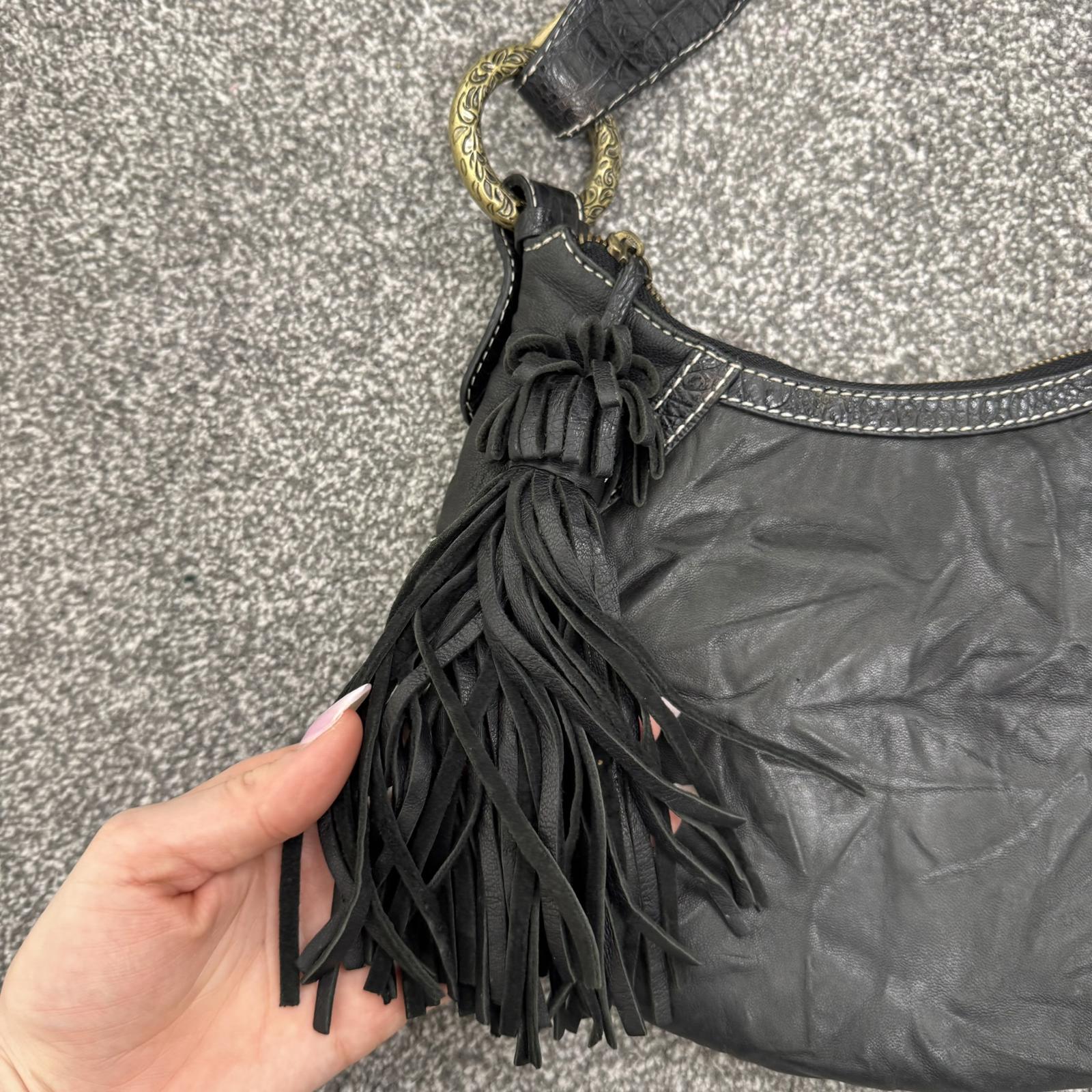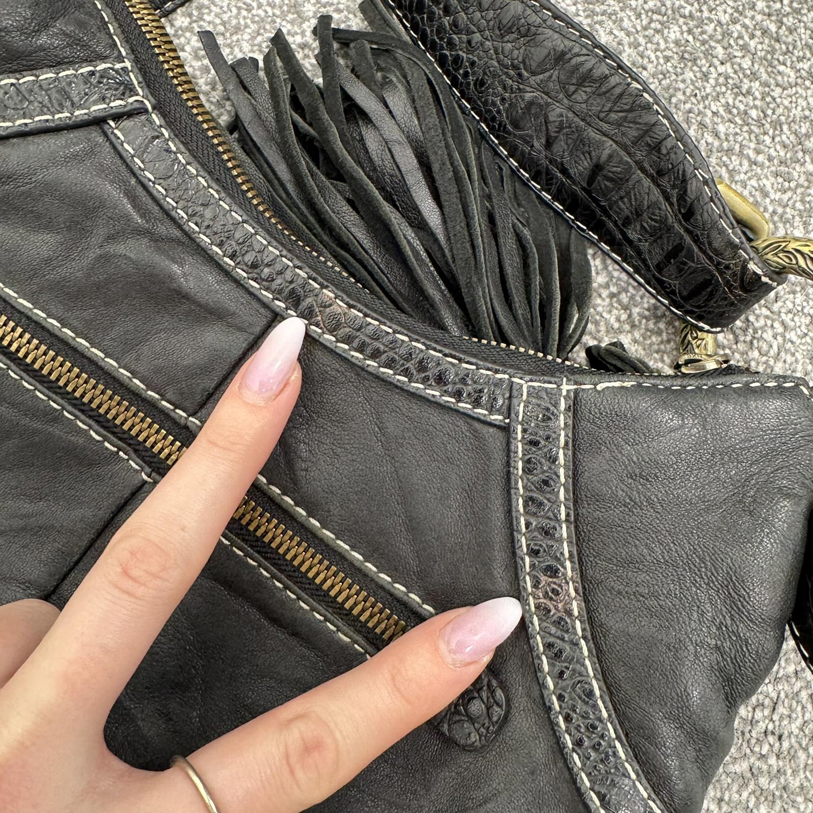 Y2K vintage genuine leather shoulder bag butter soft fringe charm hobo slouchy