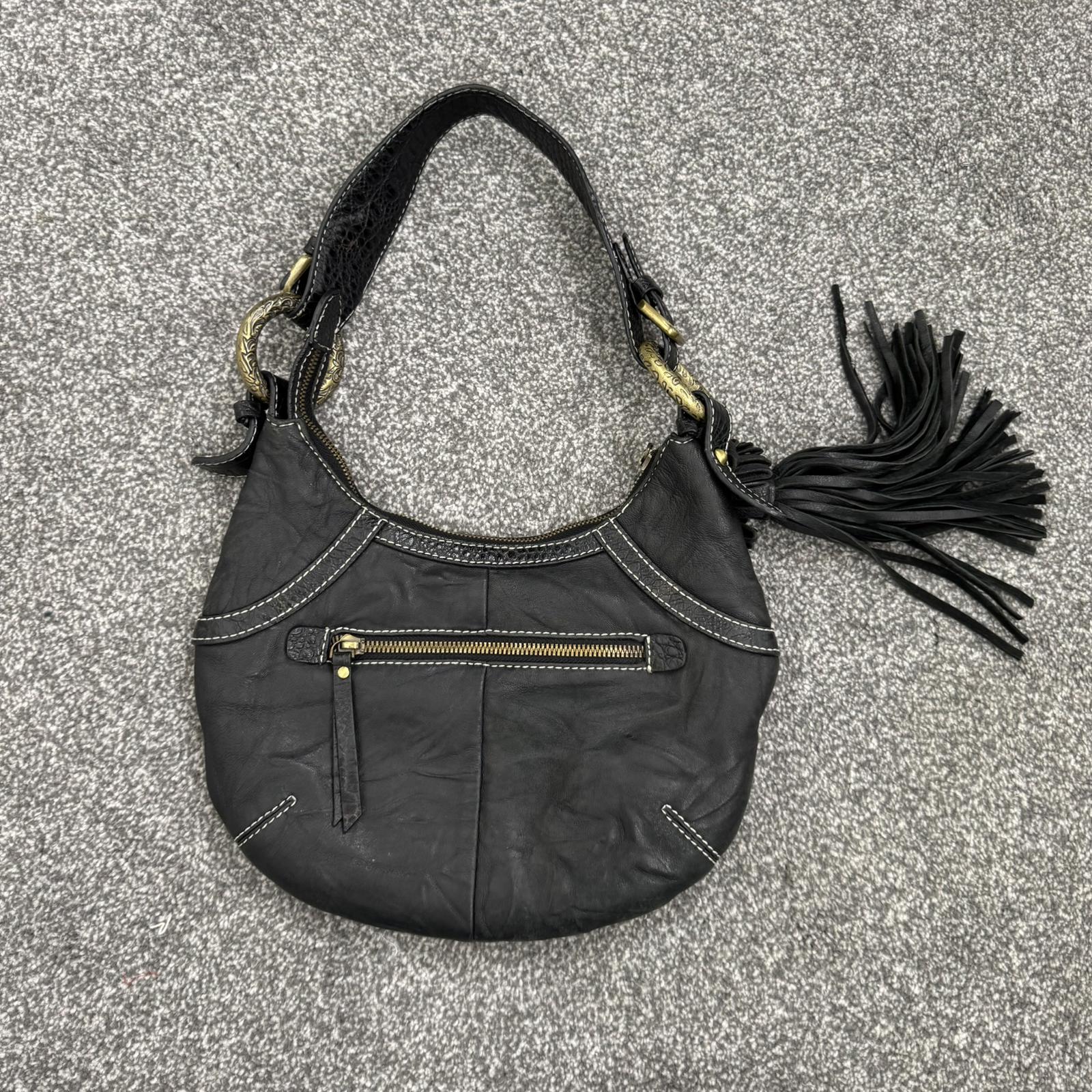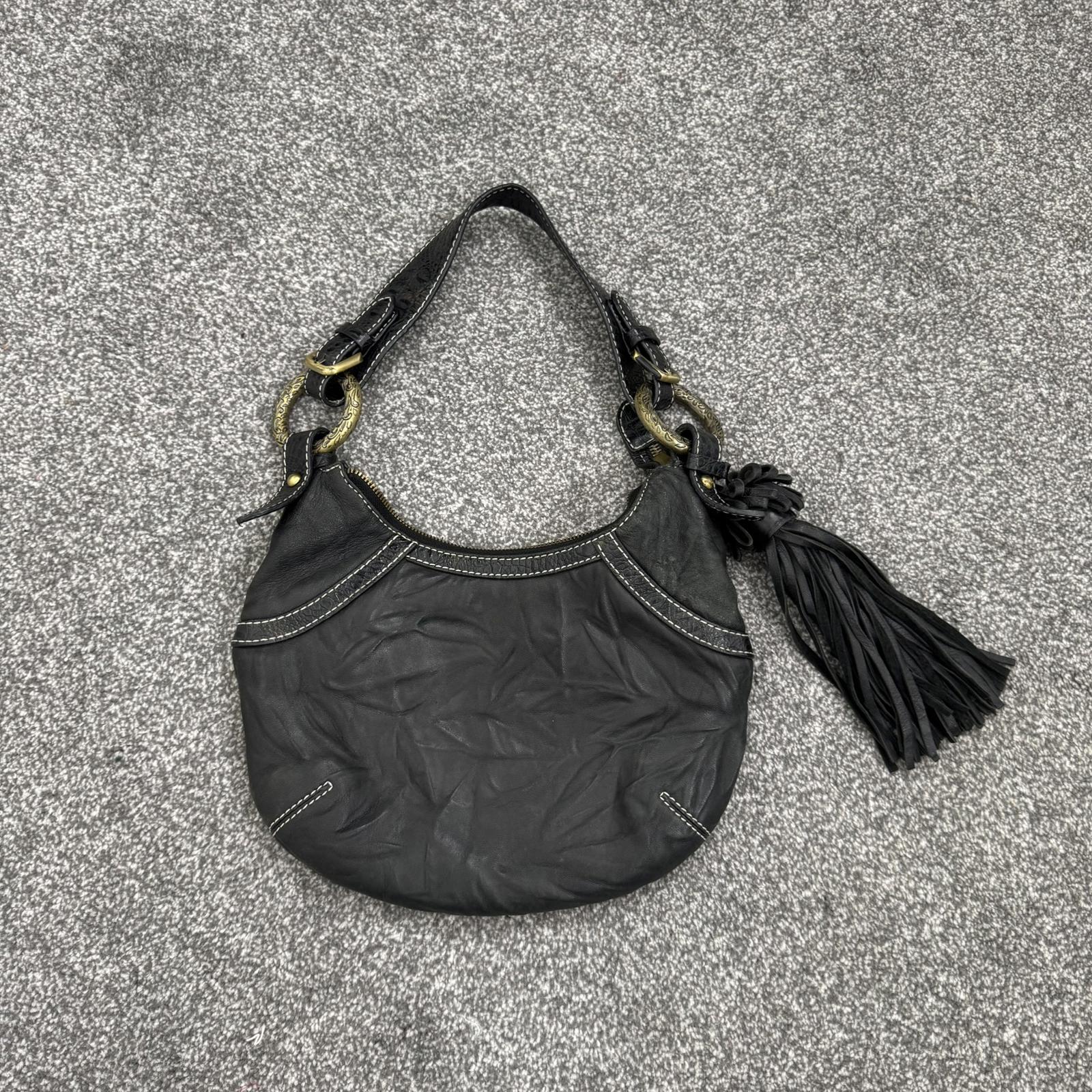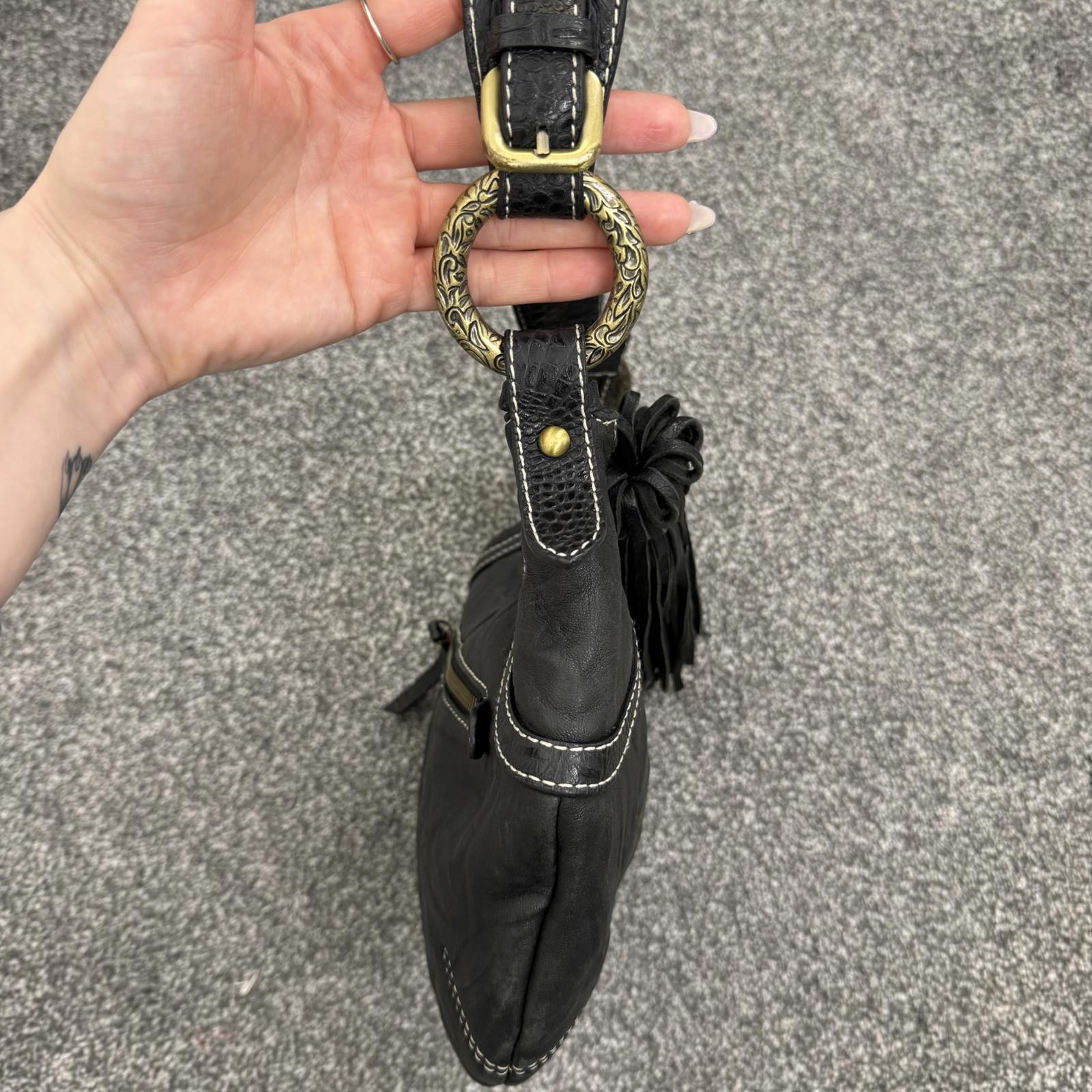 Y2K vintage genuine leather shoulder bag butter soft fringe charm hobo slouchy