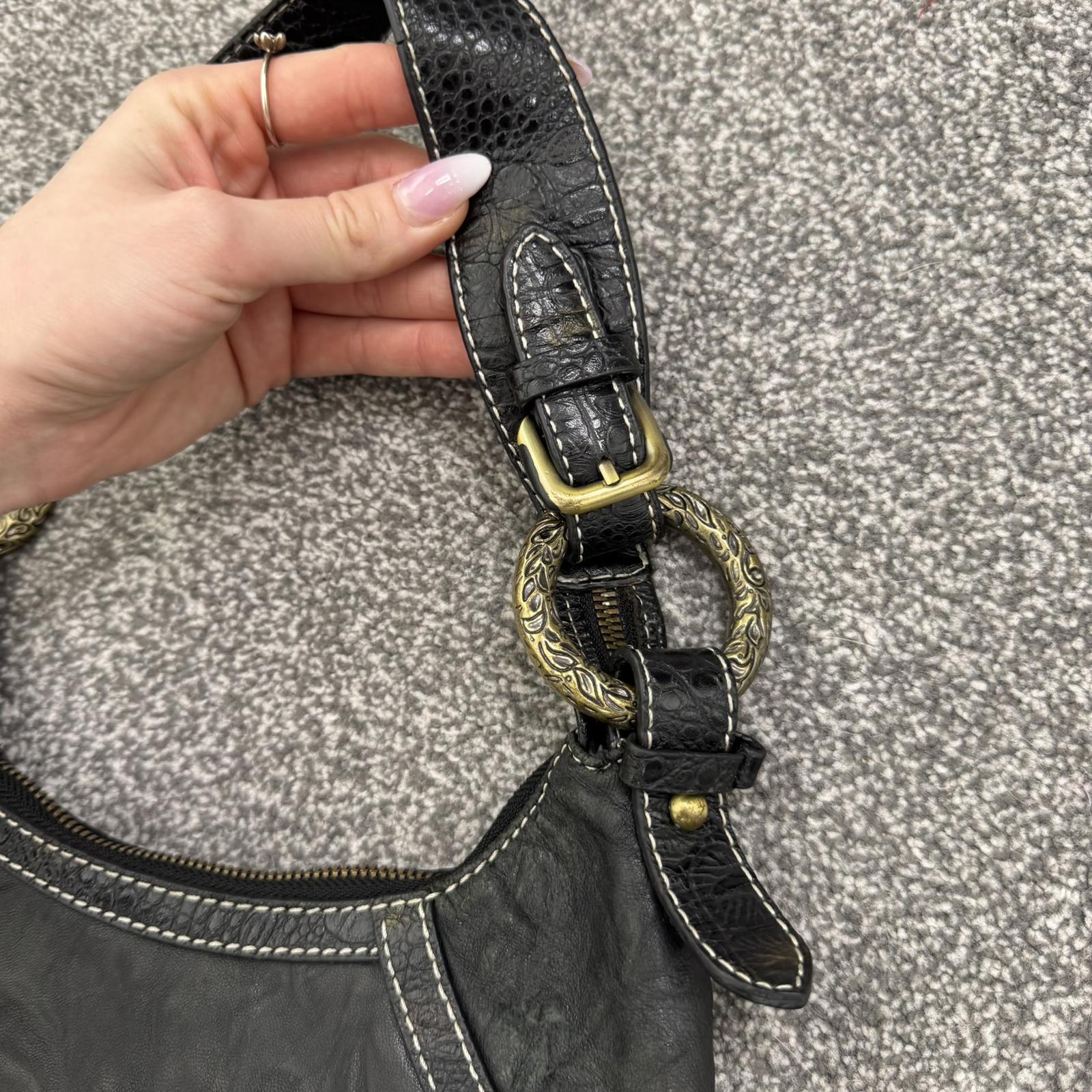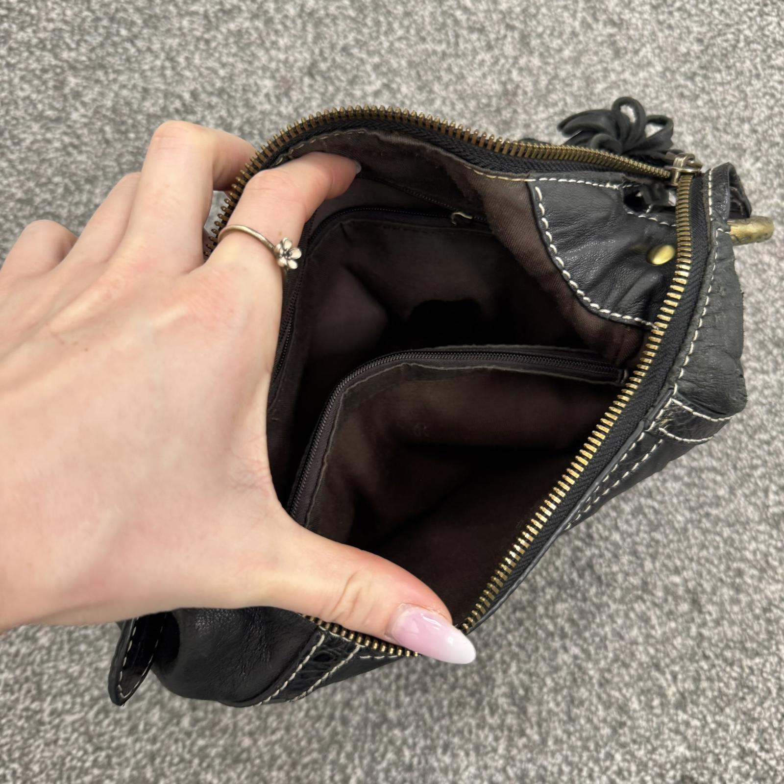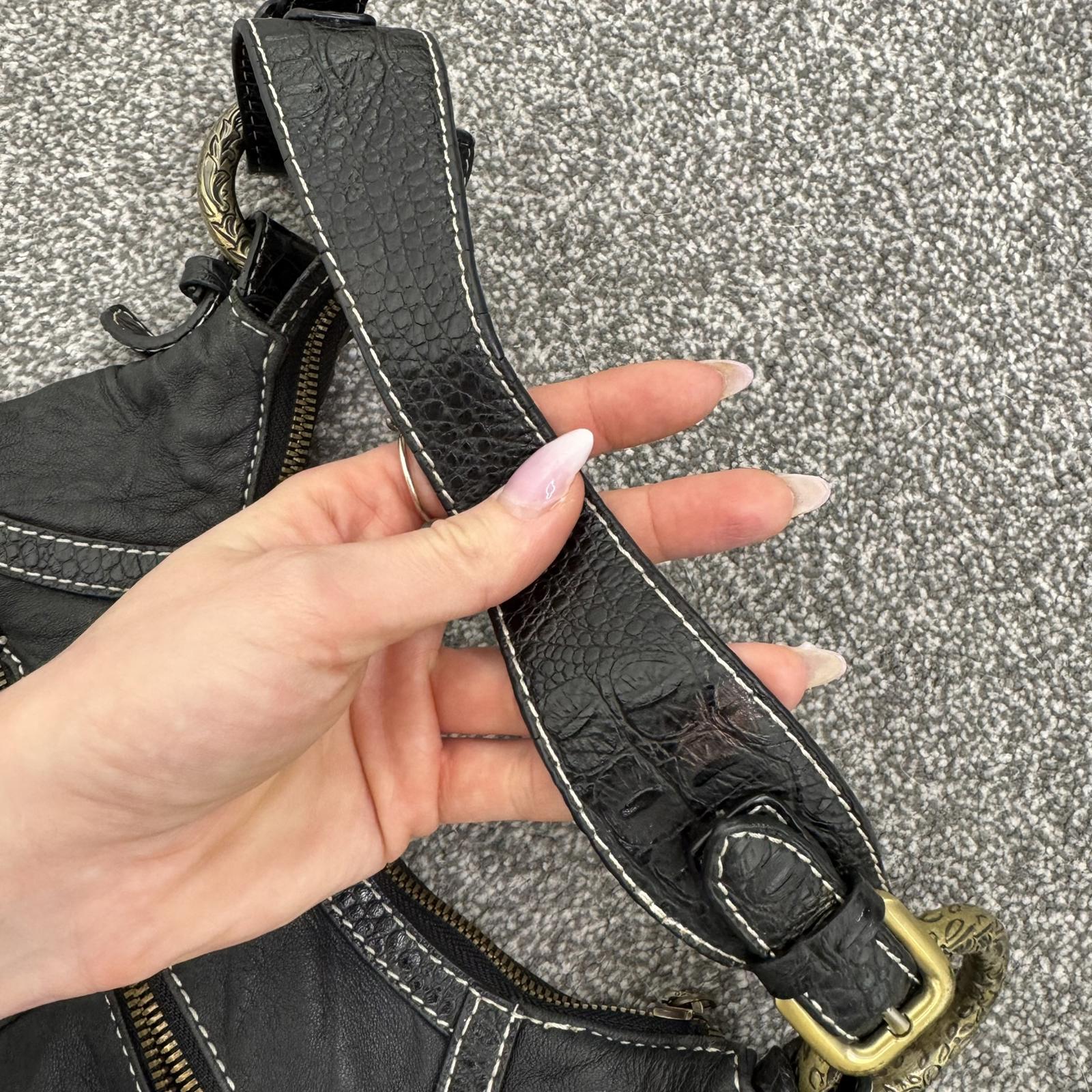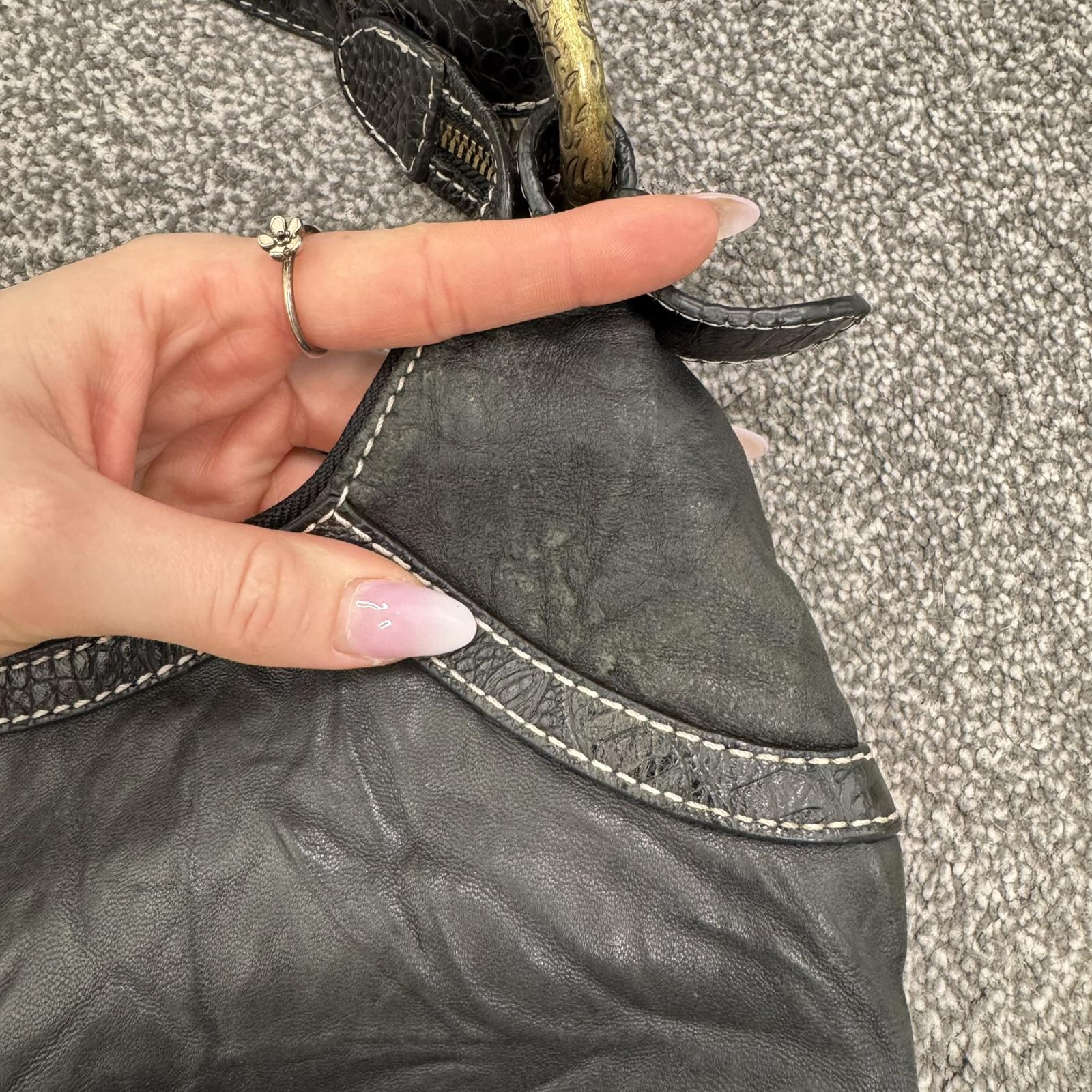 Y2K vintage genuine leather shoulder bag butter soft fringe charm hobo slouchy