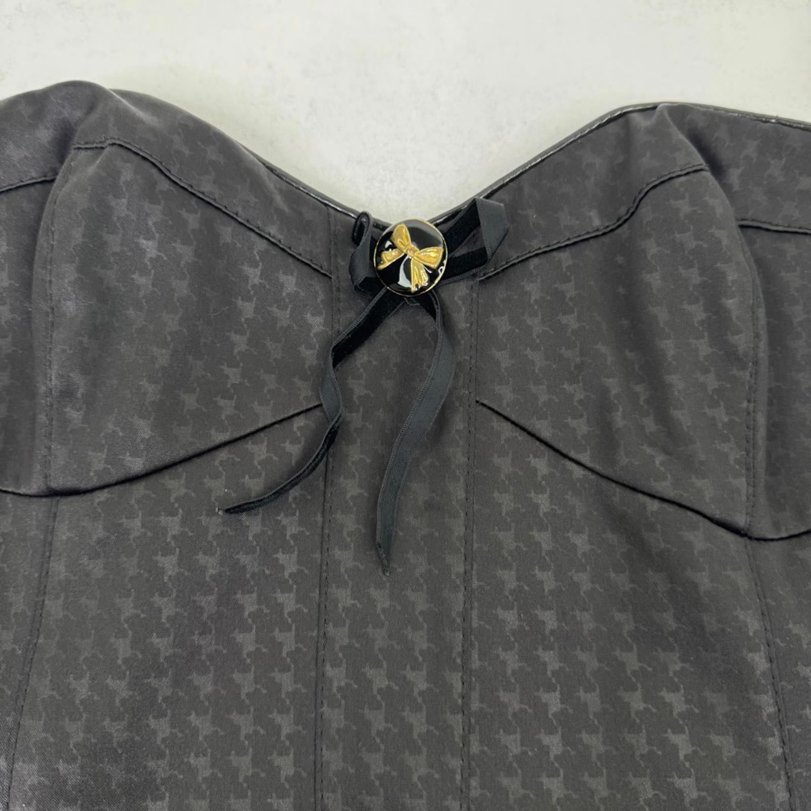 Y2K vintage houndstooth bustier top bow strapless fitted black gold