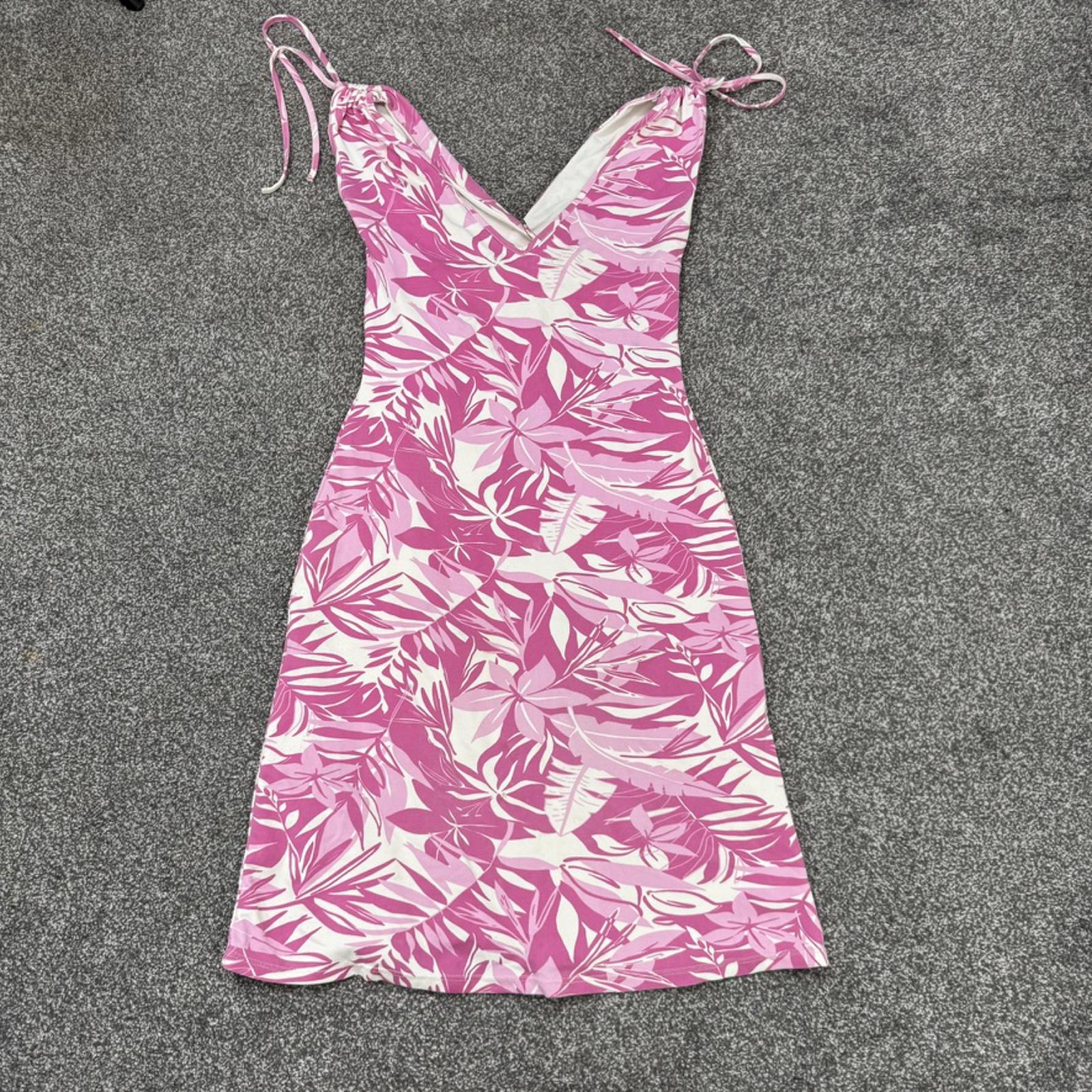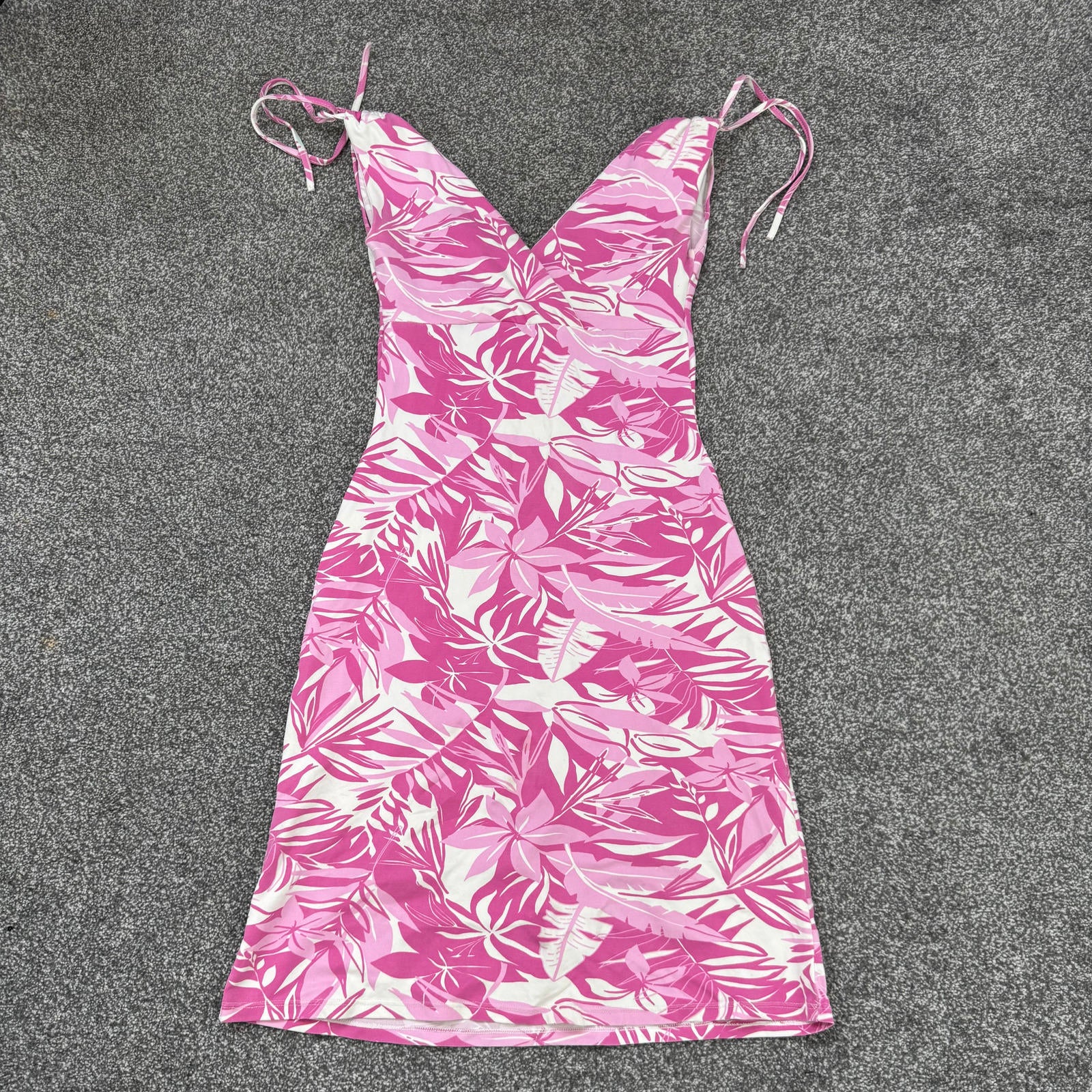 Y2K vintage Jane Norman mini dress palm tree fitted bows white pink
