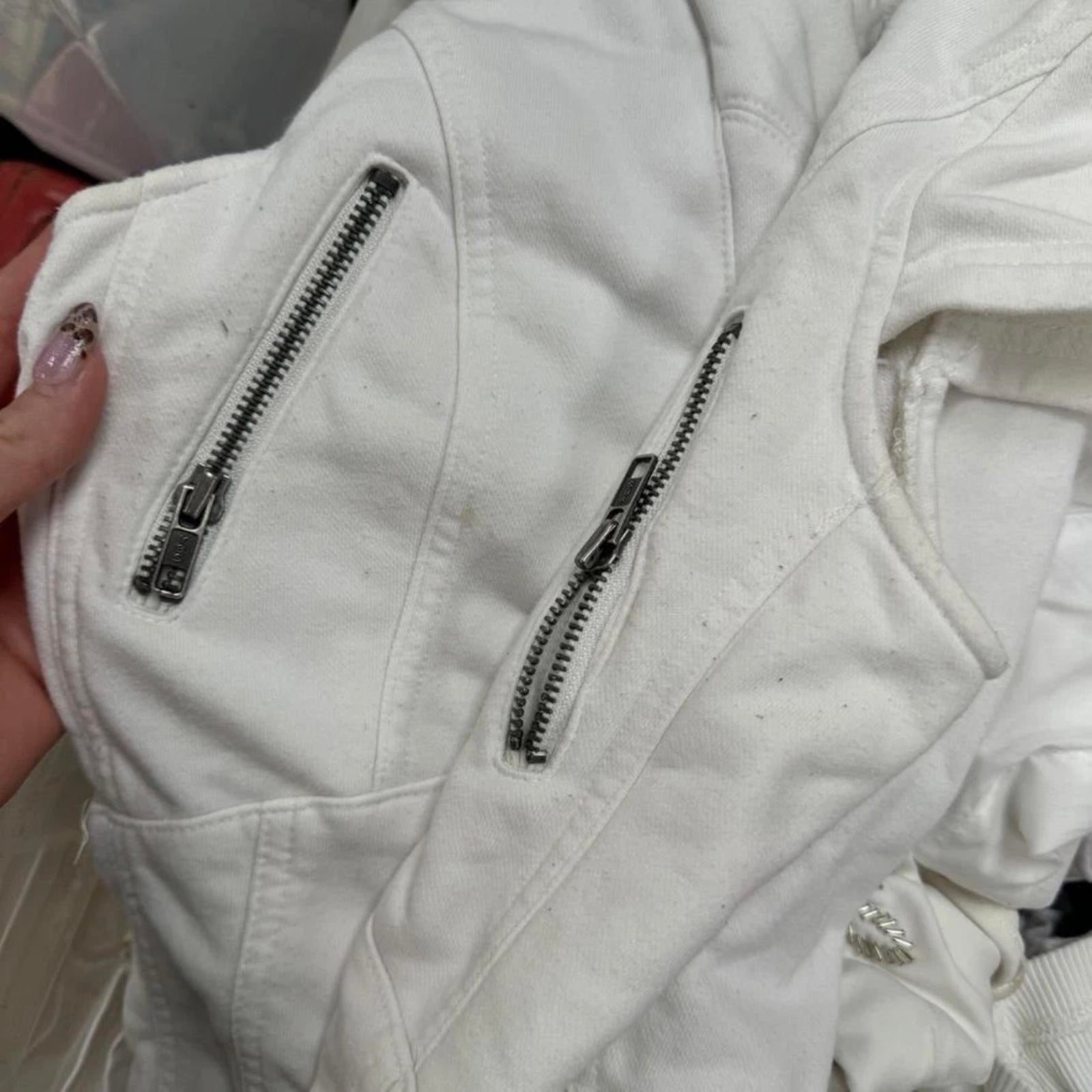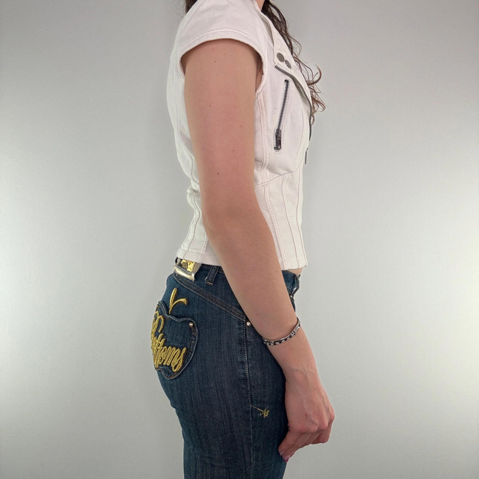 Y2K vintage Jane Norman zip up cap short sleeve jacket v neck zipper fitted