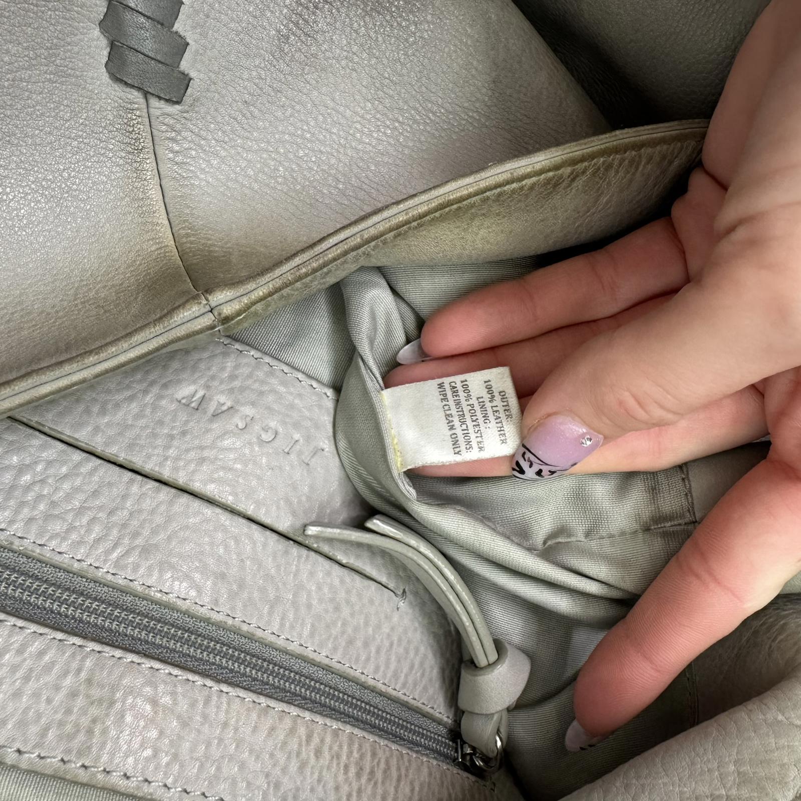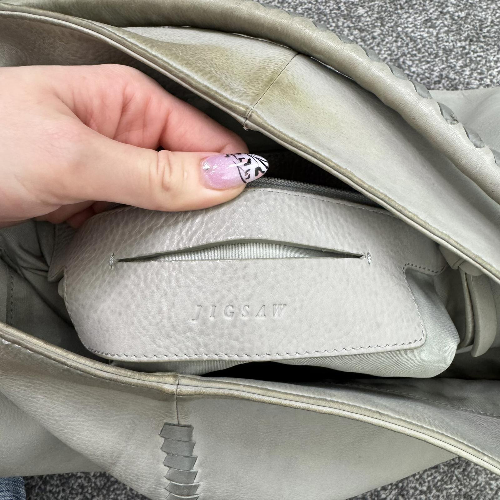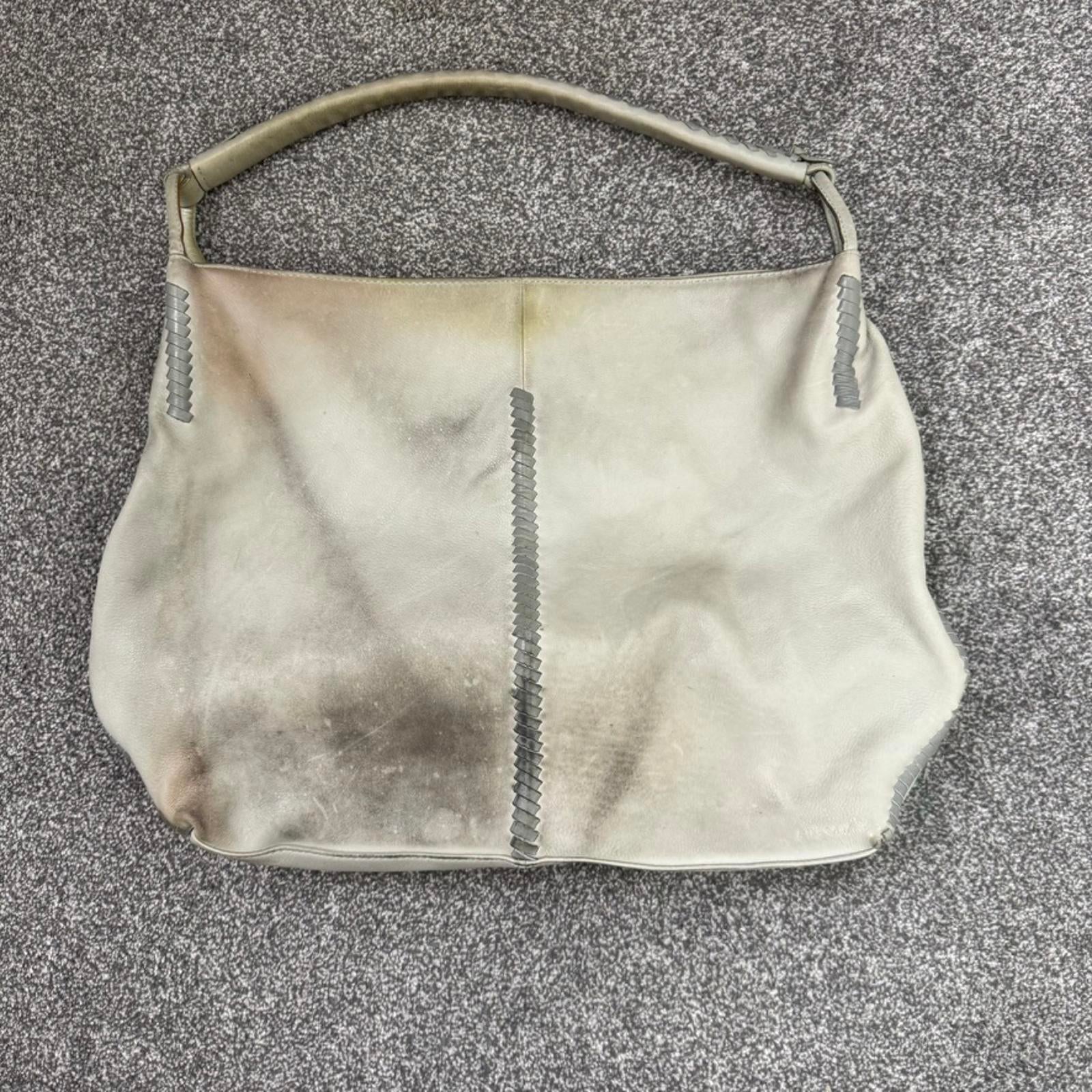 Y2K vintage Jigsaw genuine leather slouchy hobo shoulder bag braided large grey