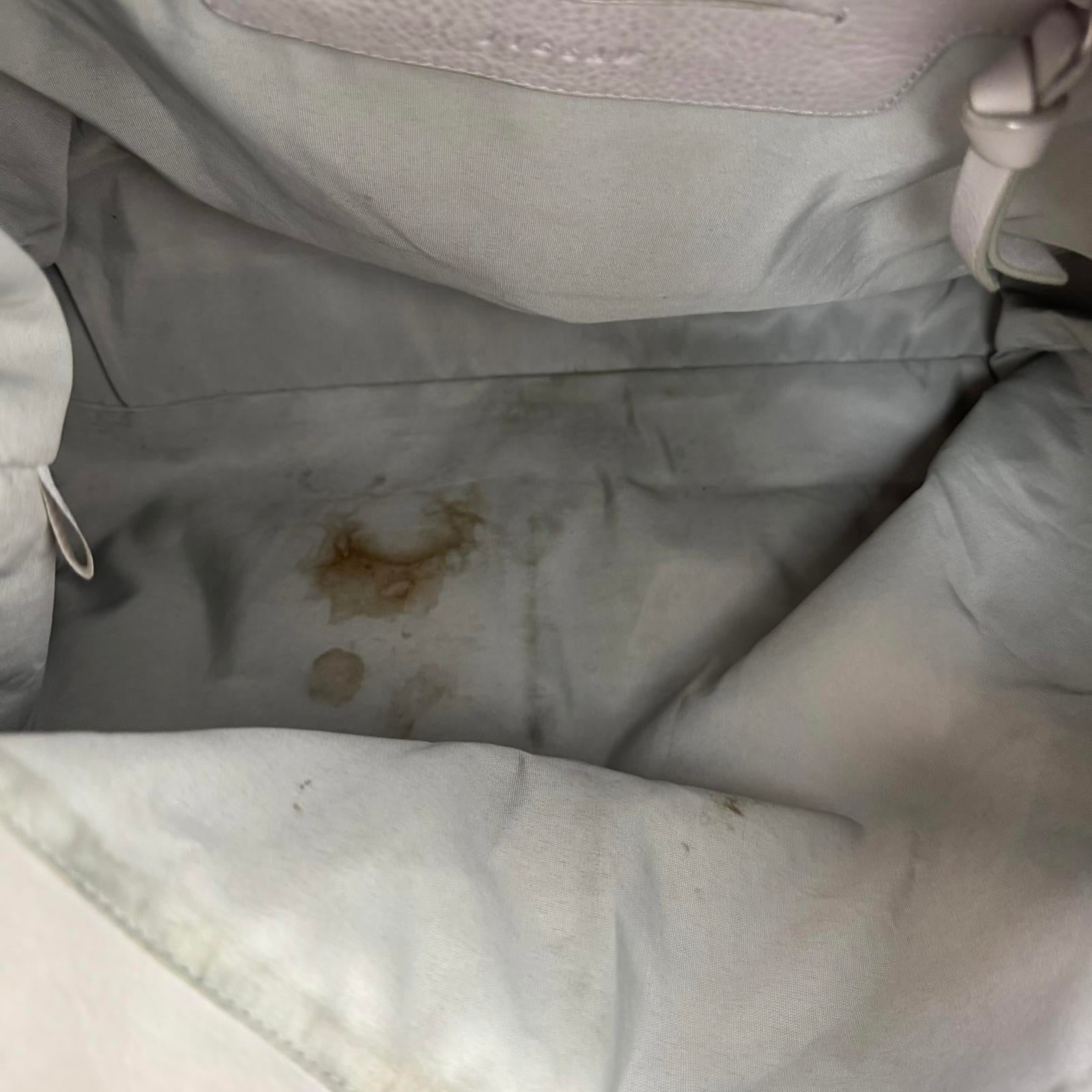 Heavily stained leather, some marks inside bag