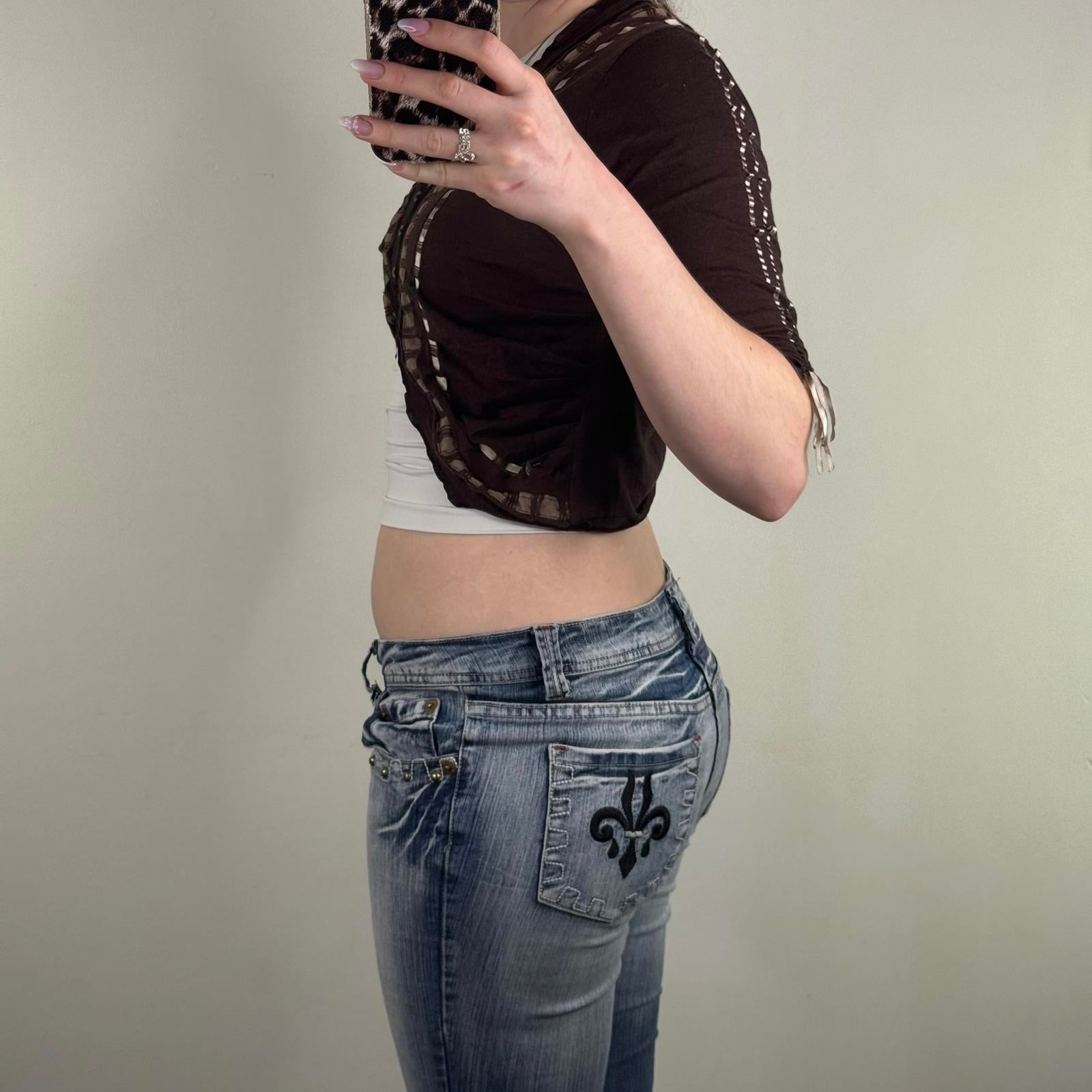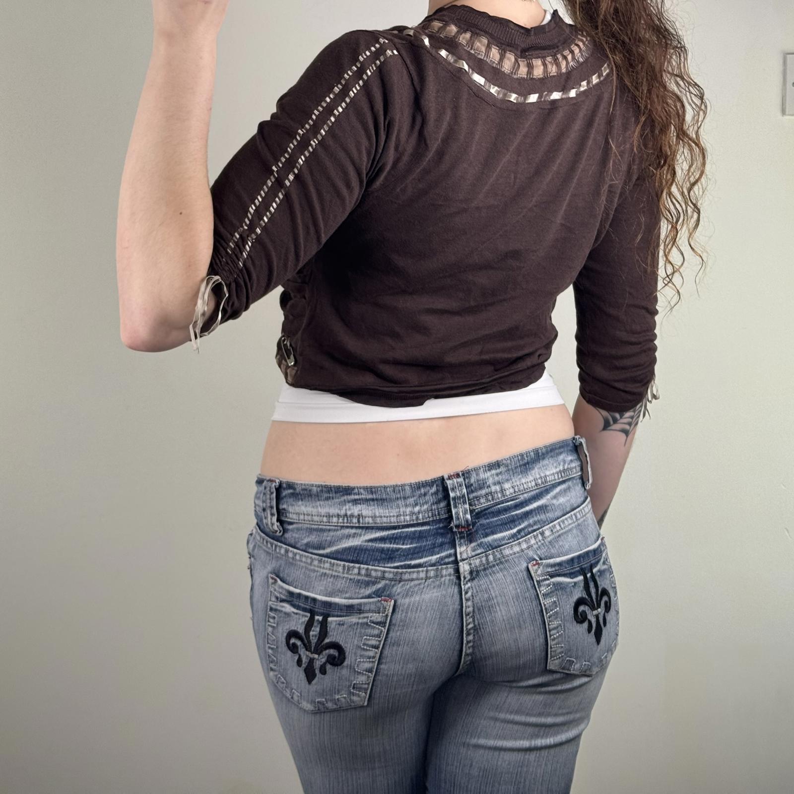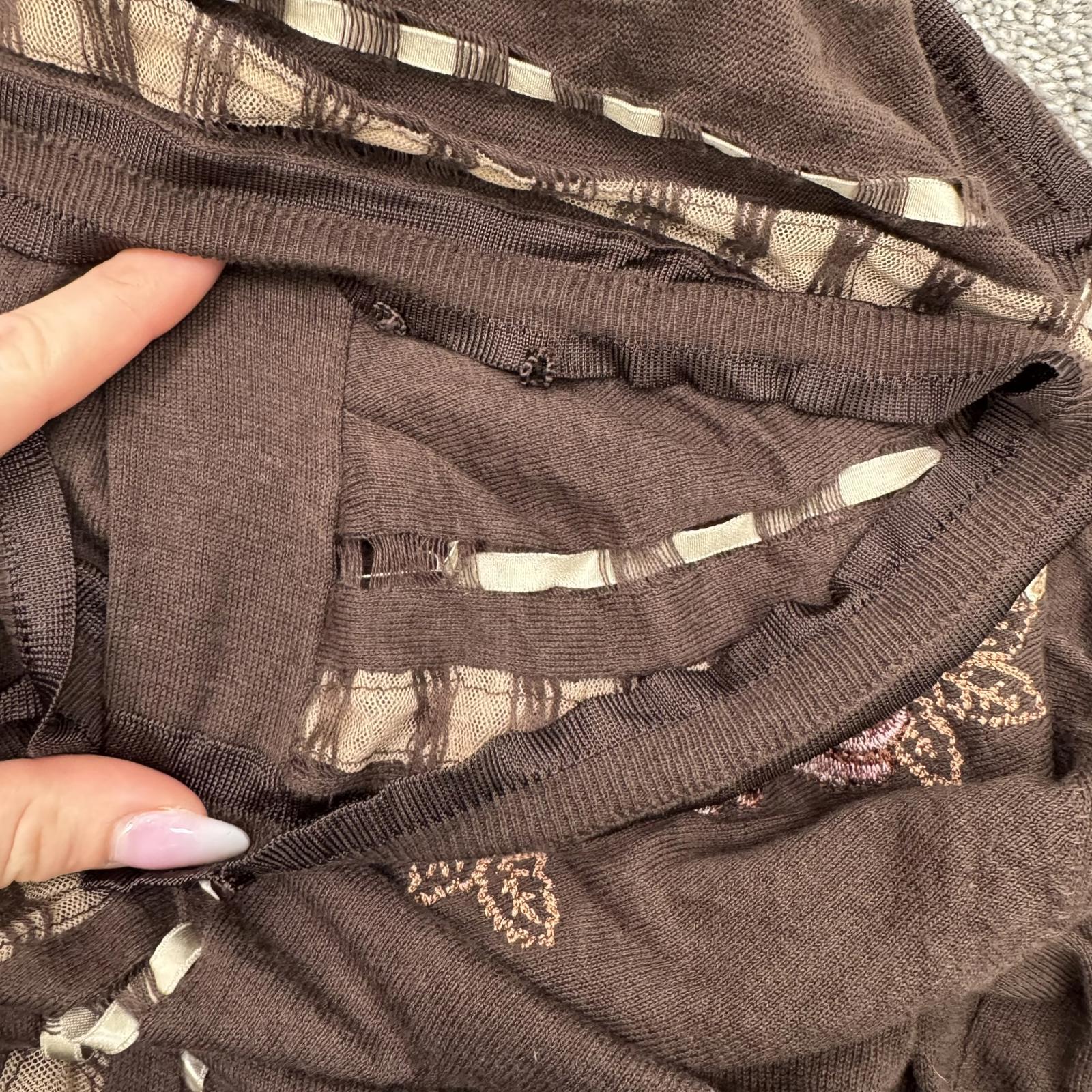 Y2K vintage Karen Millen cropped cardigan 3/4 sleeve ribbon floral embroidered