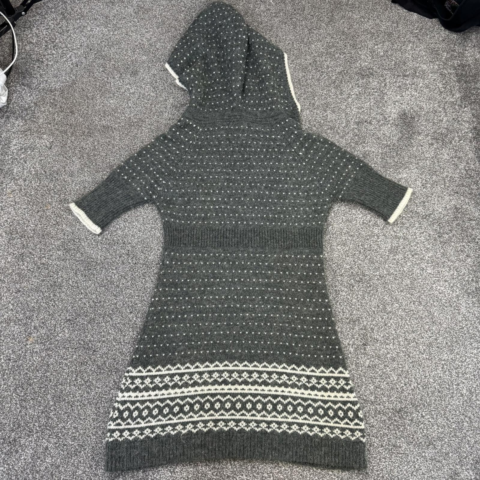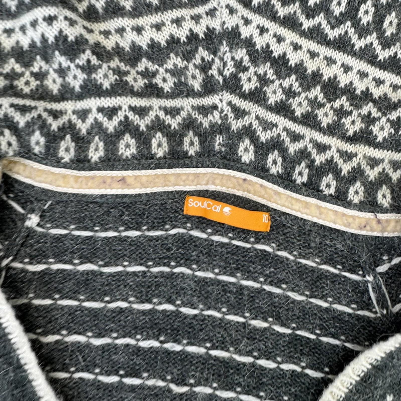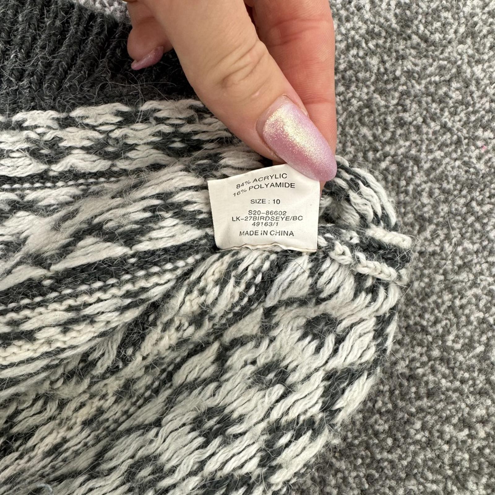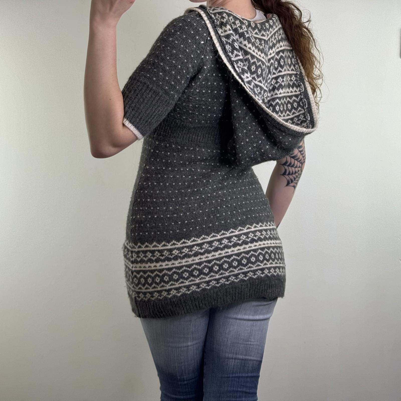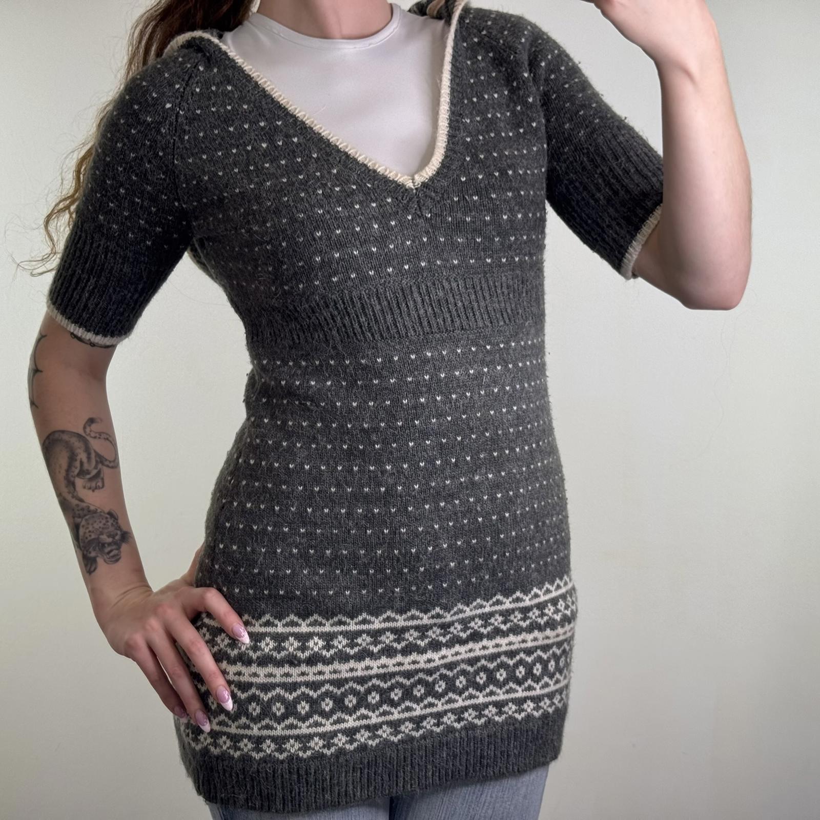 Y2K vintage knitted hoodie short sleeve aztec pattern v neck grey white