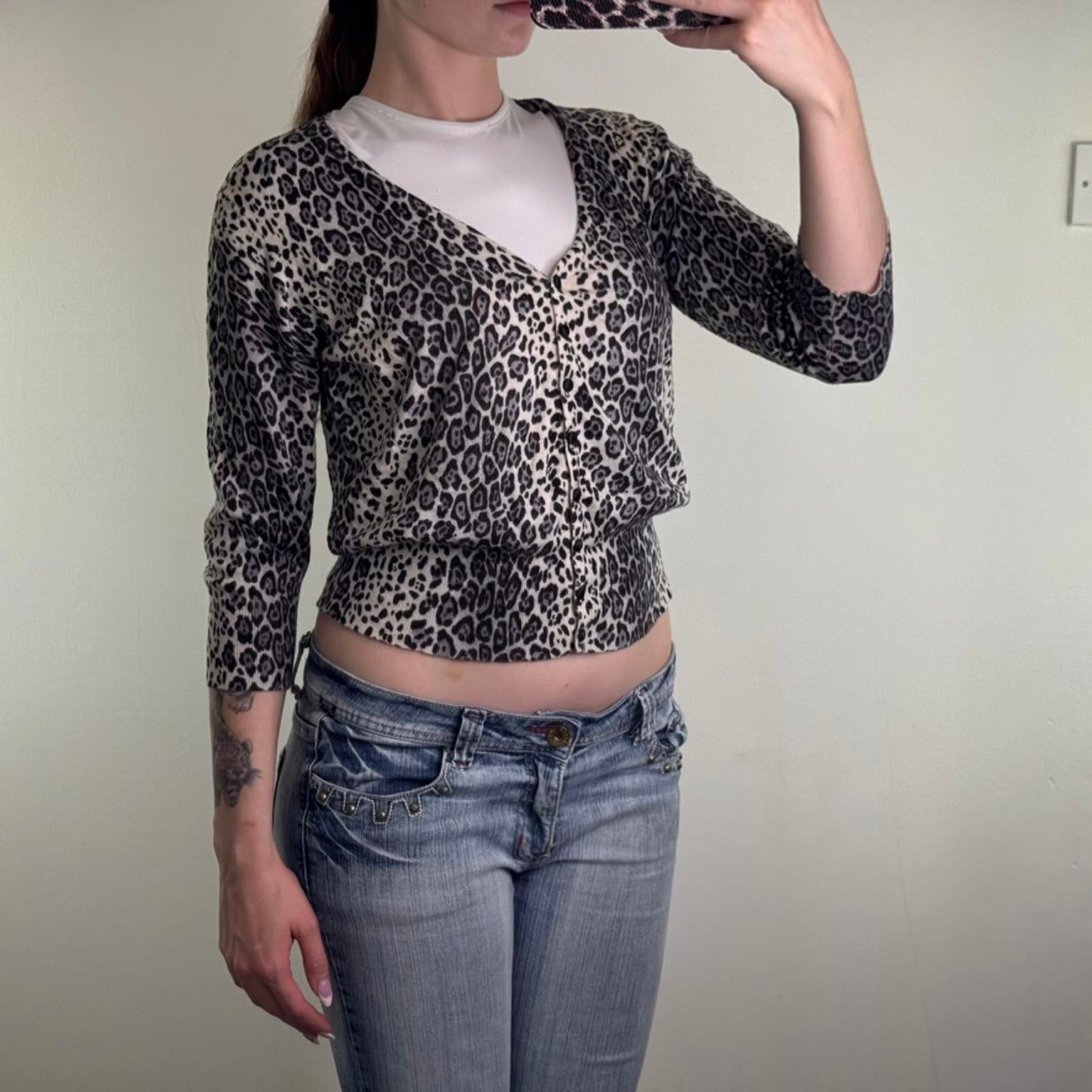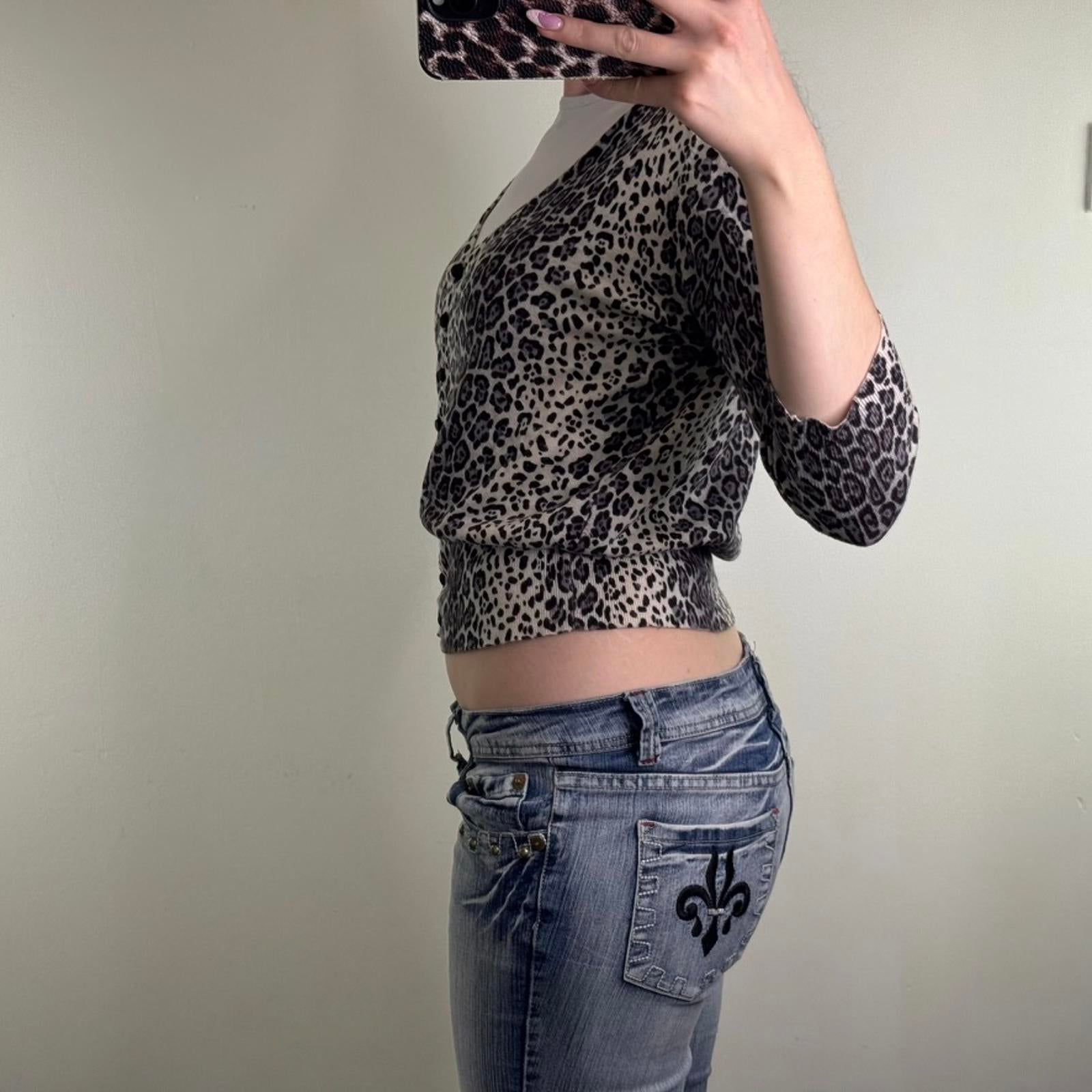 Y2K vintage leopard print fine knit button up cardigan grey black
