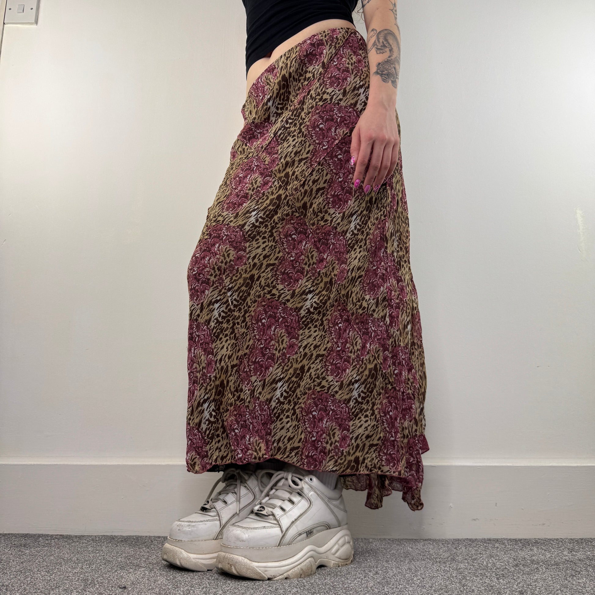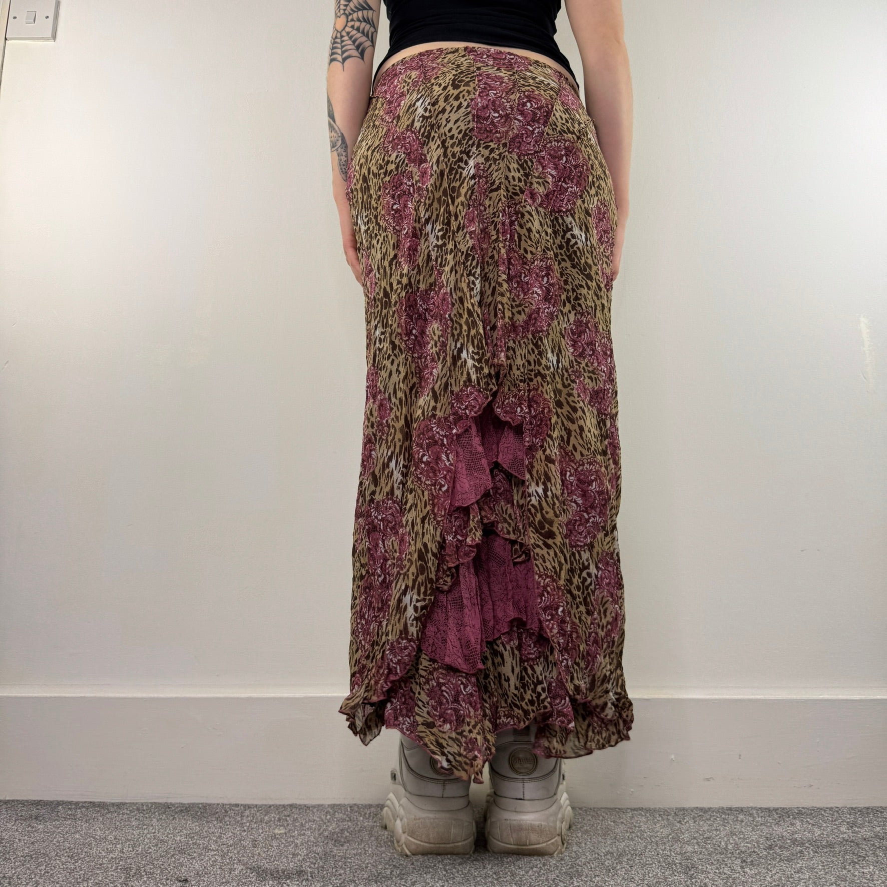 Elastic waistband, leopard print with floral lace design, tiered ruffle back