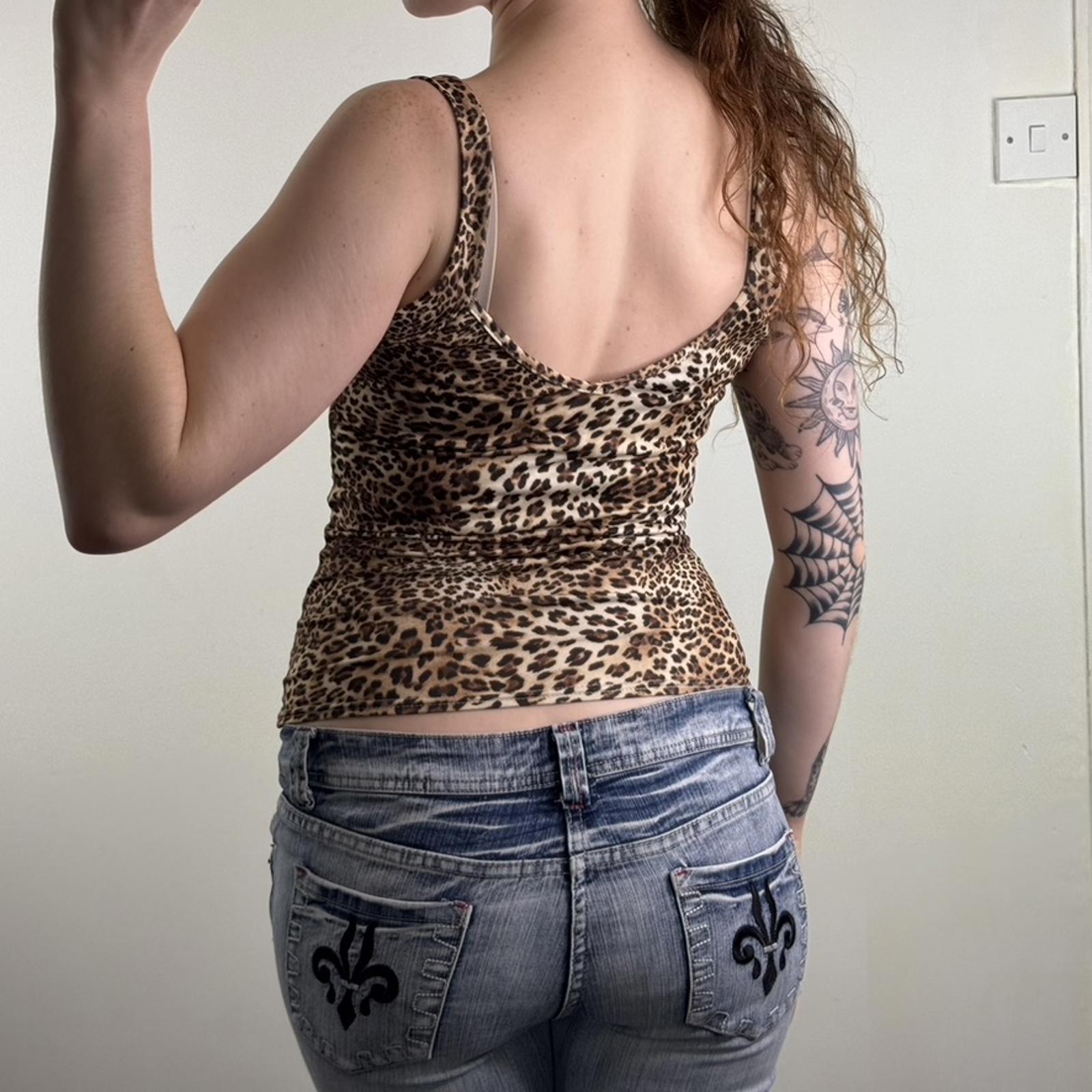 Y2K vintage leopard print tank top stretchy fitted low neckline open back