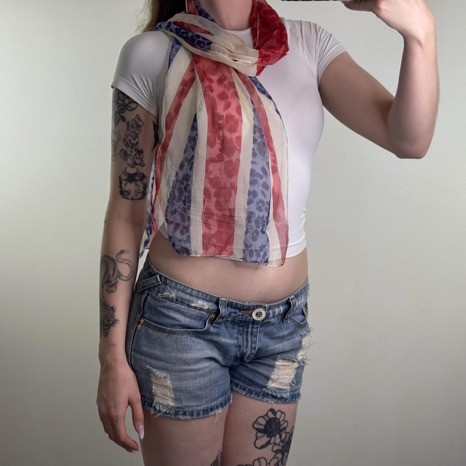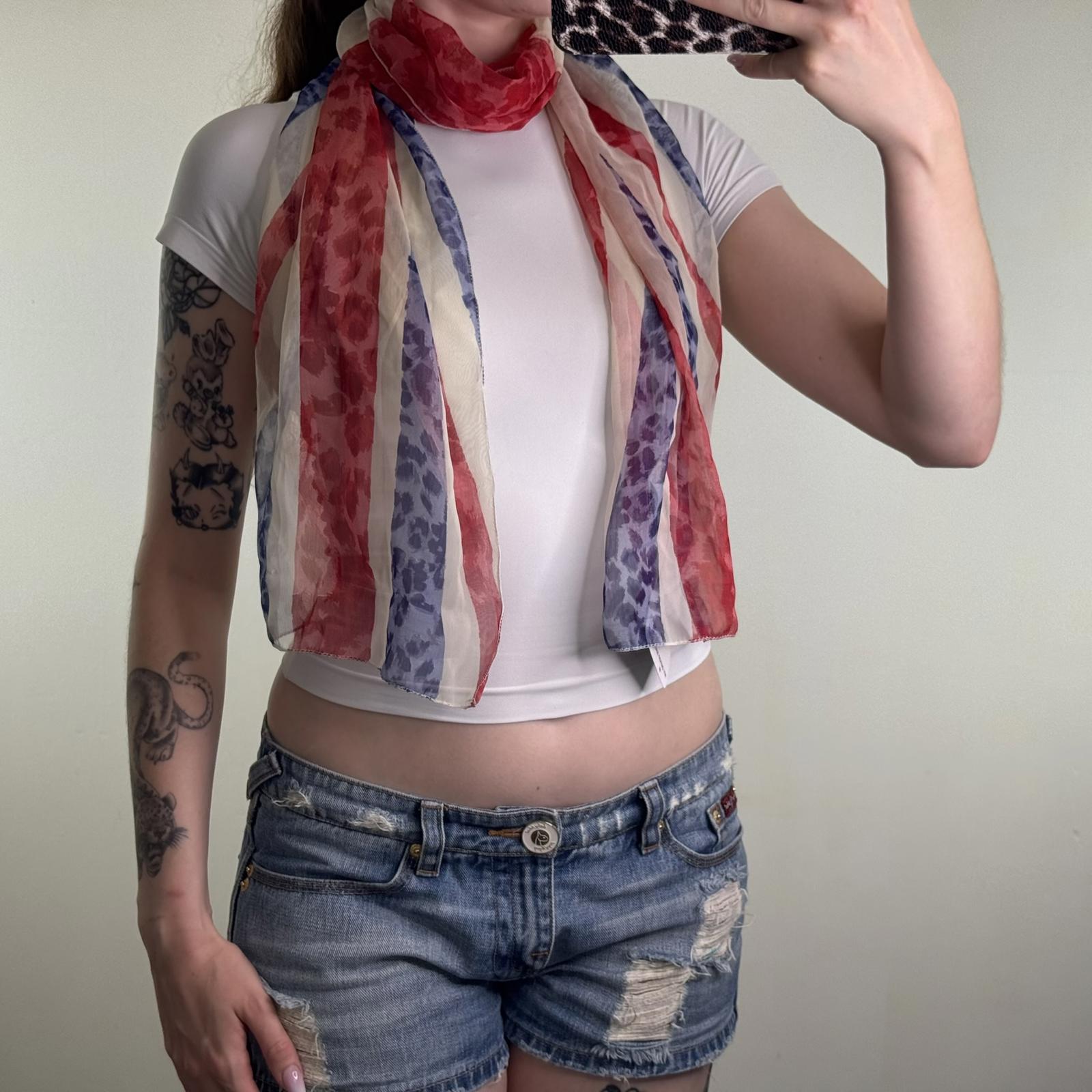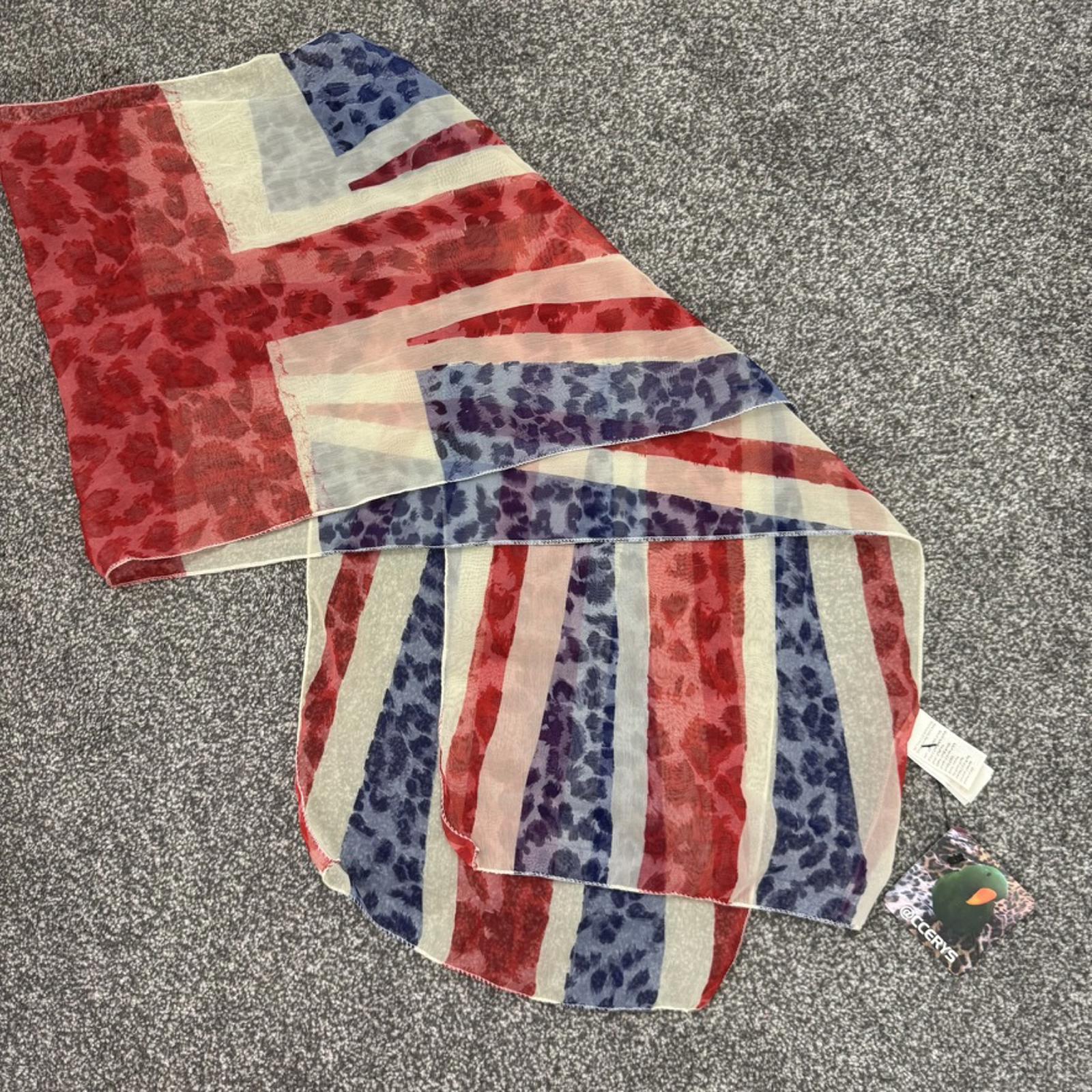 Y2K vintage leopard print Union Jack scarf sheer lightweight