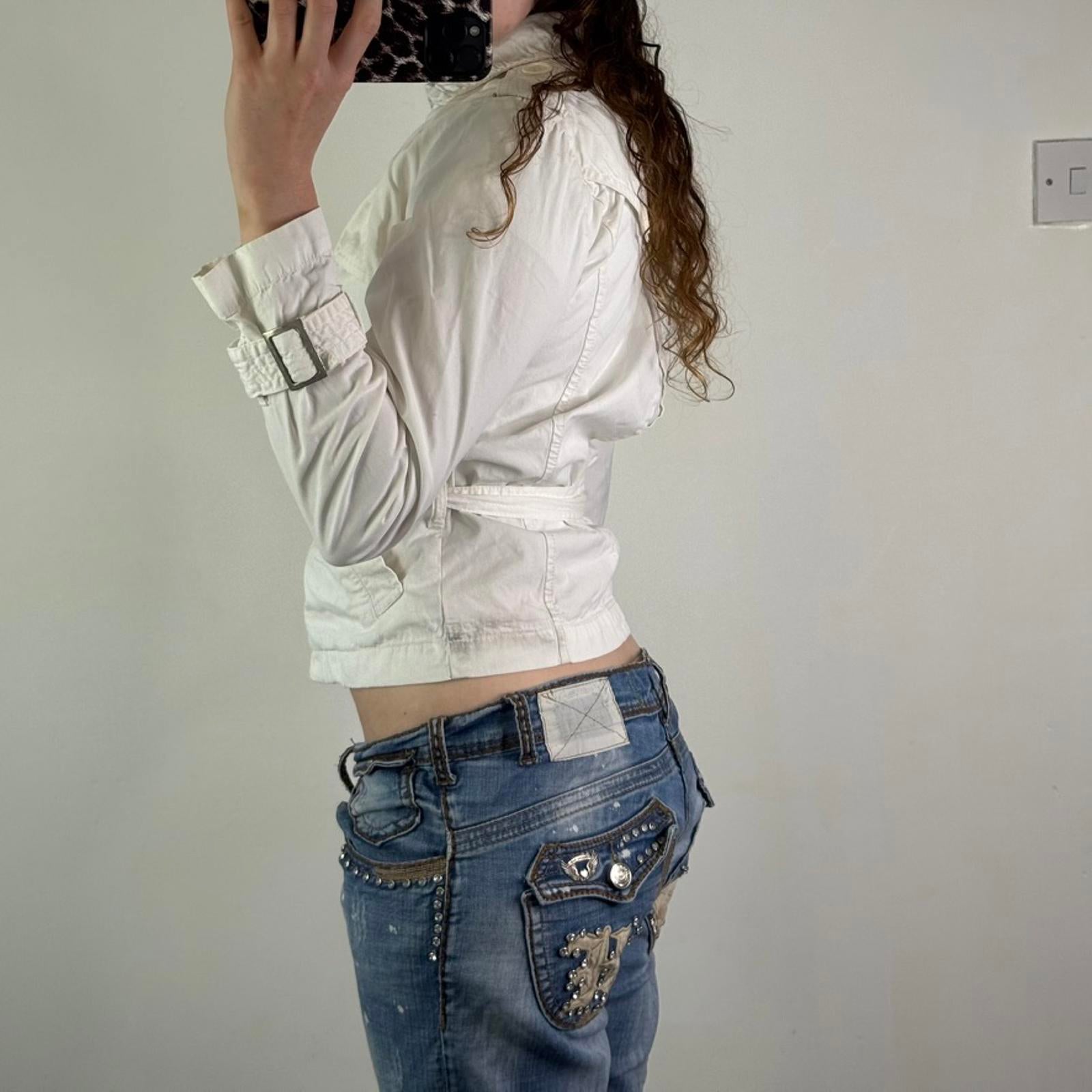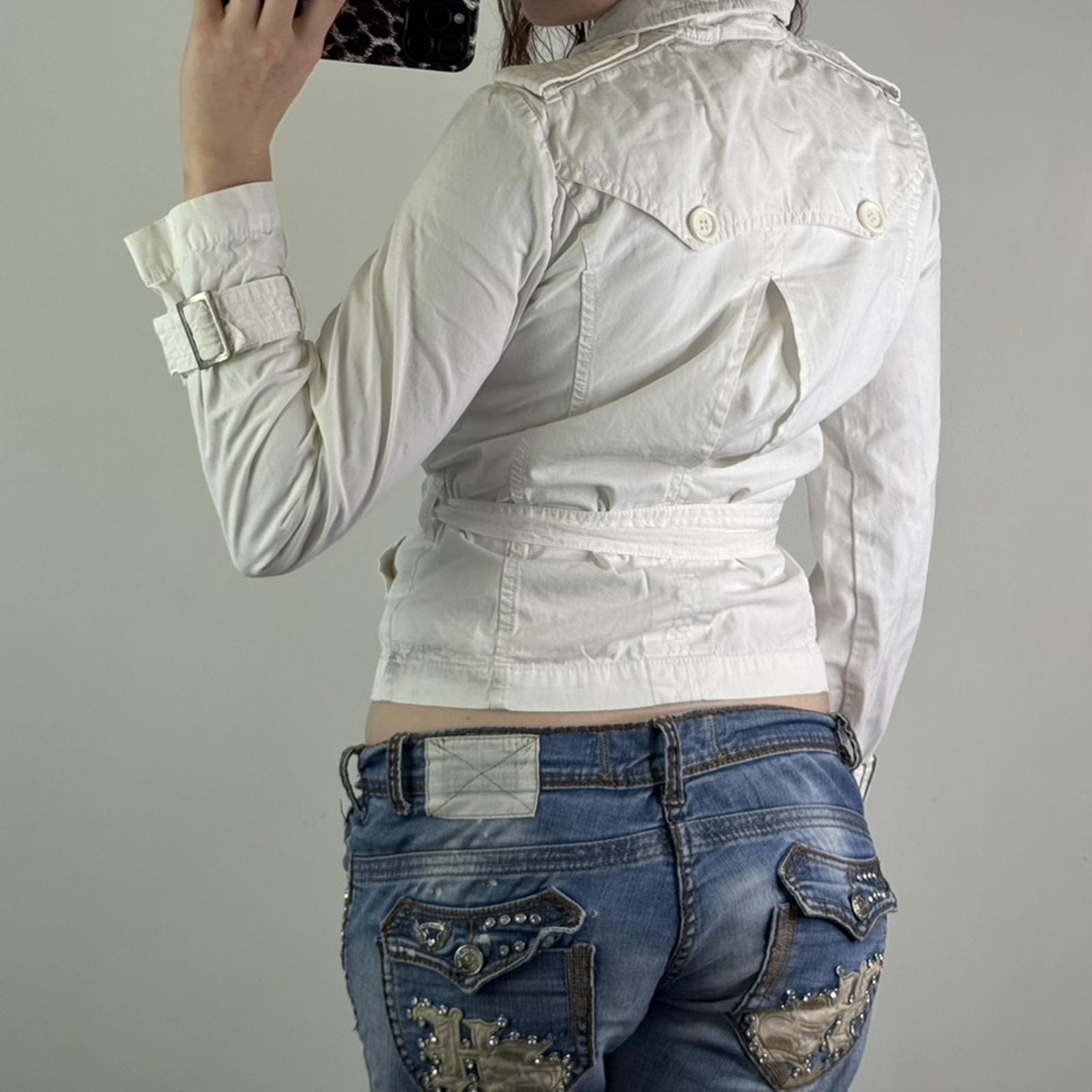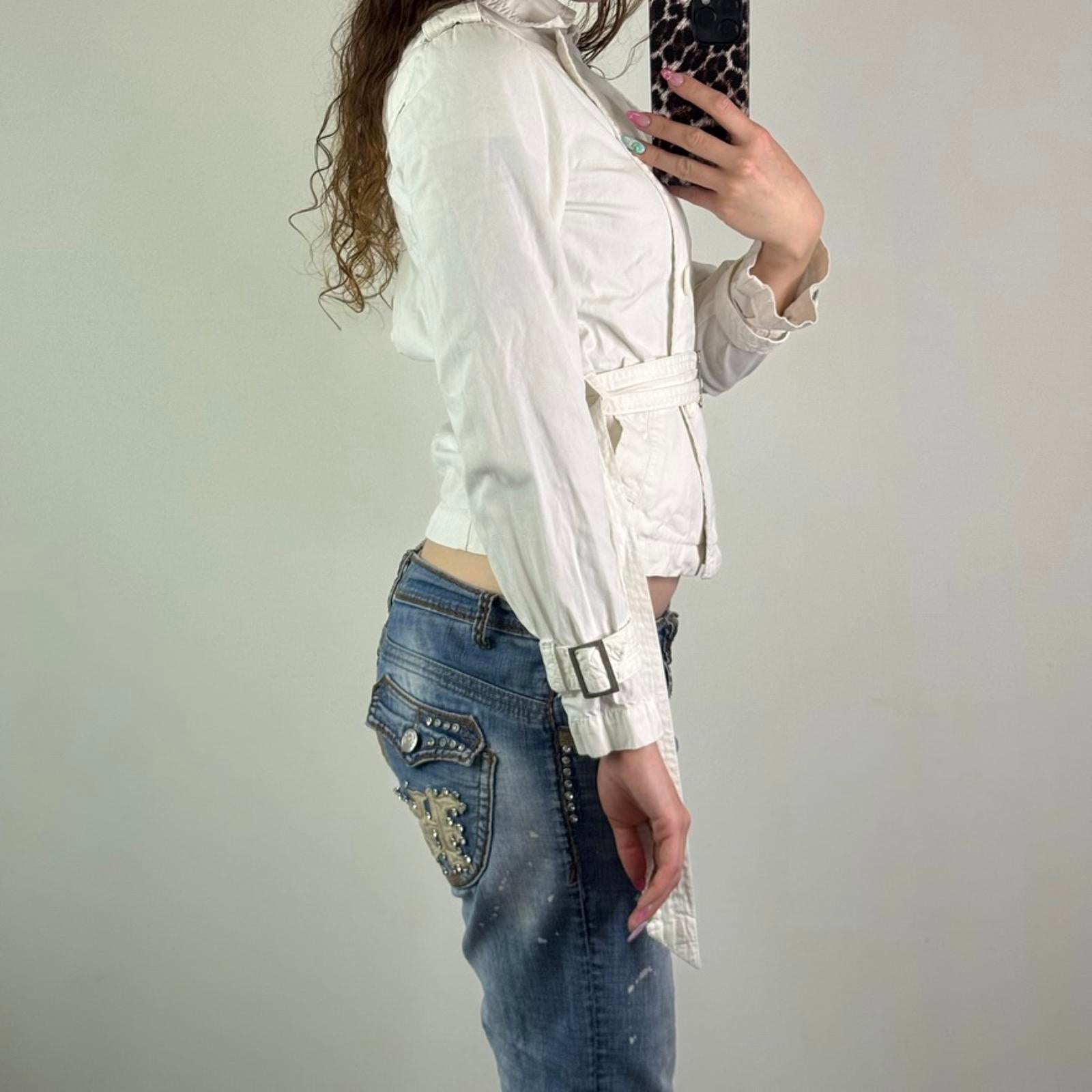 Y2K vintage lightweight button up jacket with belt short trench fitted high neck