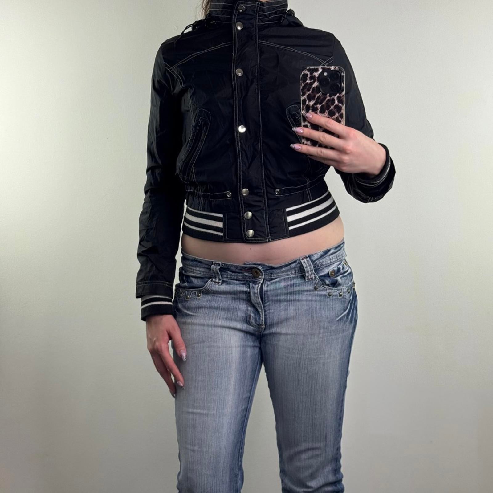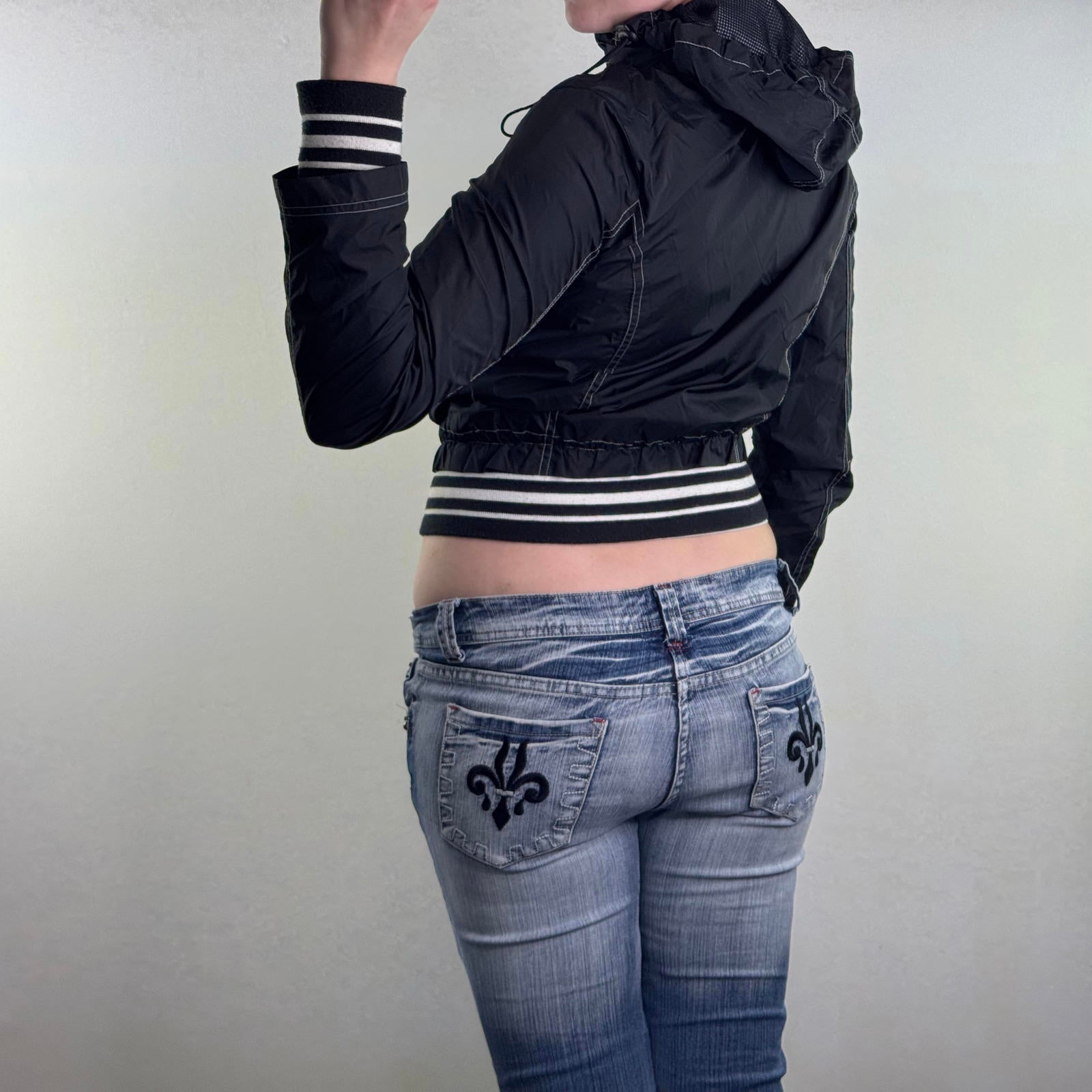 Y2K vintage lightweight zip up jacket slight crop with hood stripe bomber