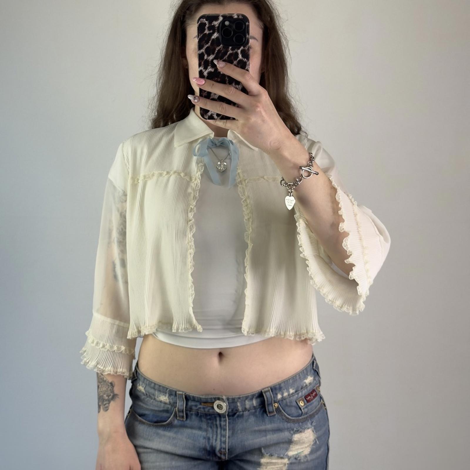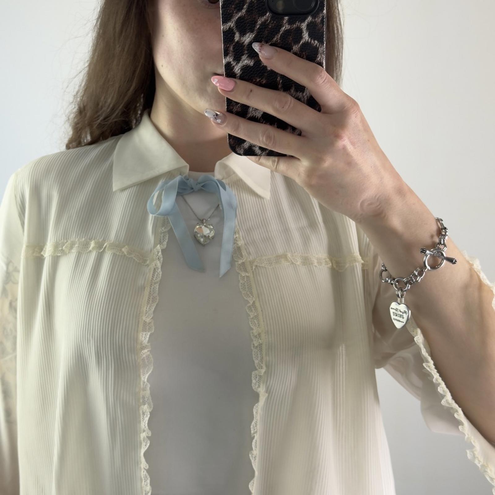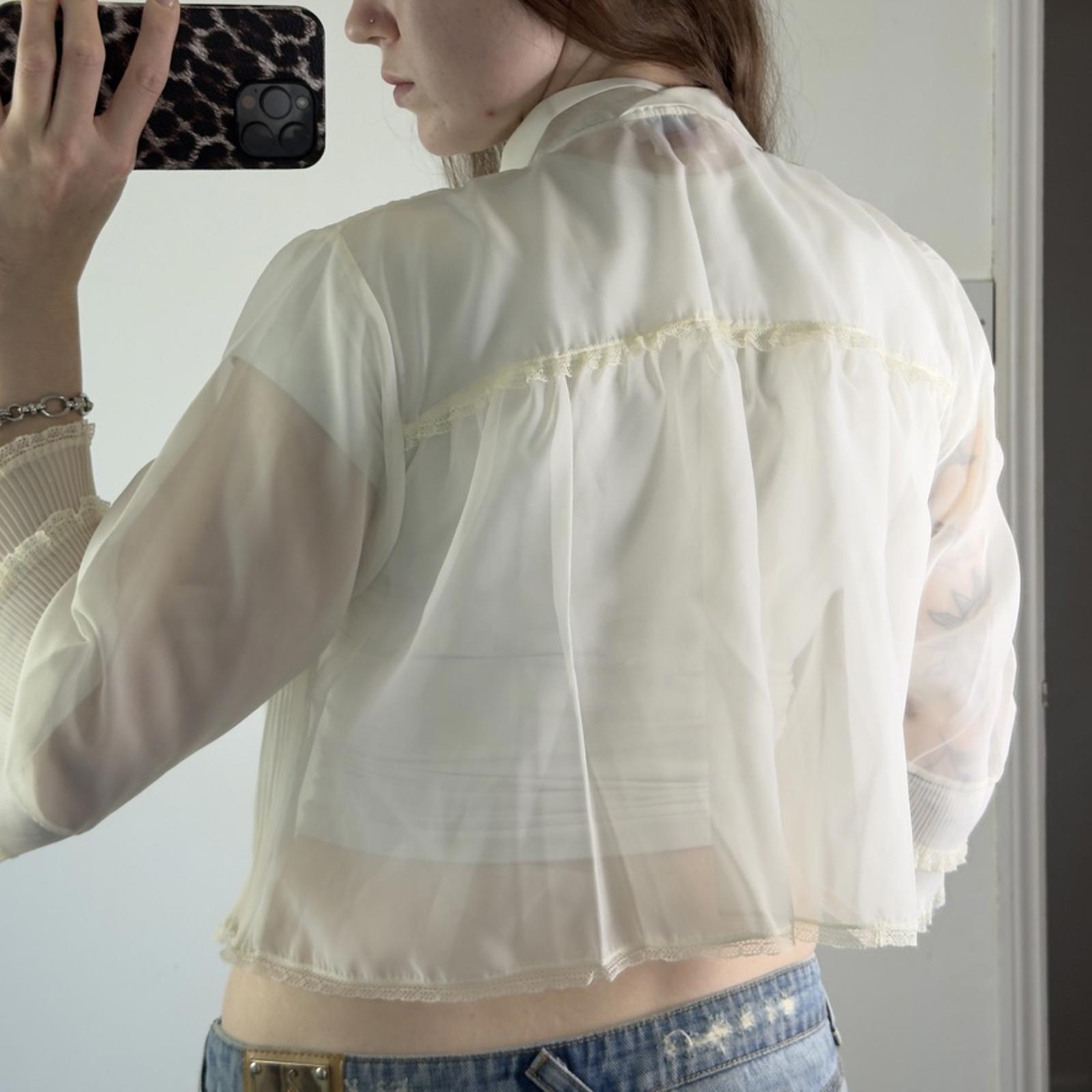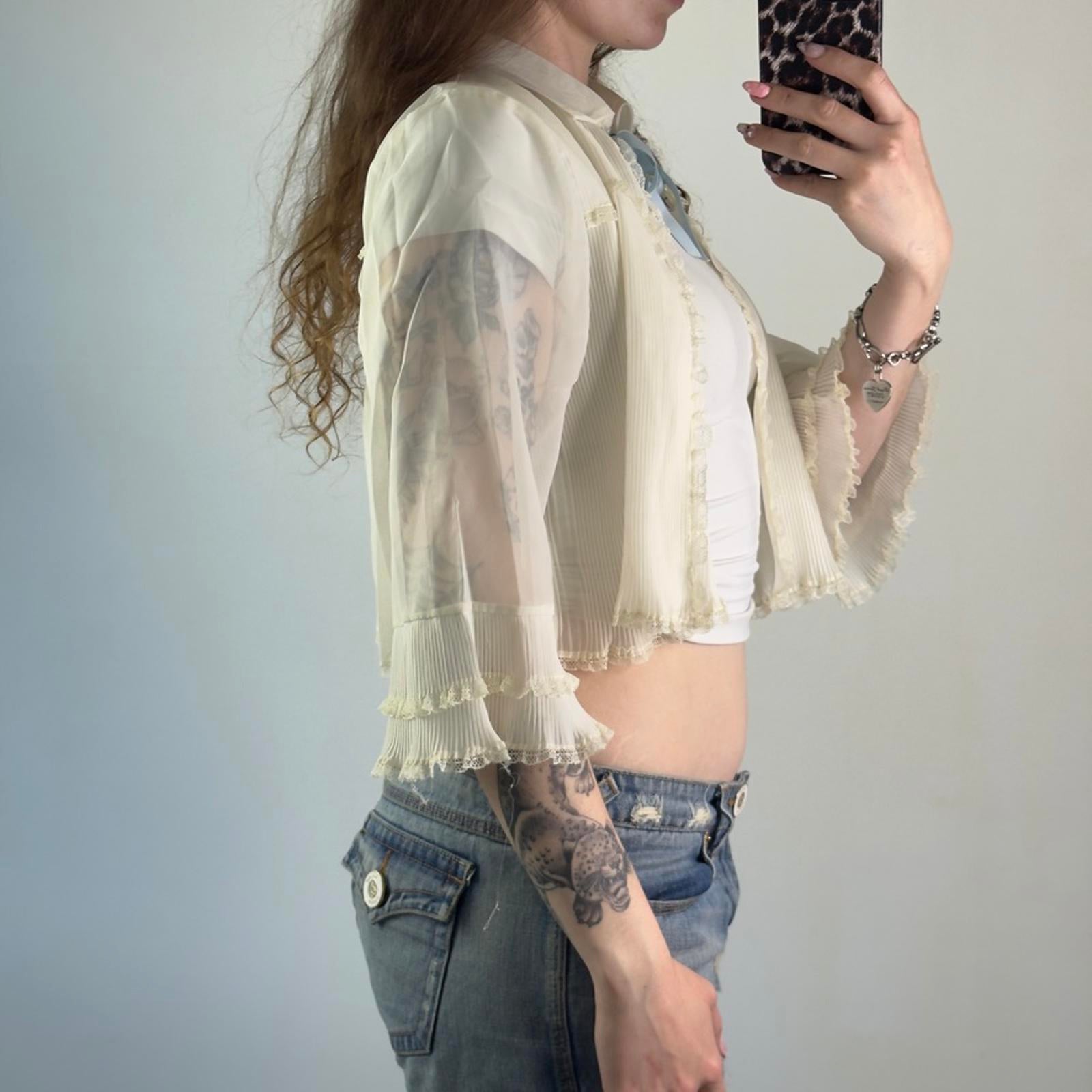 Y2K vintage lingerie bed night cardigan sheer frilly bow flare sleeve coquette