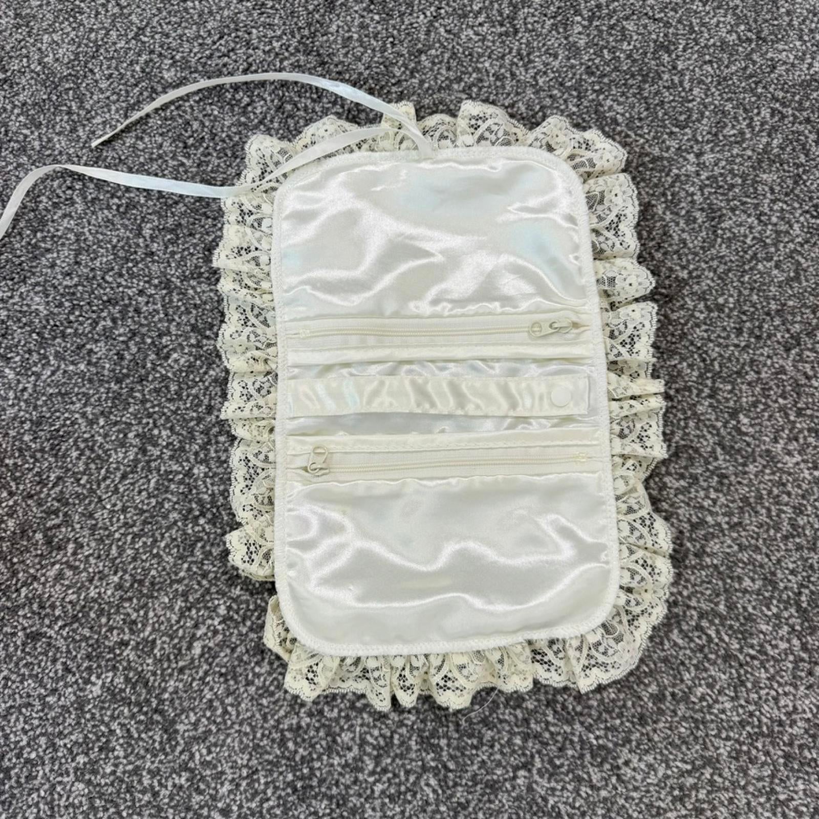 Y2K vintage makeup bag cream frilly rose travel jewelry storage bag