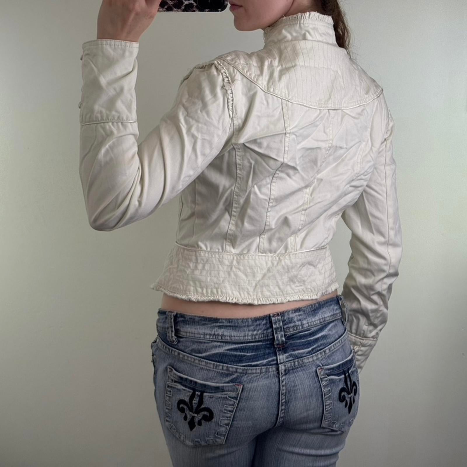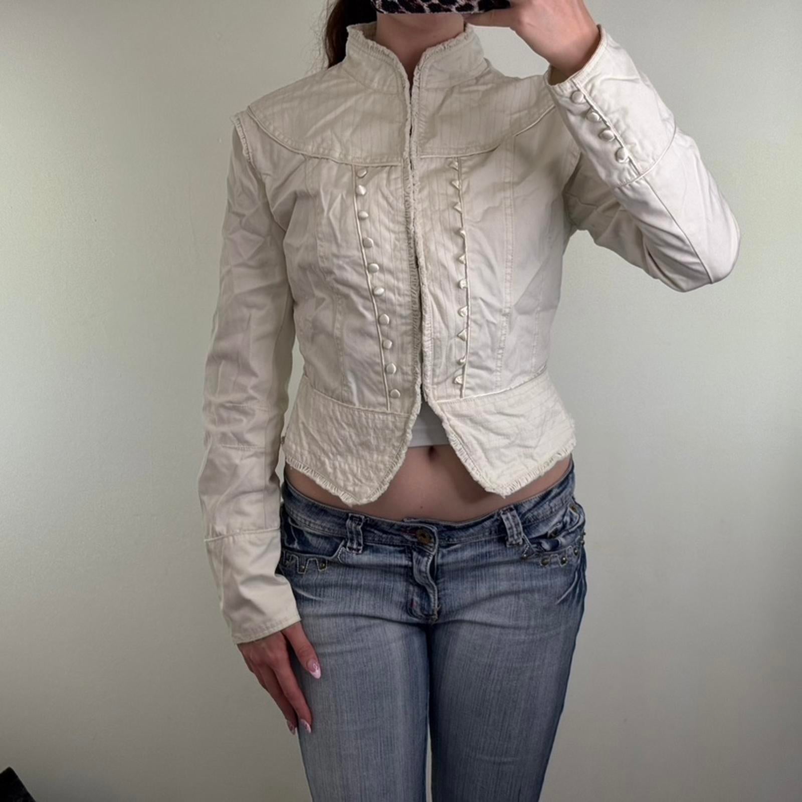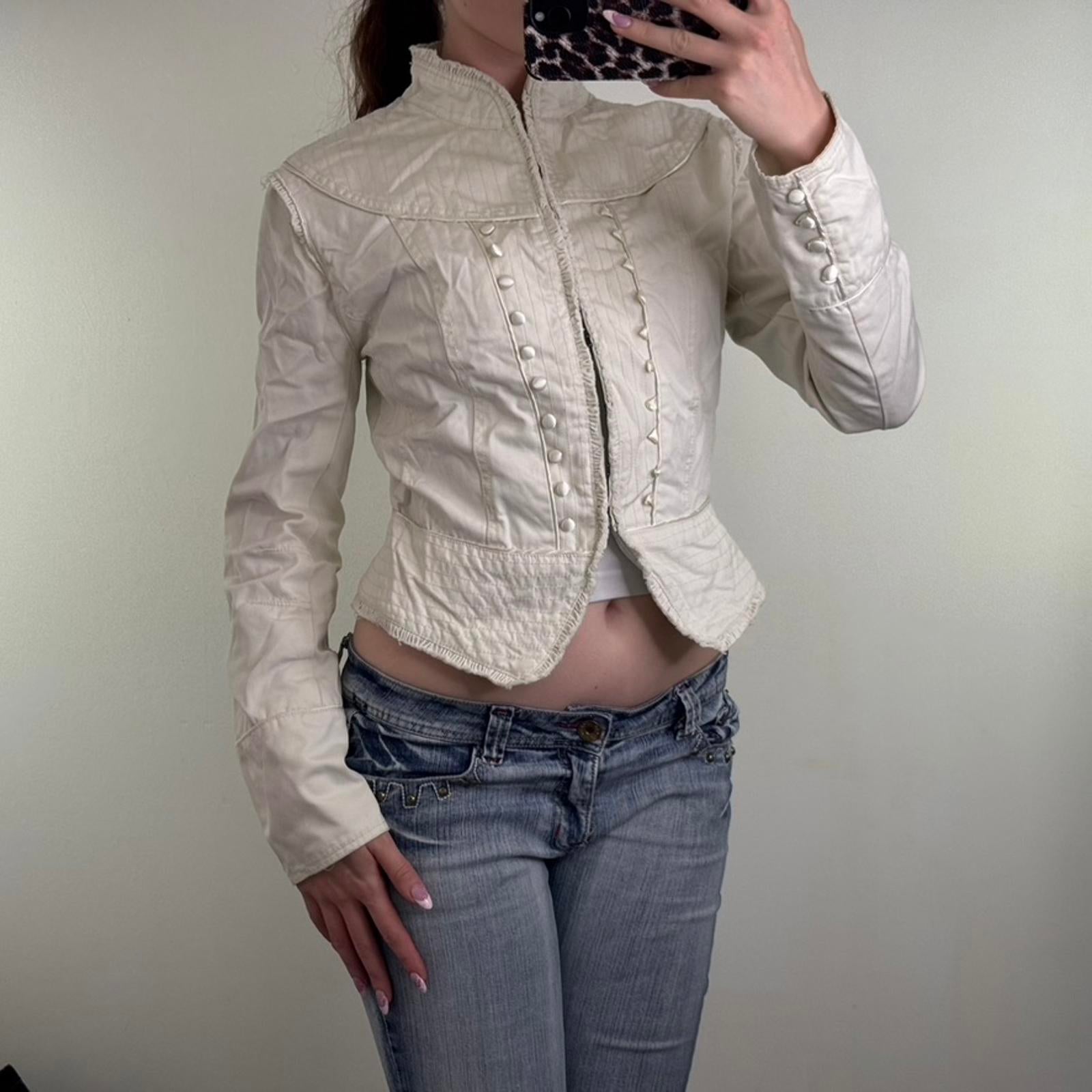 Y2K vintage military denim jacket hook and eye high neck stripe buttons archive