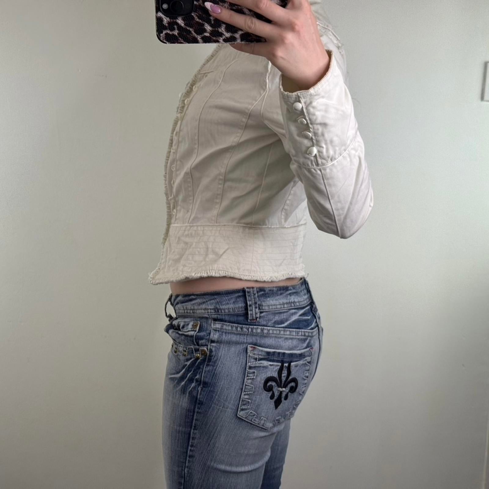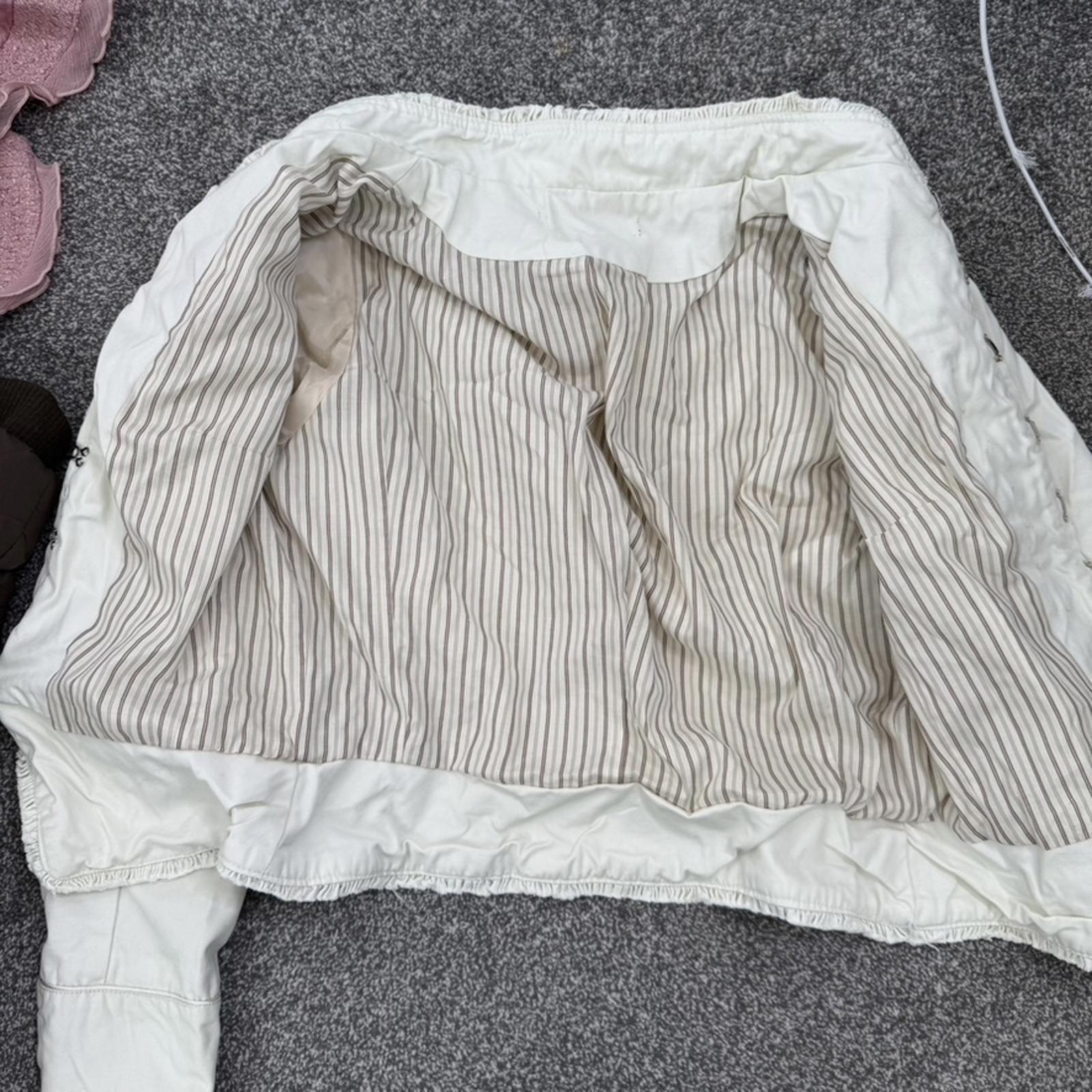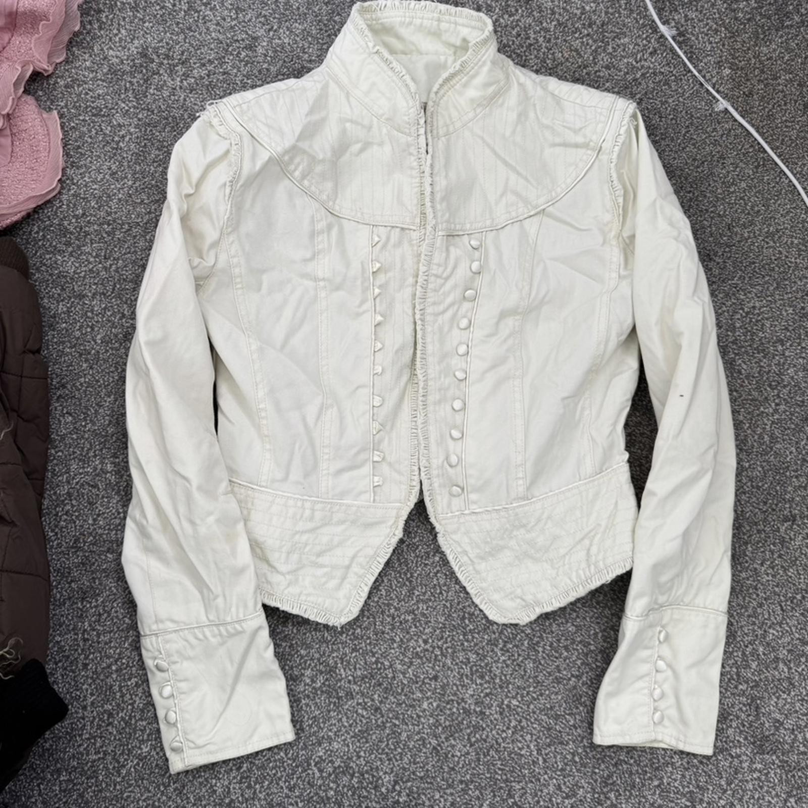 Y2K vintage military denim jacket hook and eye high neck stripe buttons archive